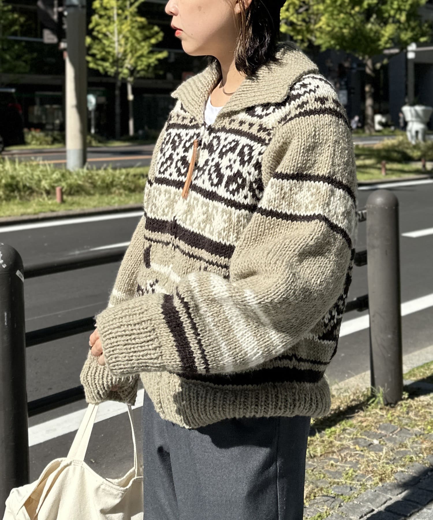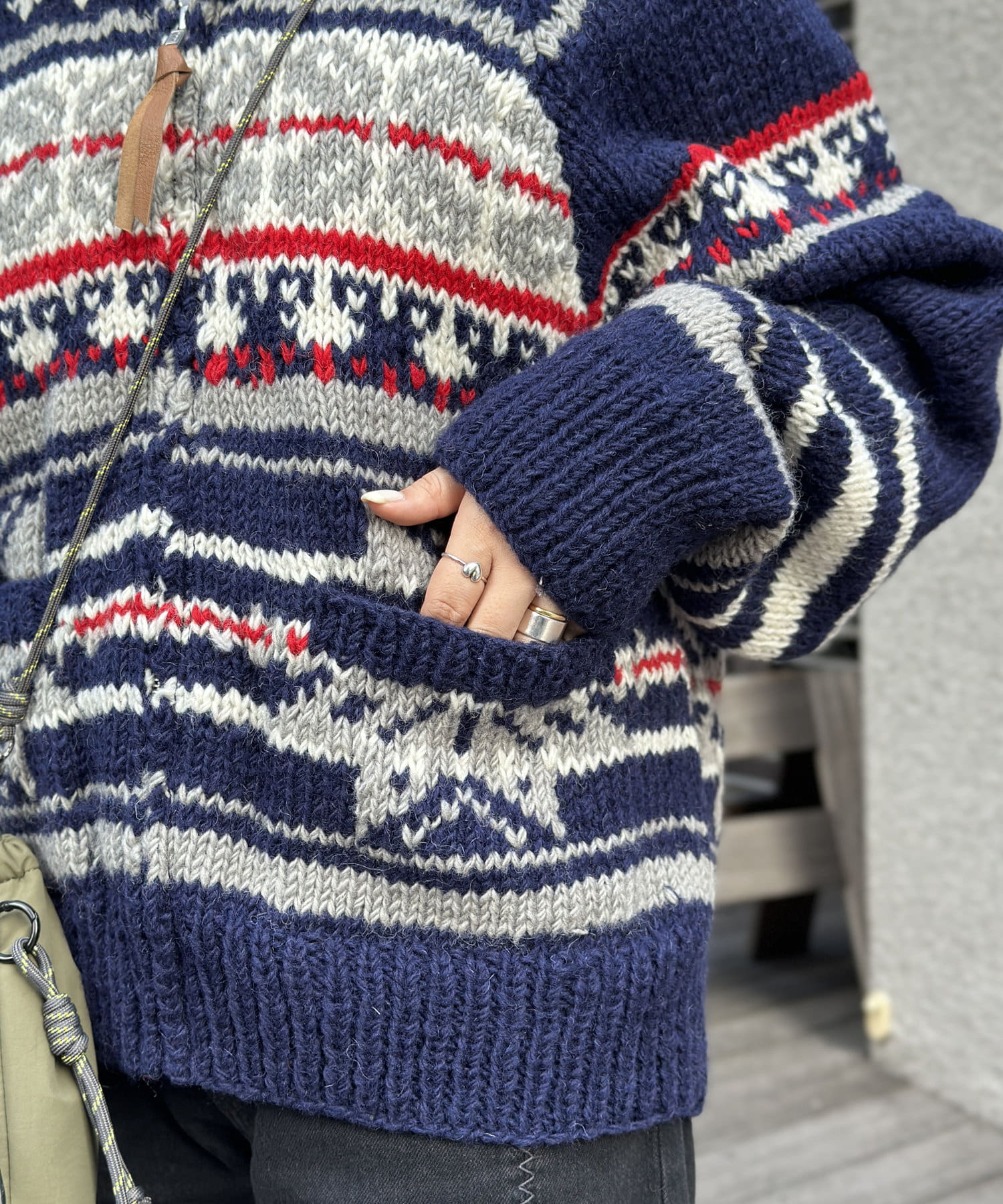 1点ずつ職人さんにより丁寧に編み込まれた、シーズンムードの高まるカウチンカーディガン。