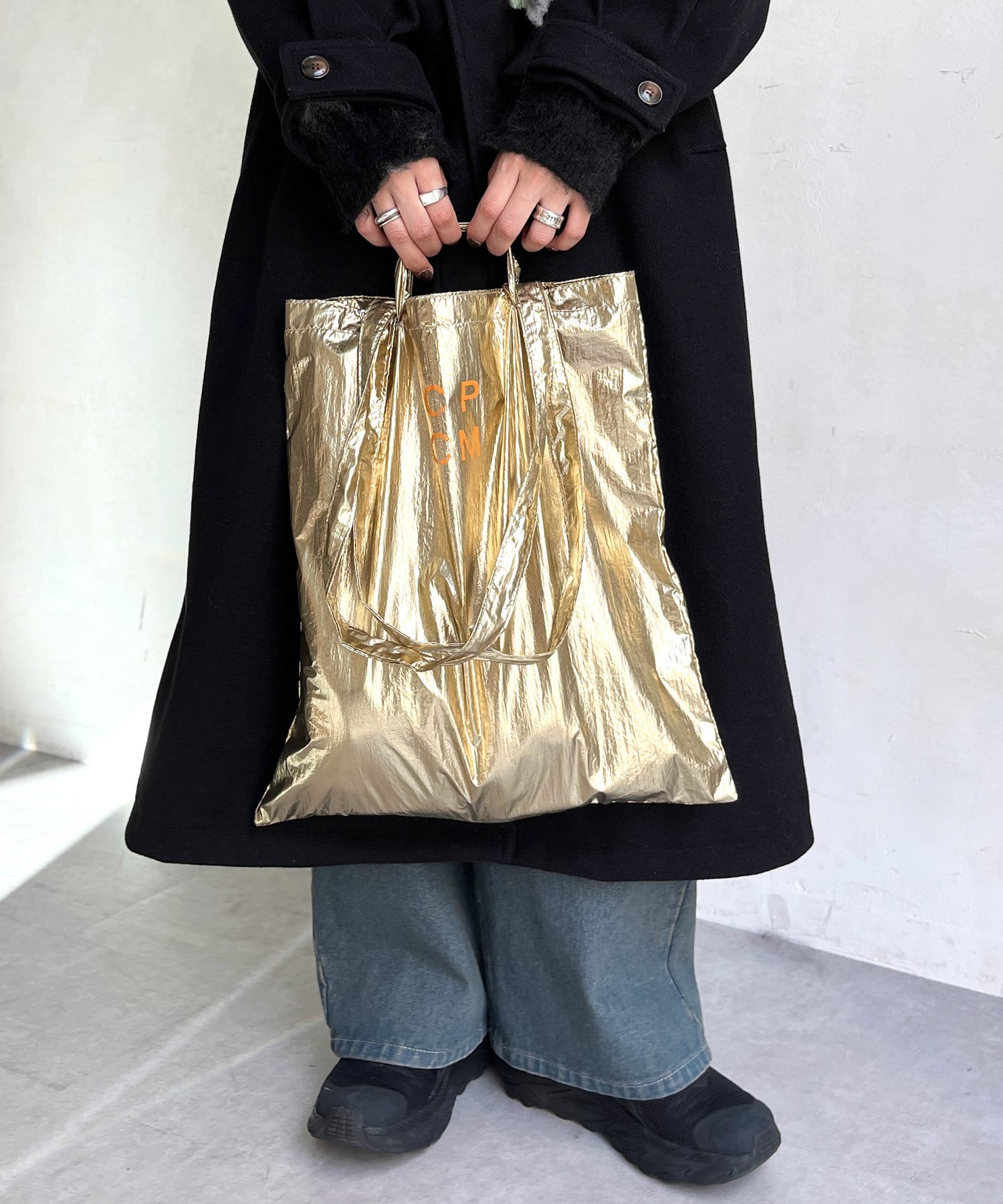 コーディネートのポイントになるメタリックなトートバッグが登場!