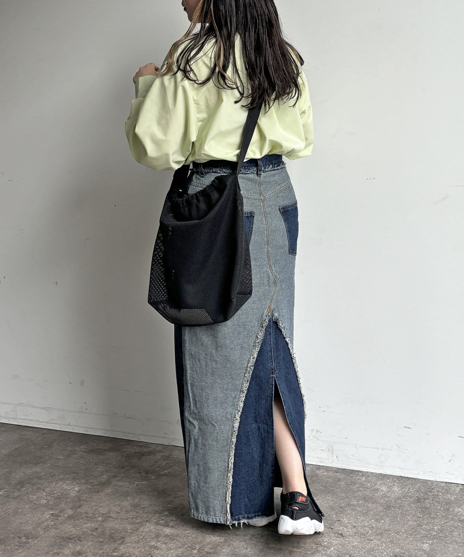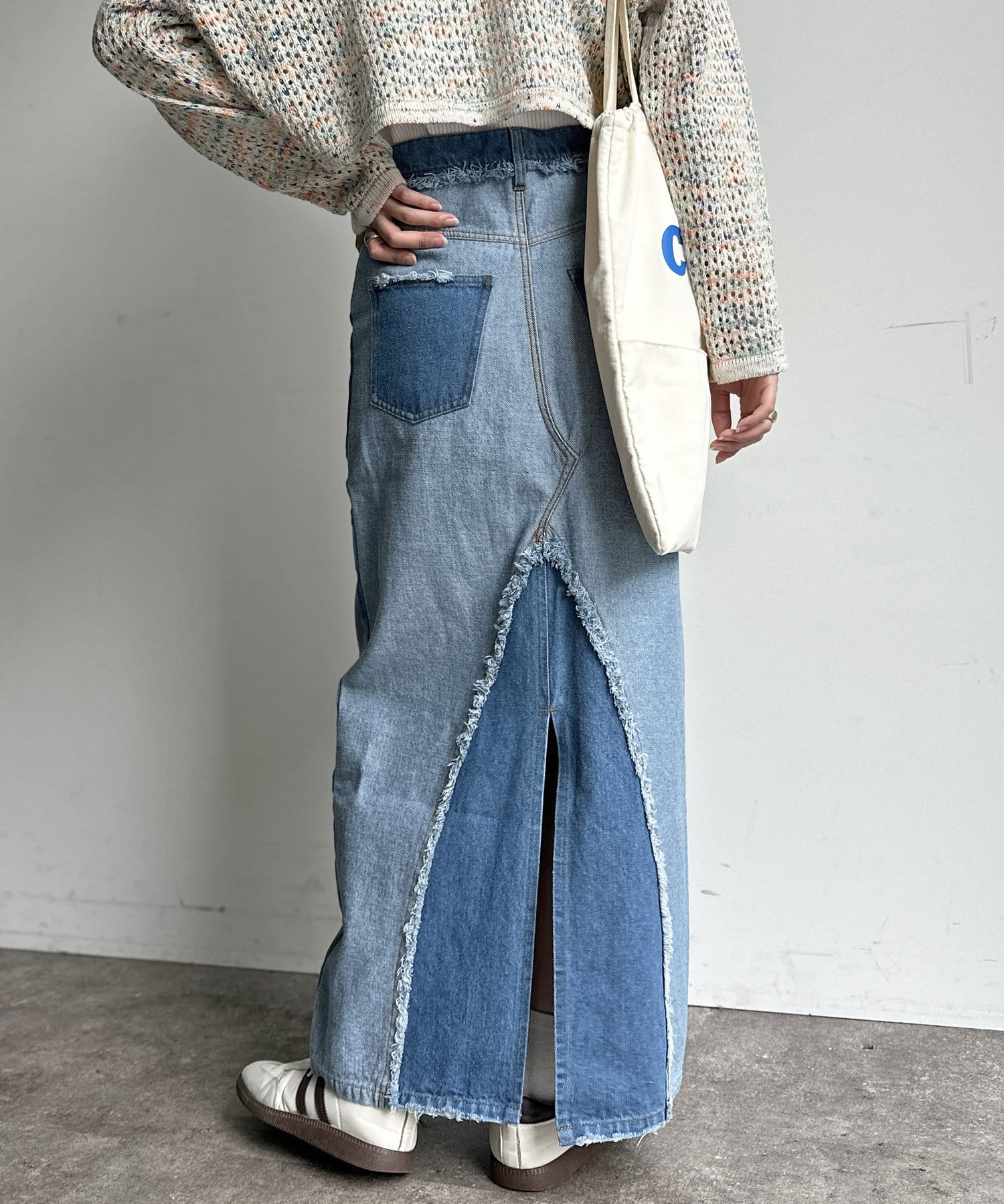 ・デニムの配色切り替えとフリンジのあしらいが魅力