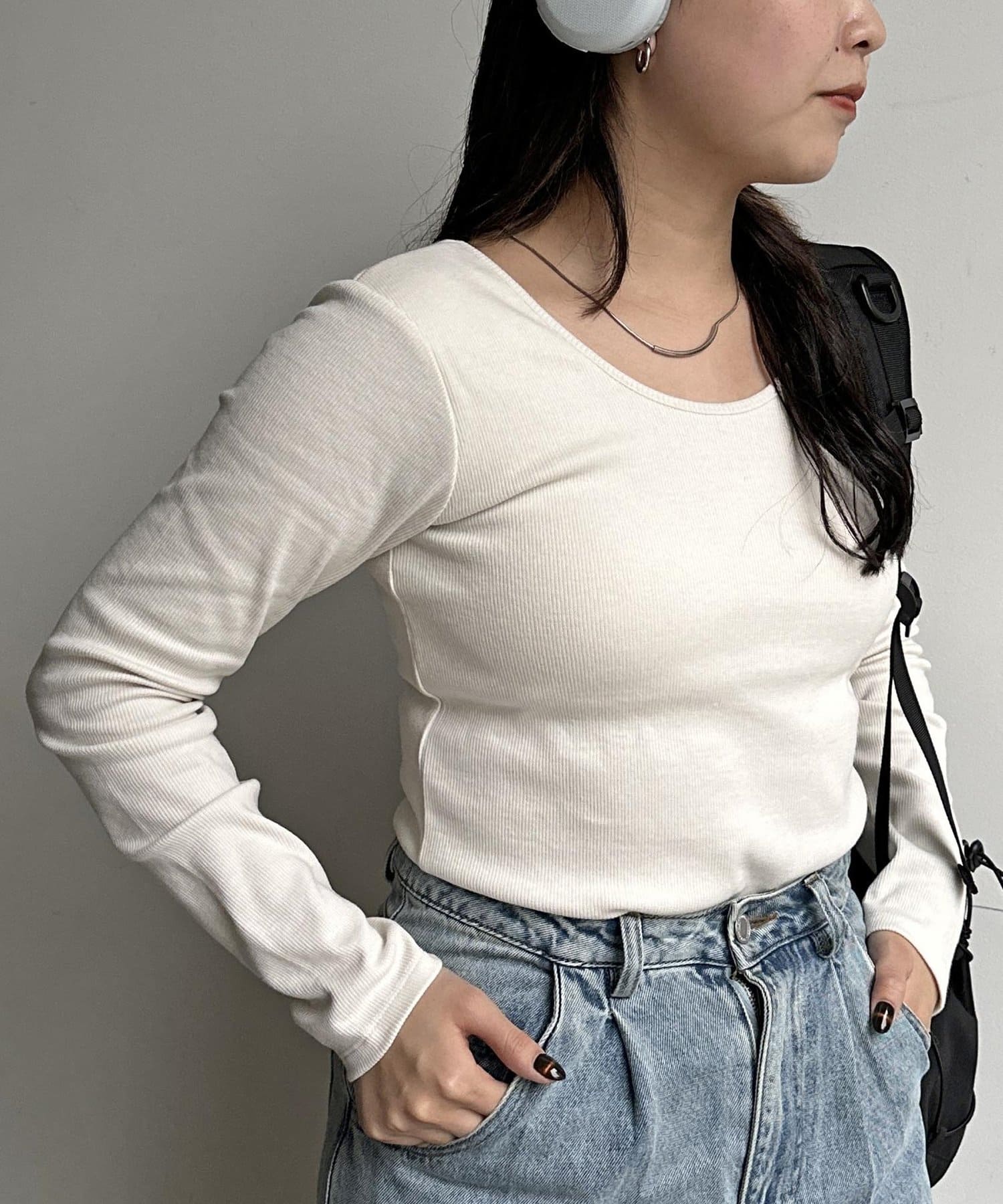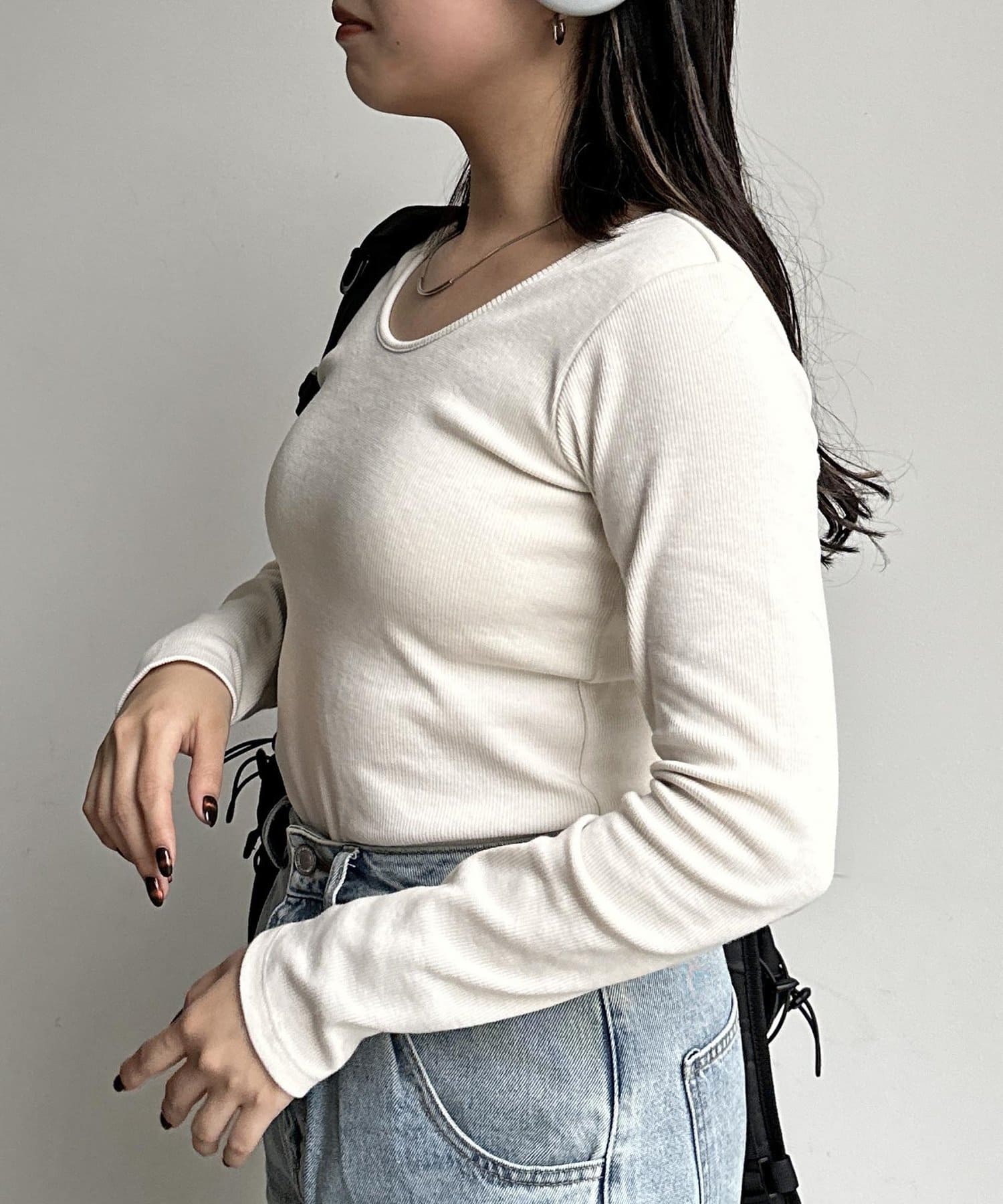 ・ネックラインが広く開いており、背中空きトップスのインナーとして重宝します