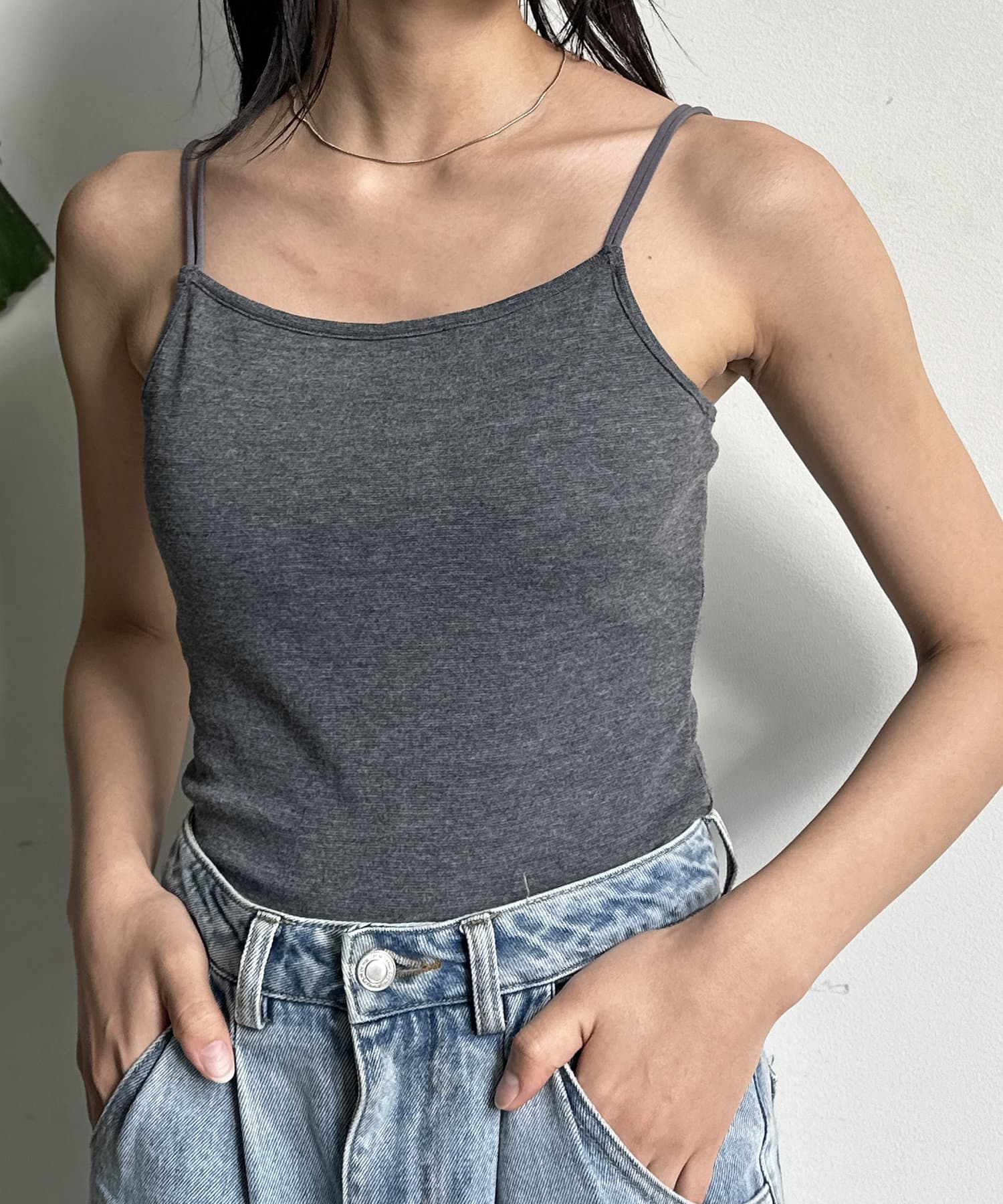 ダブルストラップで華奢見え効果抜群◎なカップ付きキャミソール