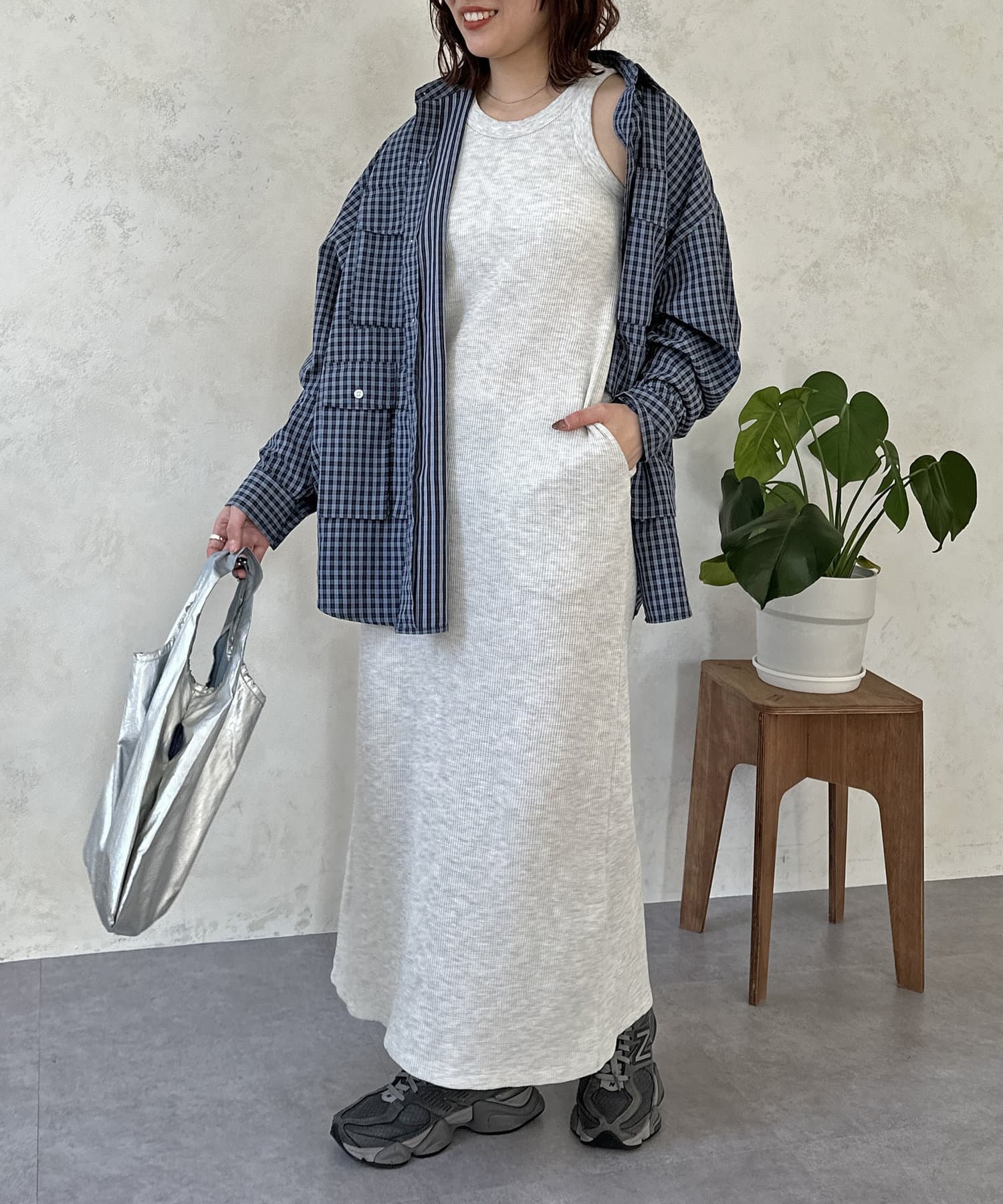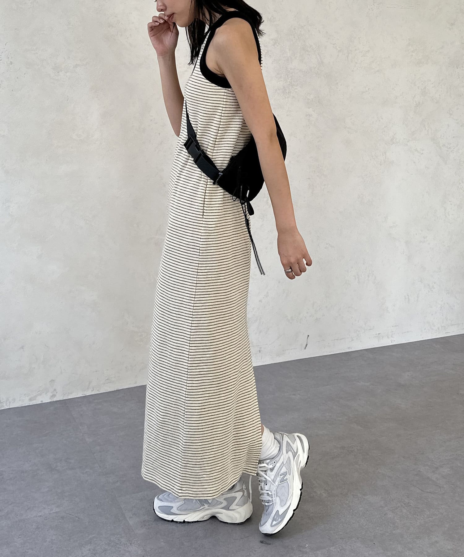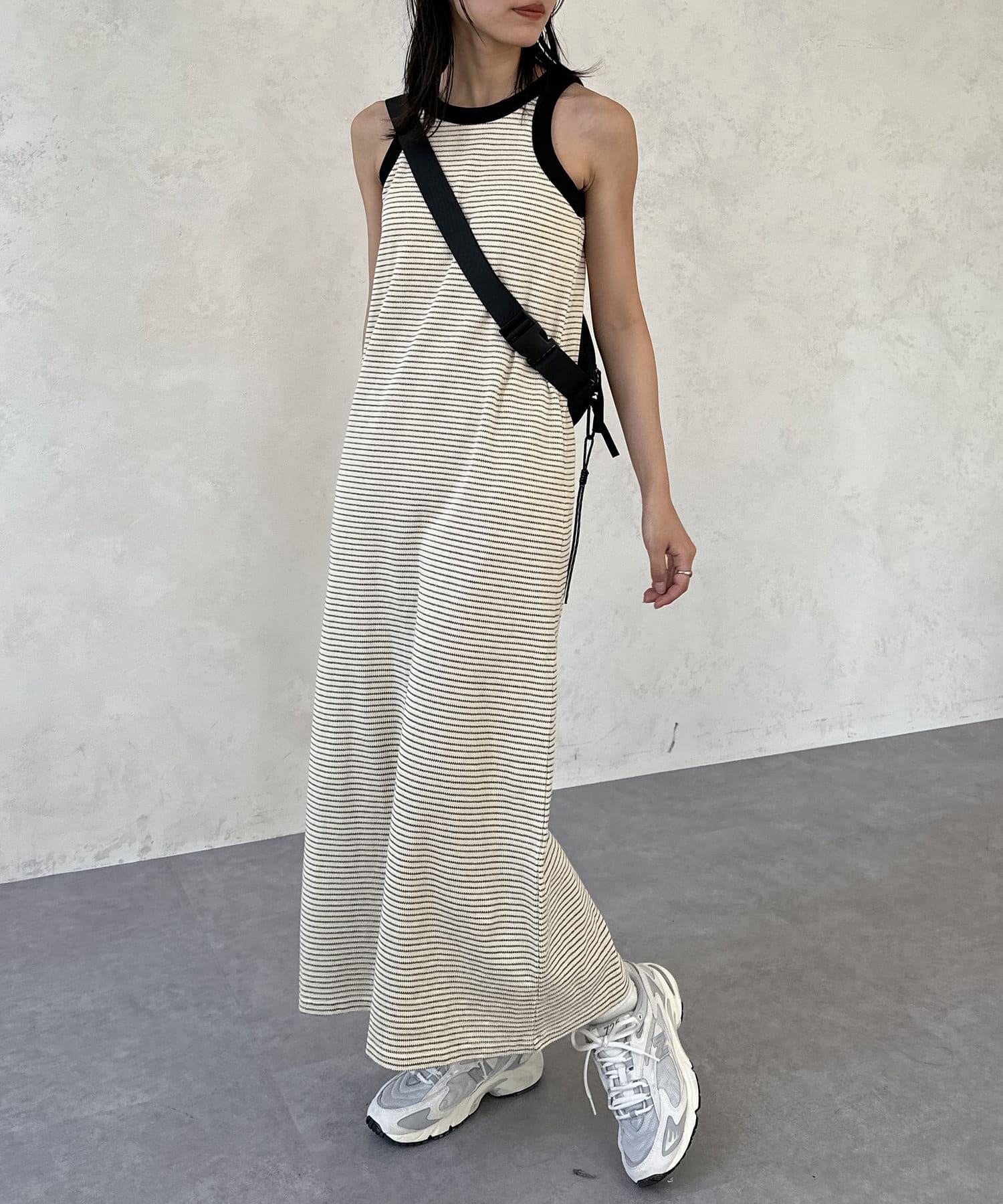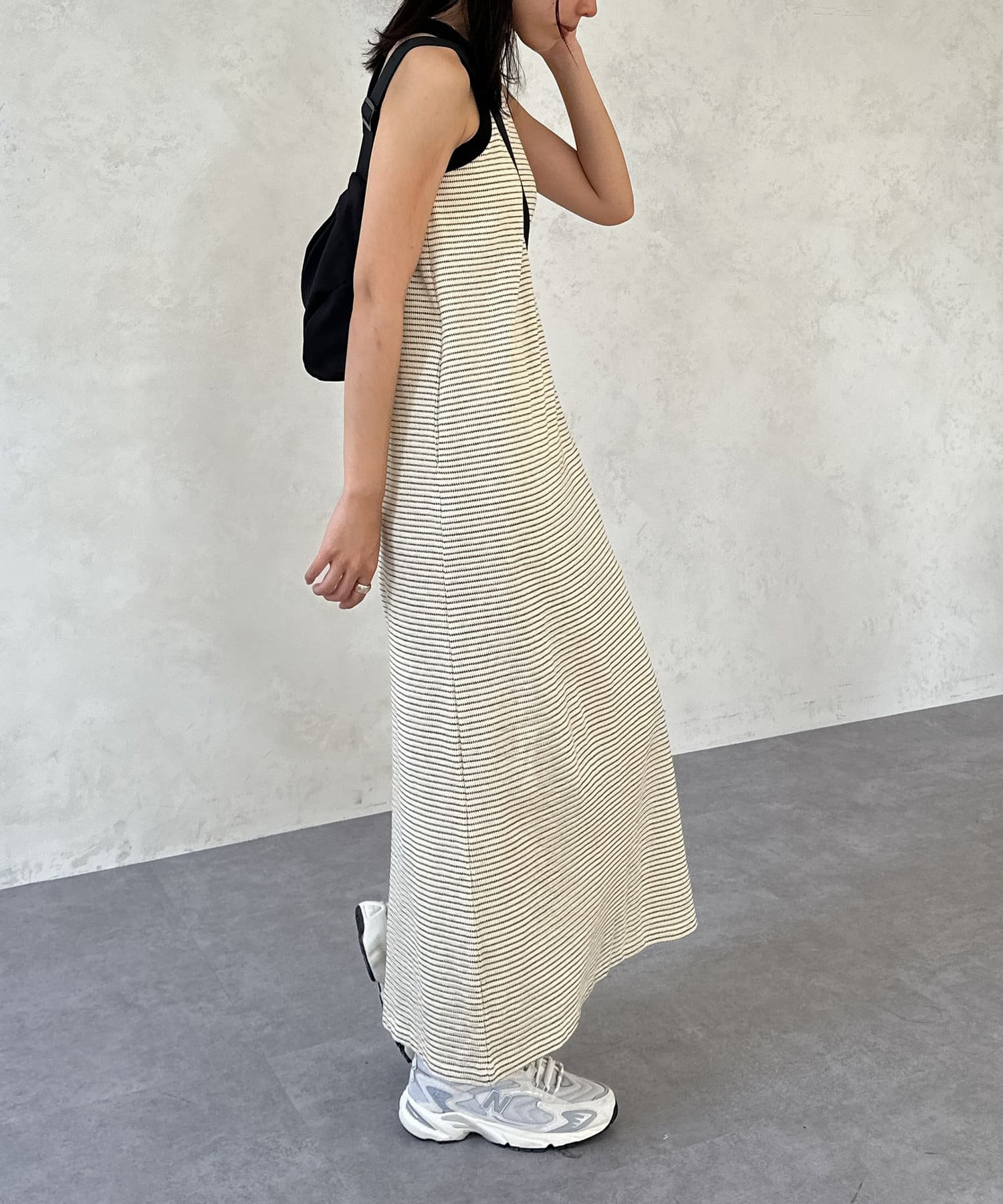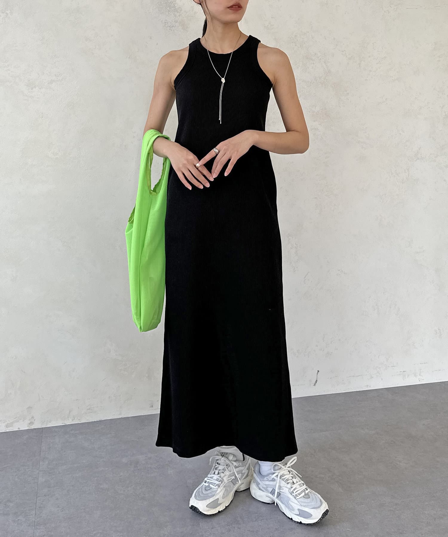 1枚でヘルシーな着こなしができるカップ付きアメスリワンピース
