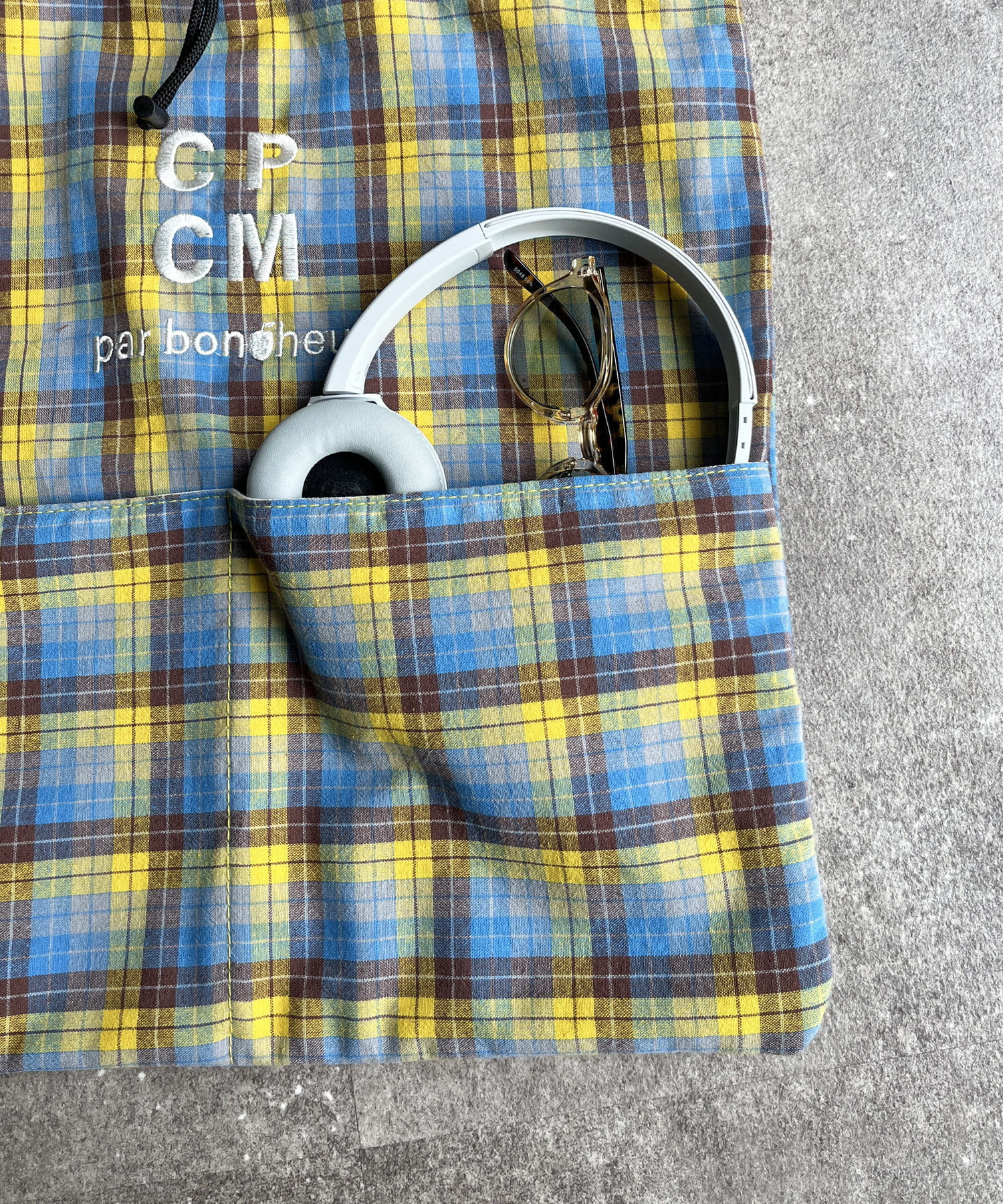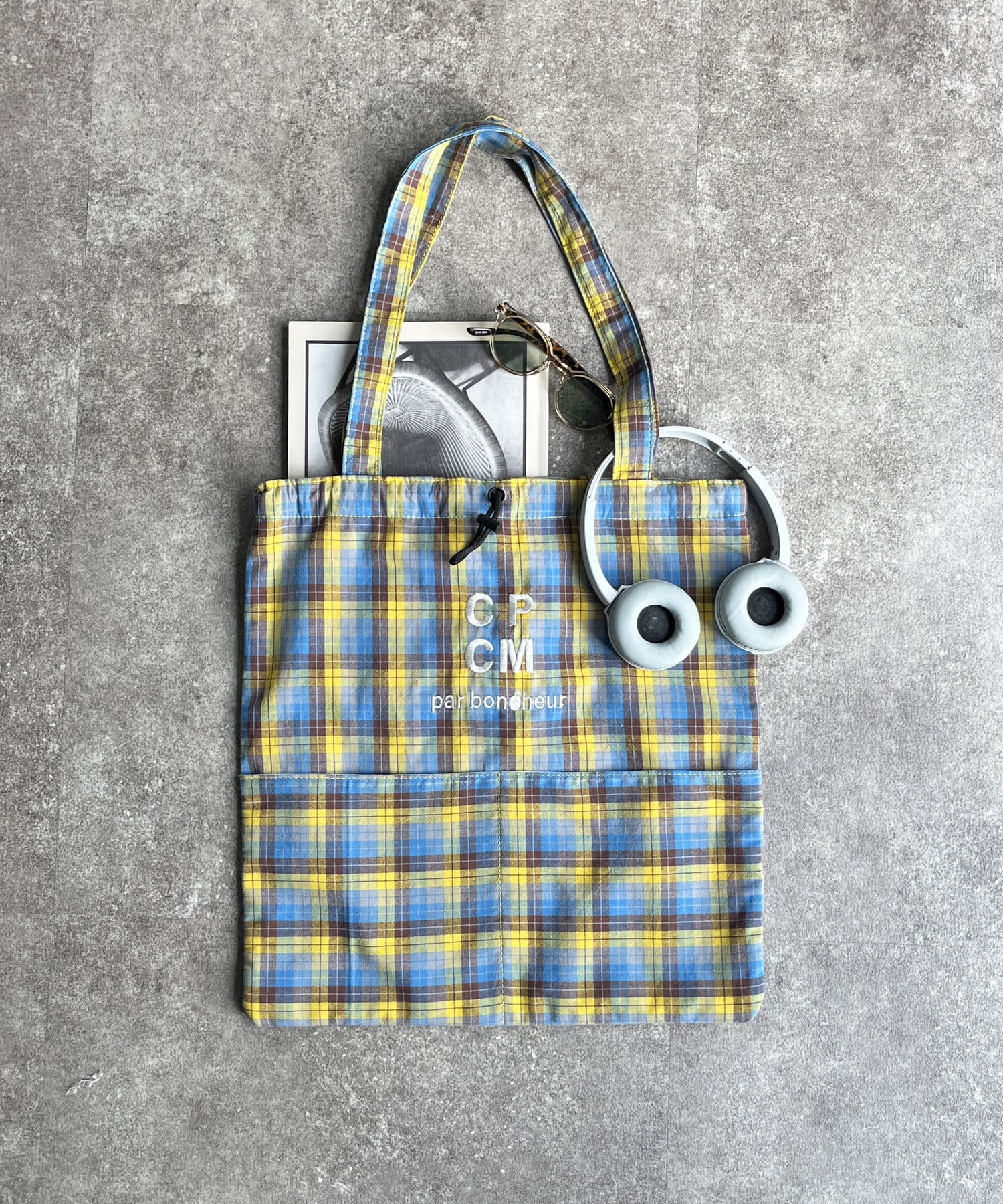 ・イエロー、グリーンの大胆なチェック柄がスタイリングを格上げしてくれる