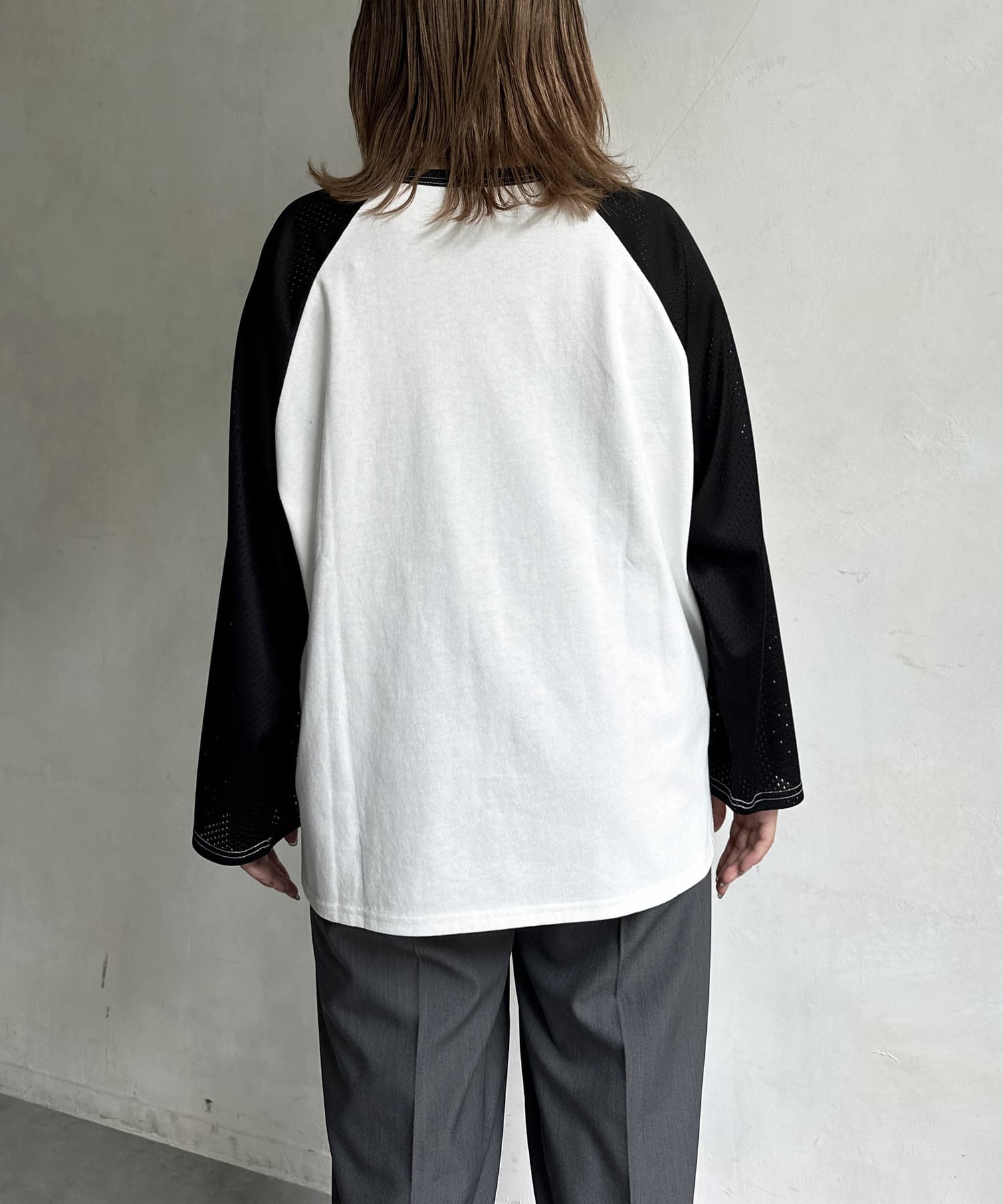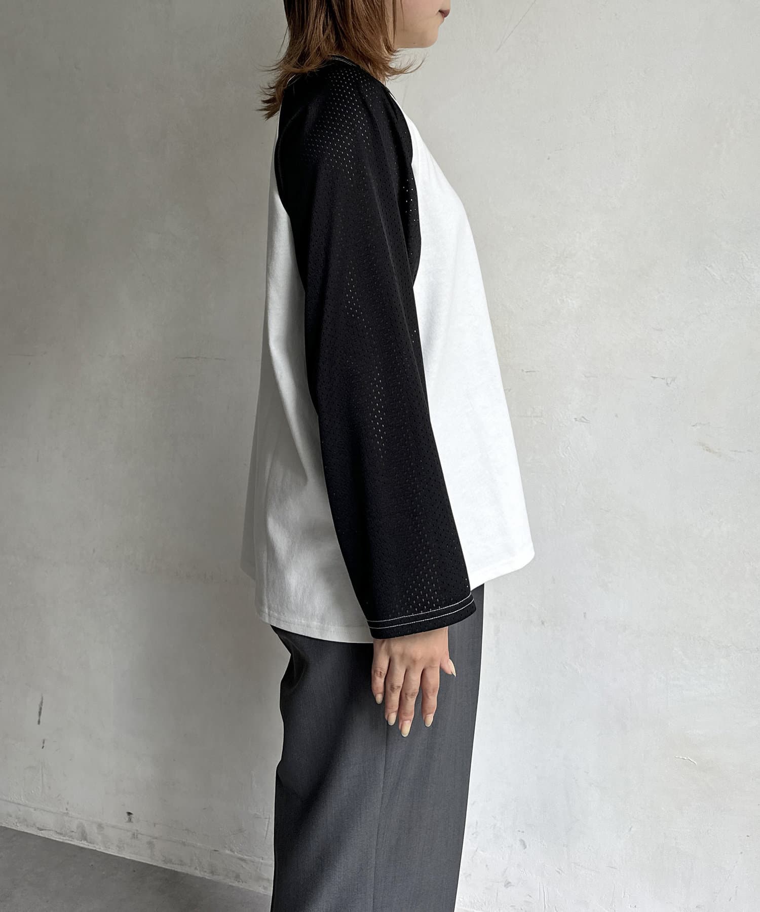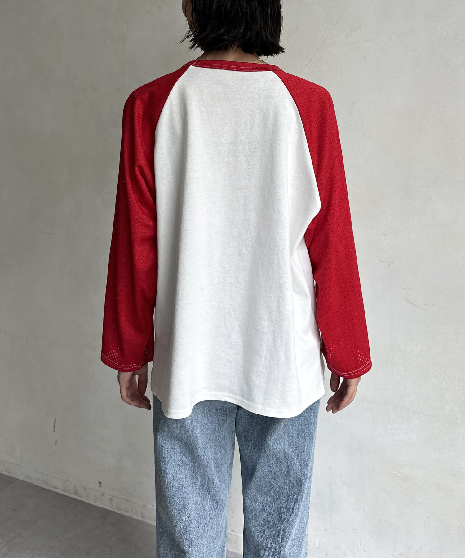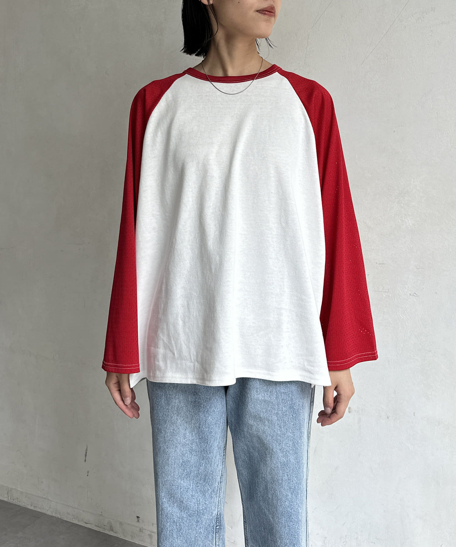 ・風通しのいいメッシュ素材のラグランスリーブ