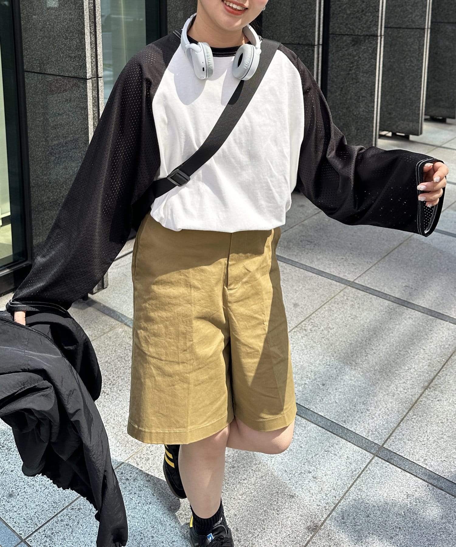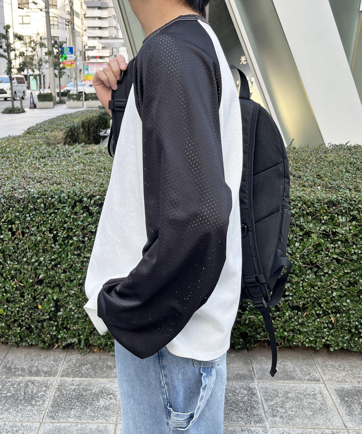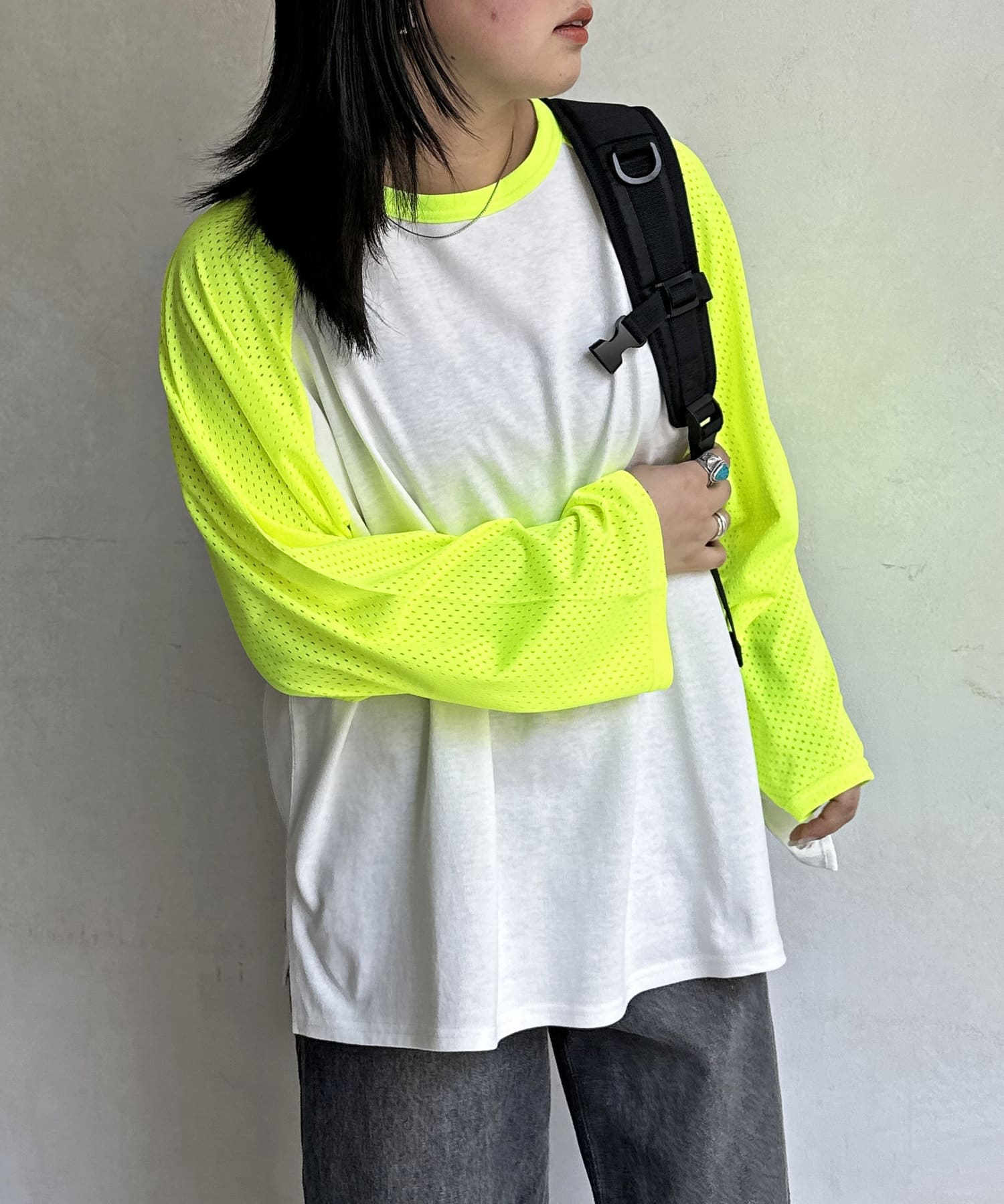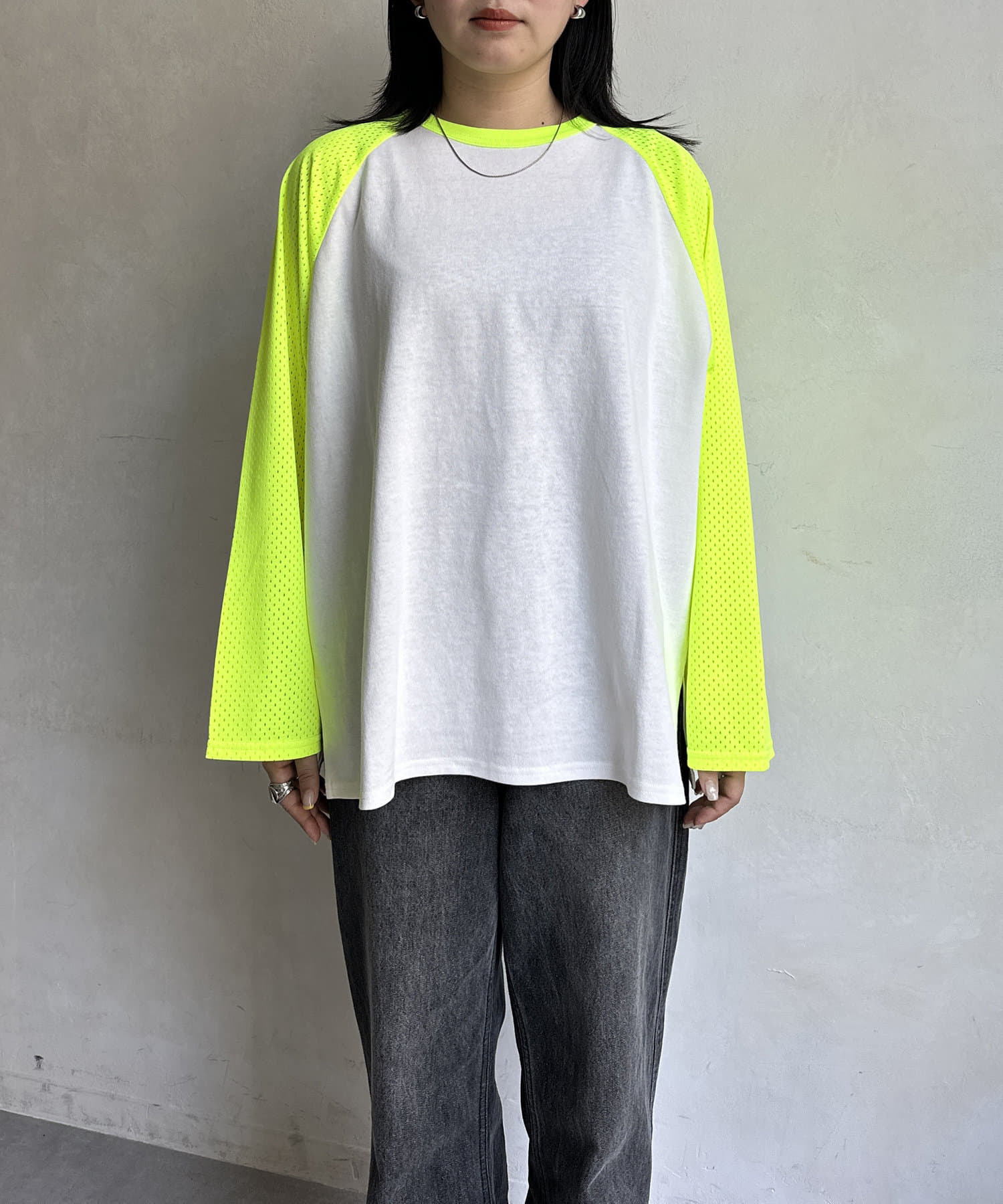 ・風通しのいいメッシュ素材のラグランスリーブ