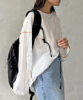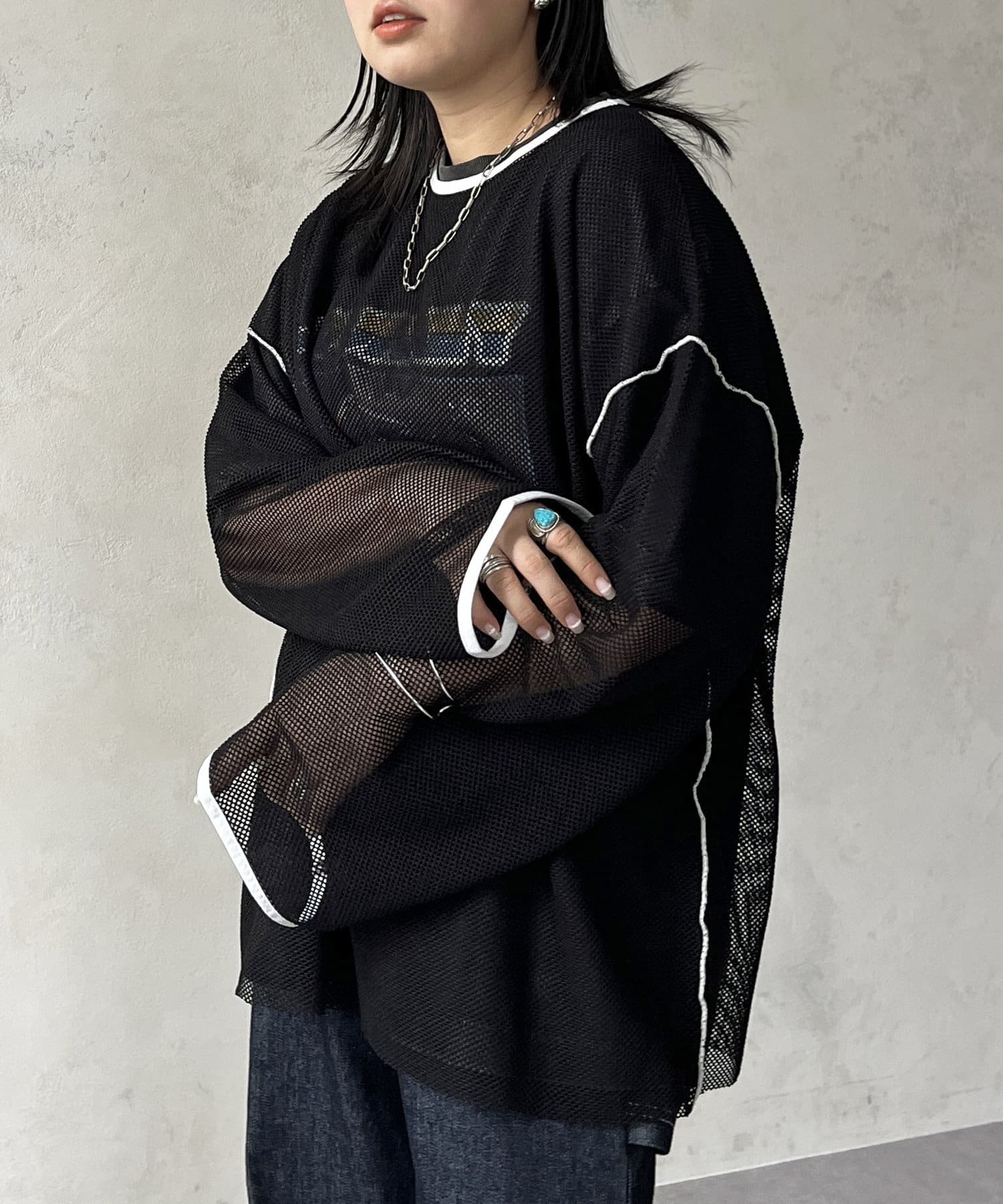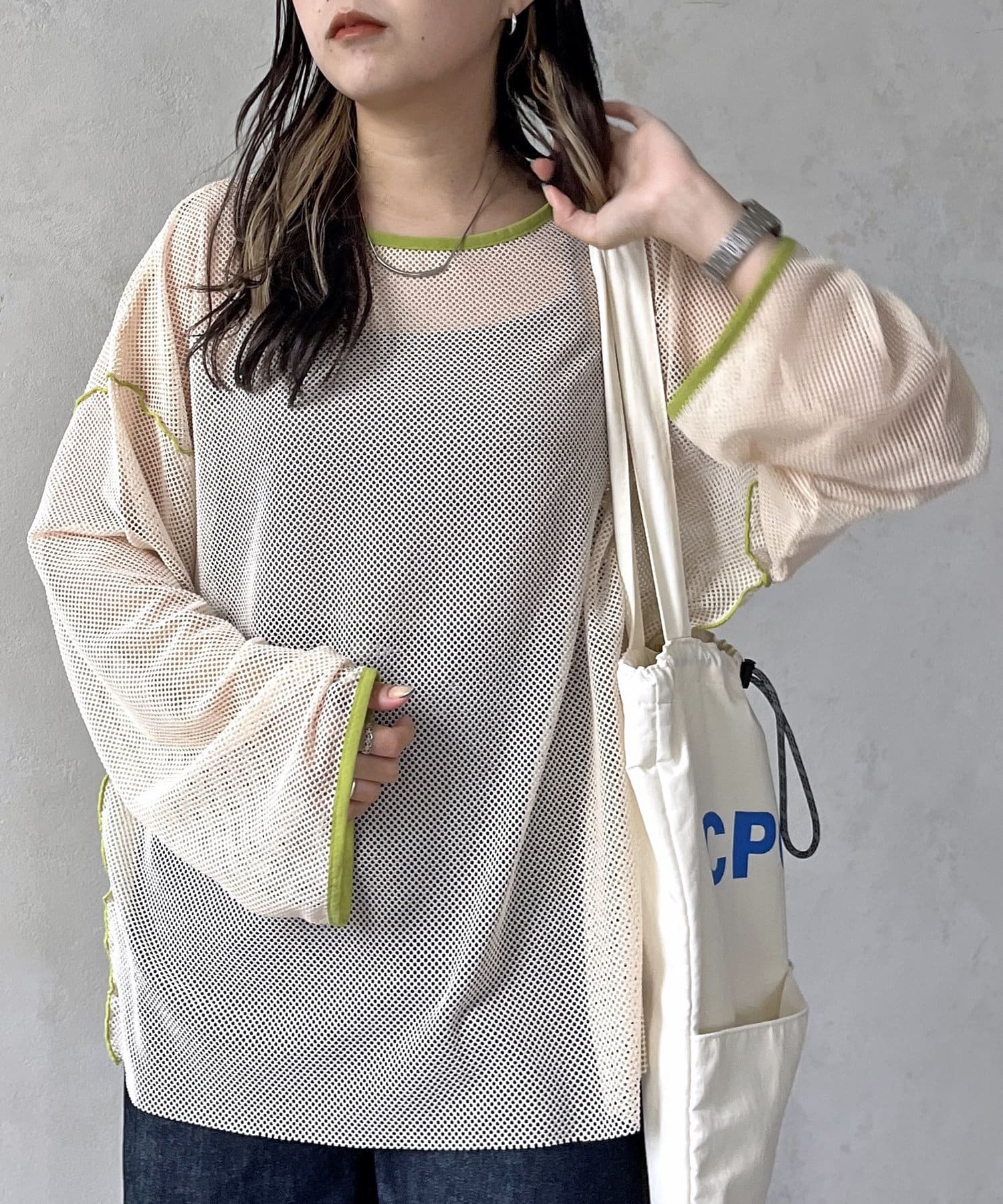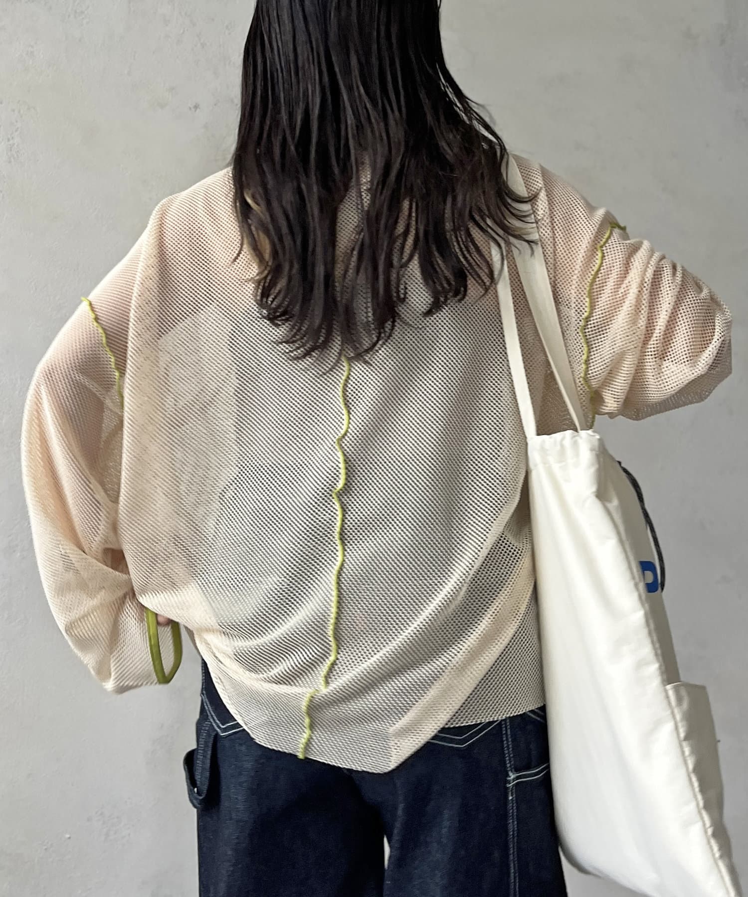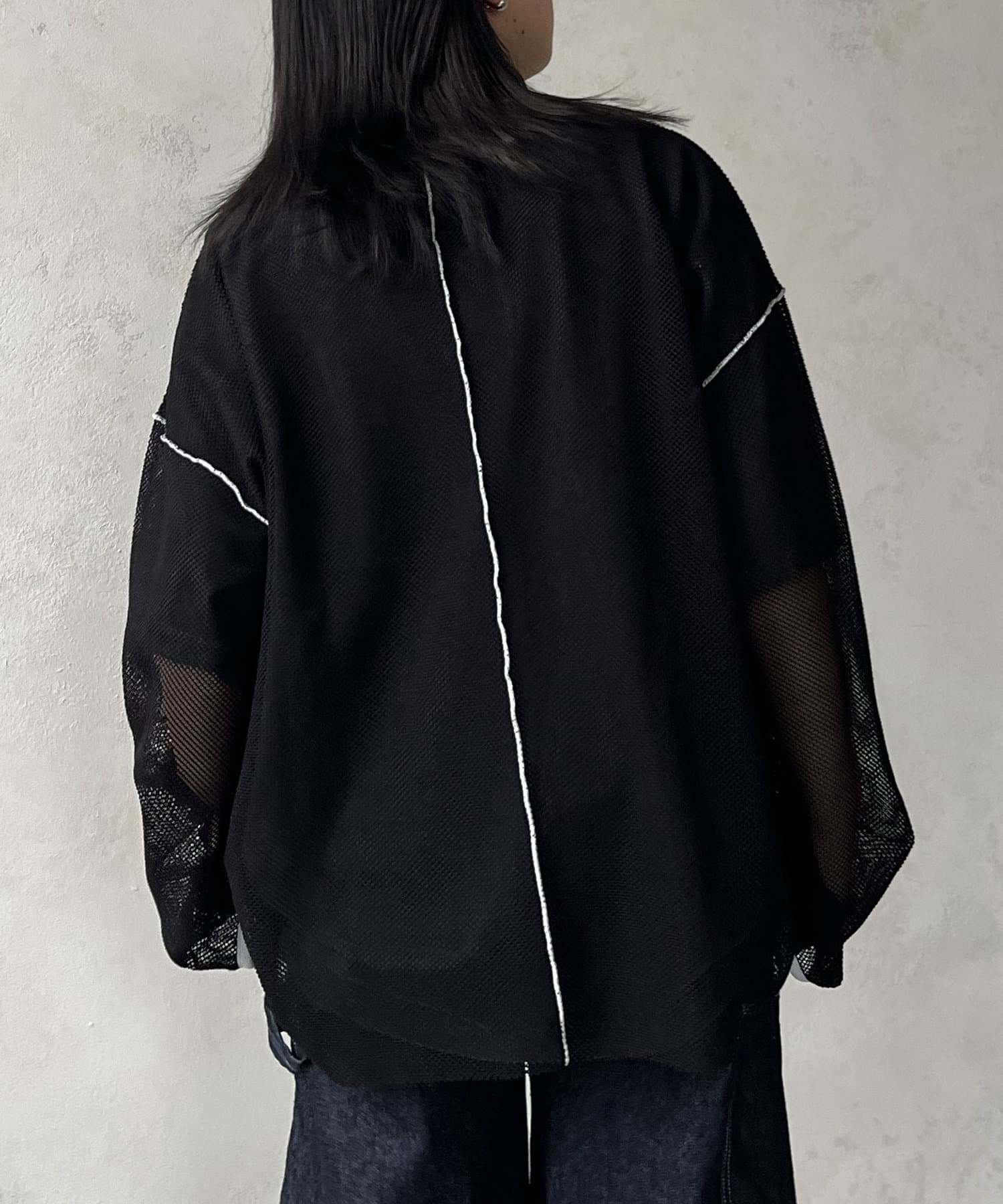 ・袖や首元、背中に施されたパイピング加工により、オーバーサイズでもメリハリをつけてくれる