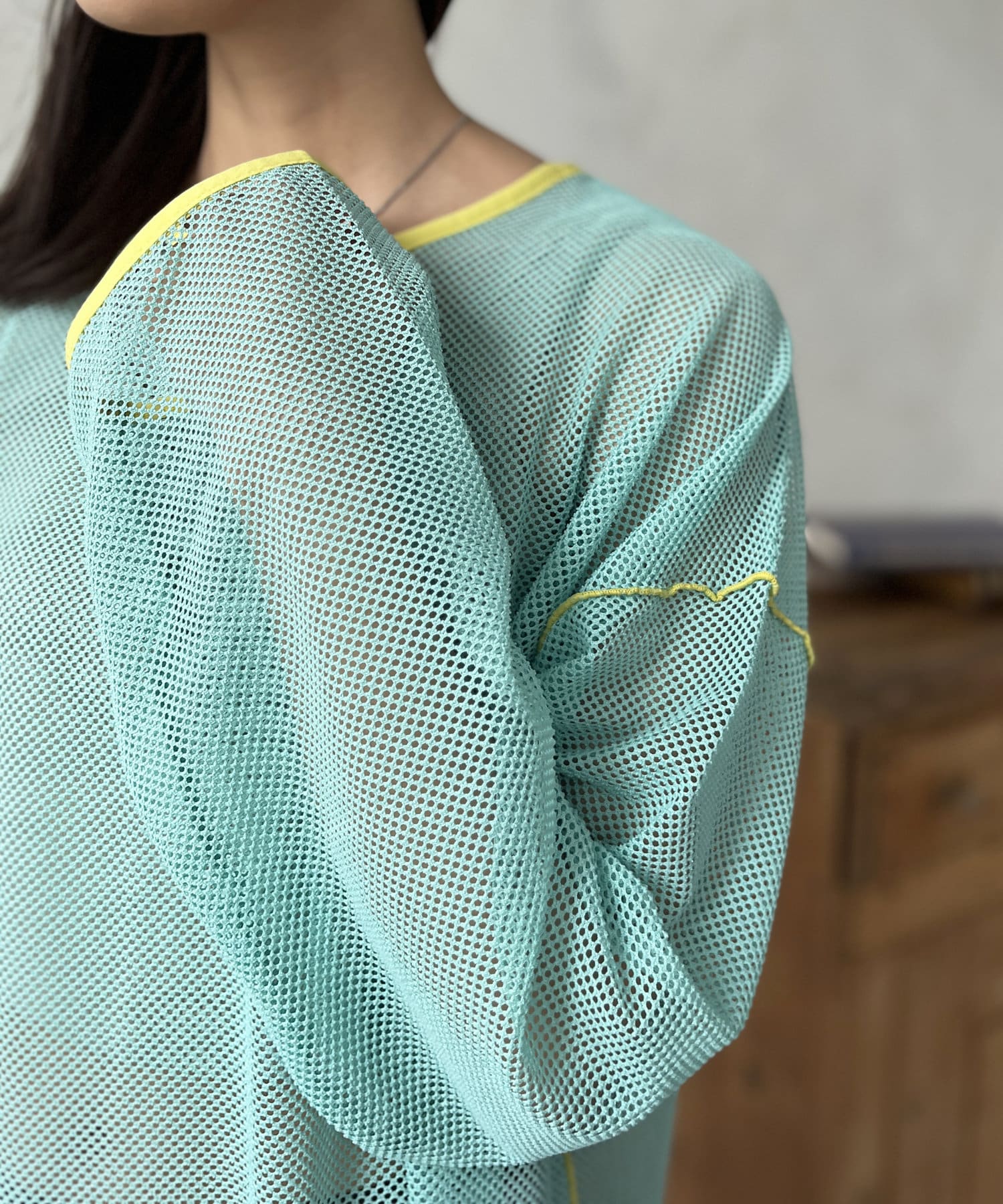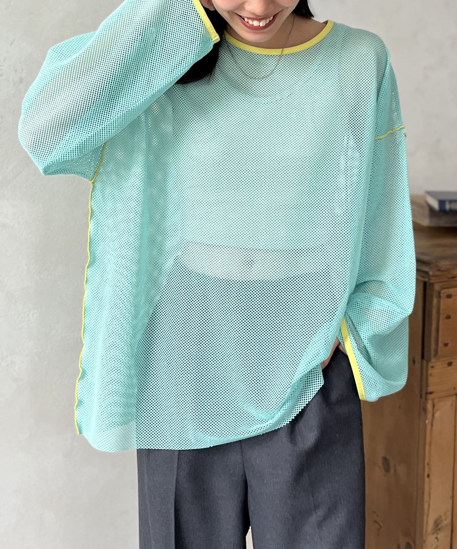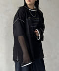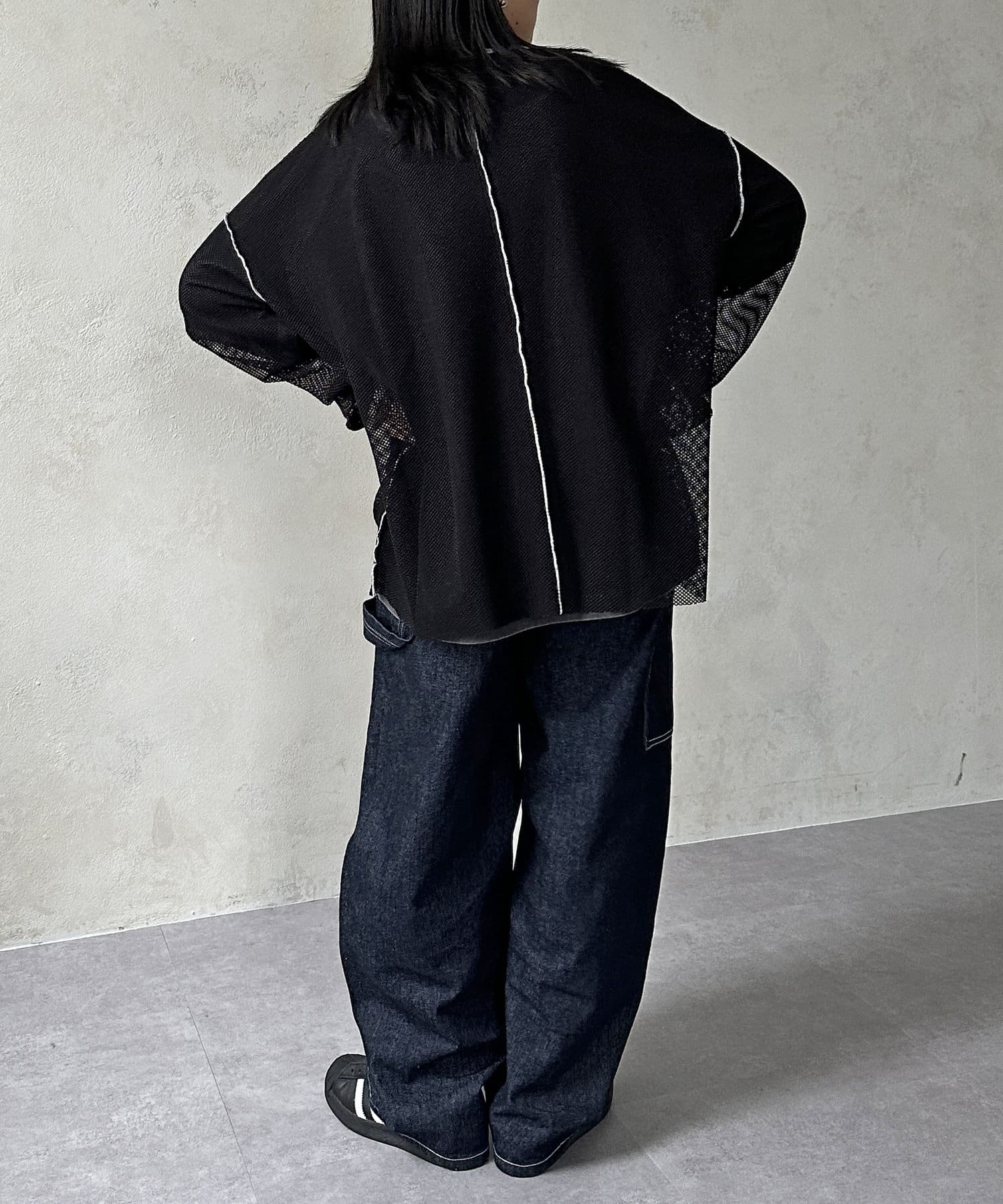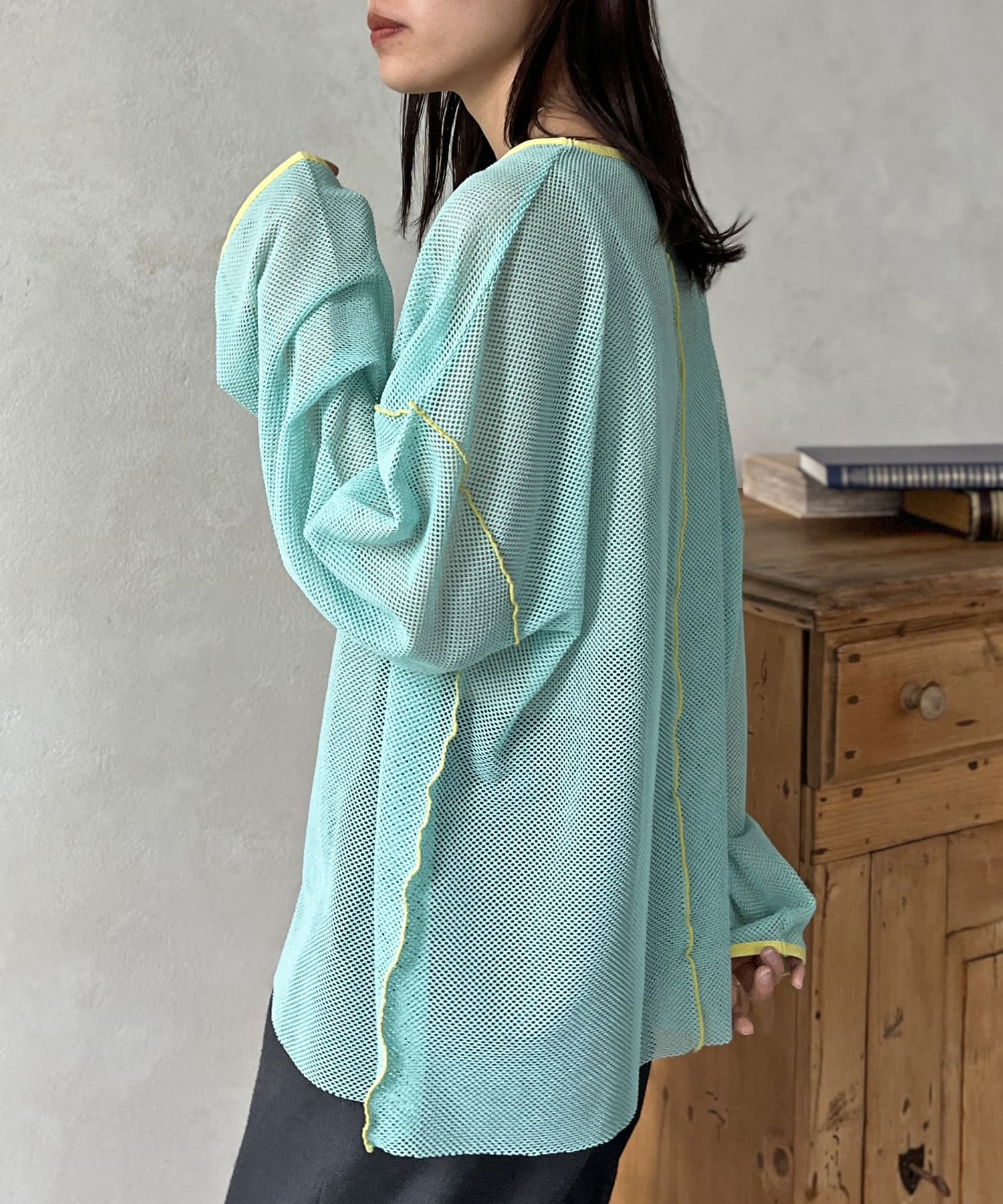 ・袖や首元、背中に施されたパイピング加工により、オーバーサイズでもメリハリをつけてくれる