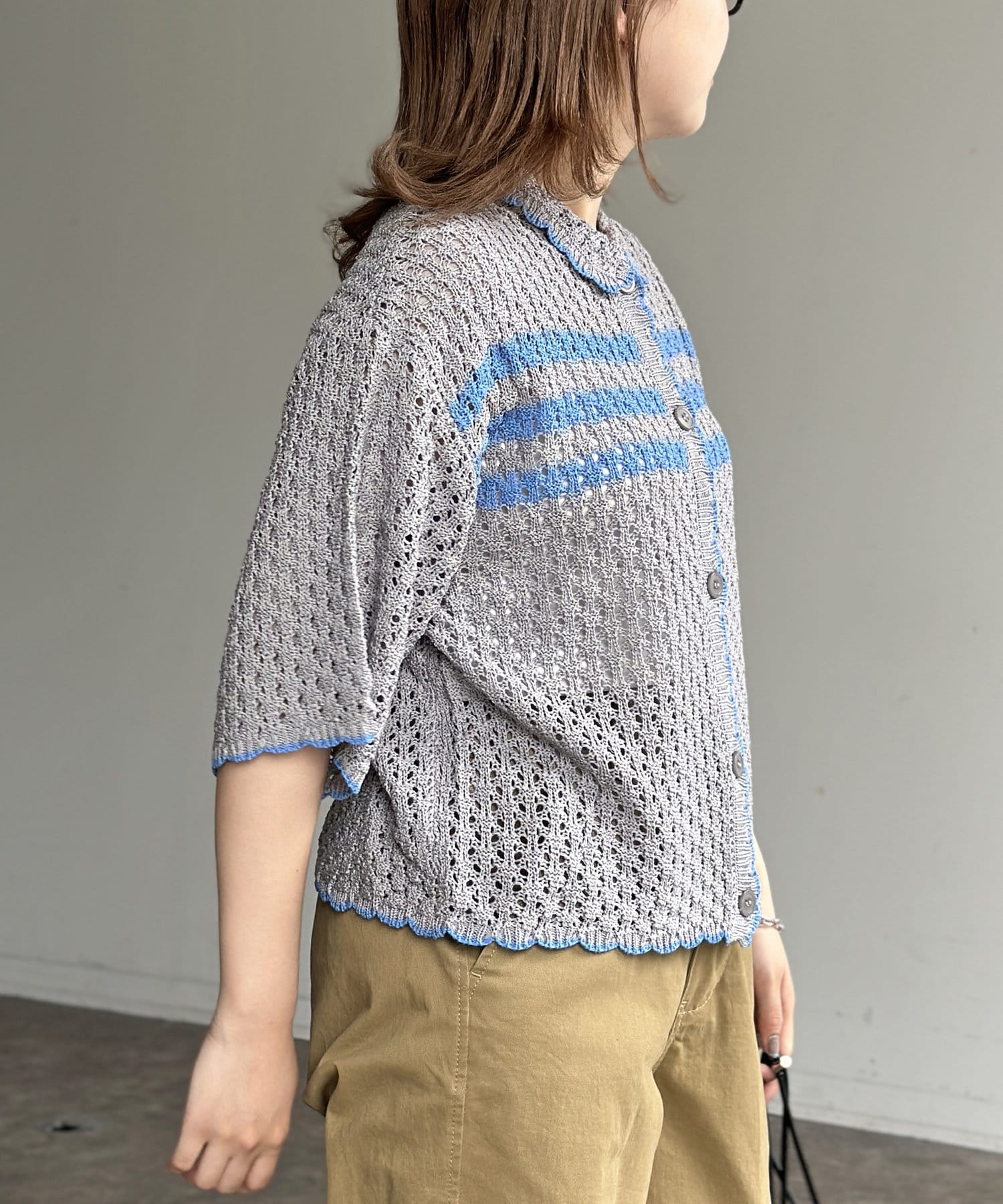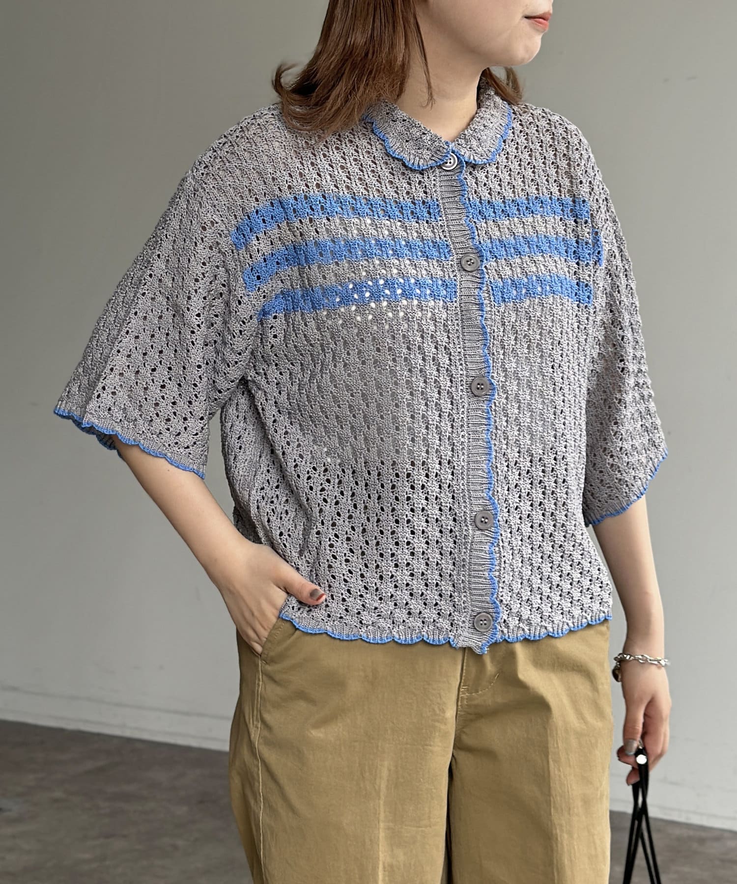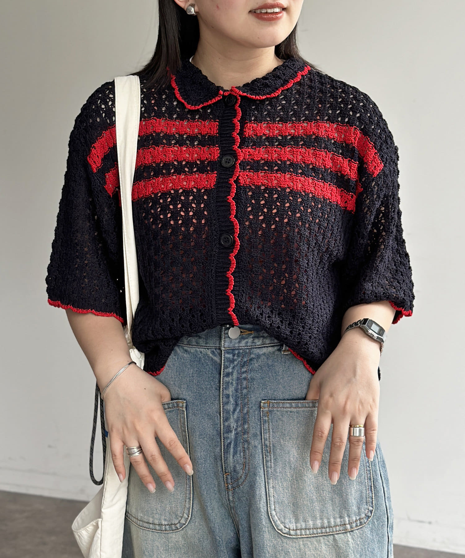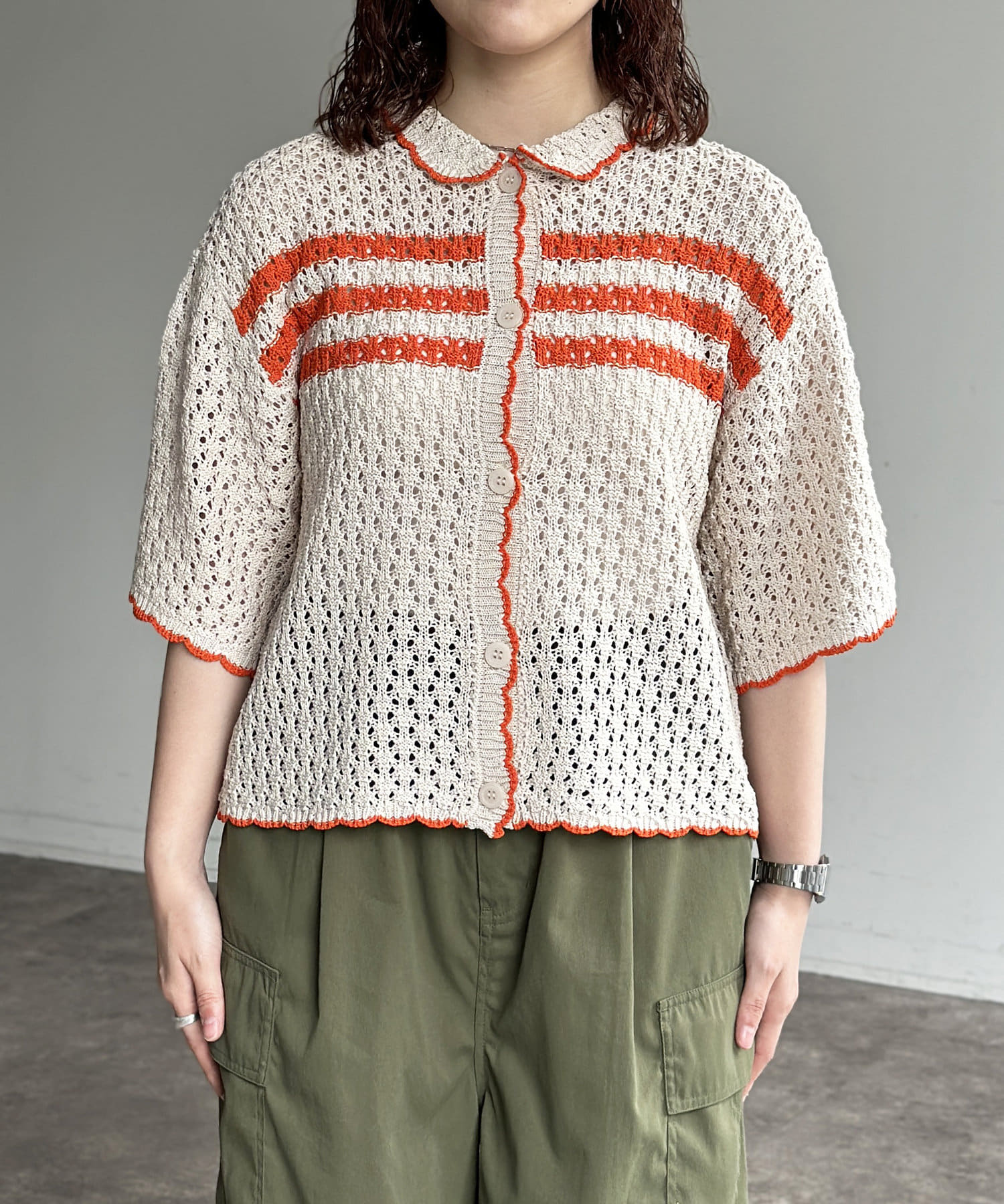 TOP > CPCM > レディース > トップス > カーディガン/ボレロ > スカラップ配色襟付きニット