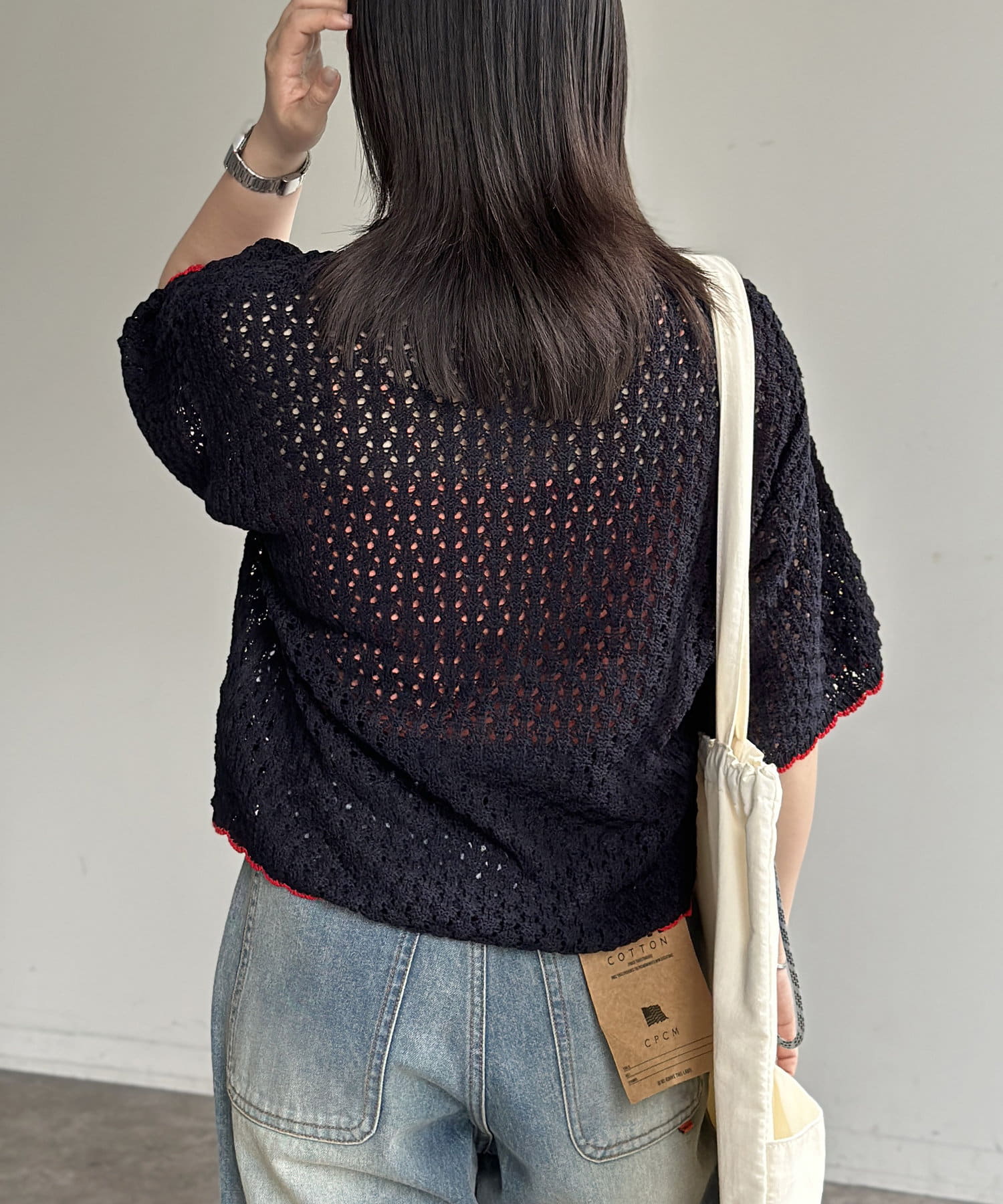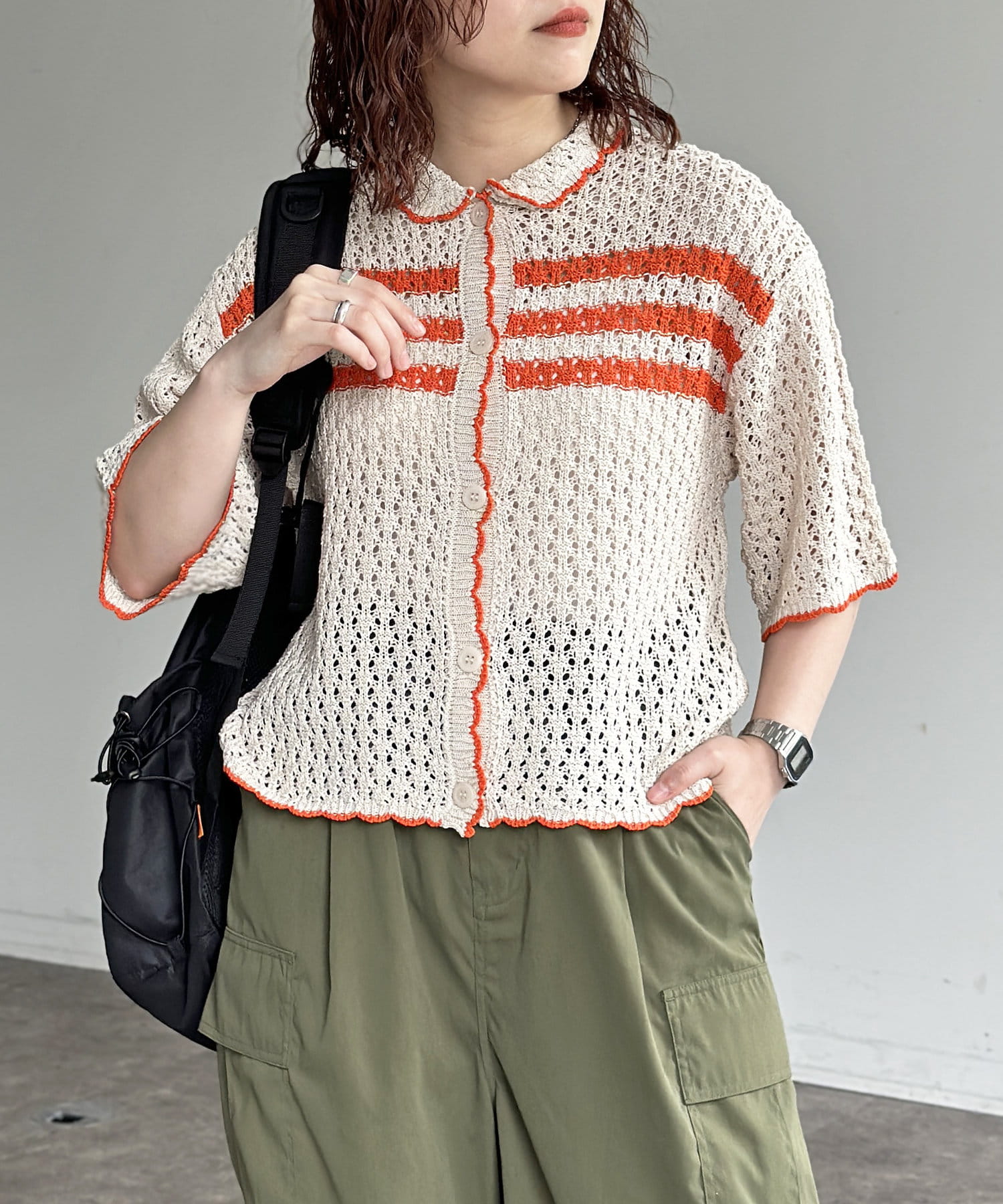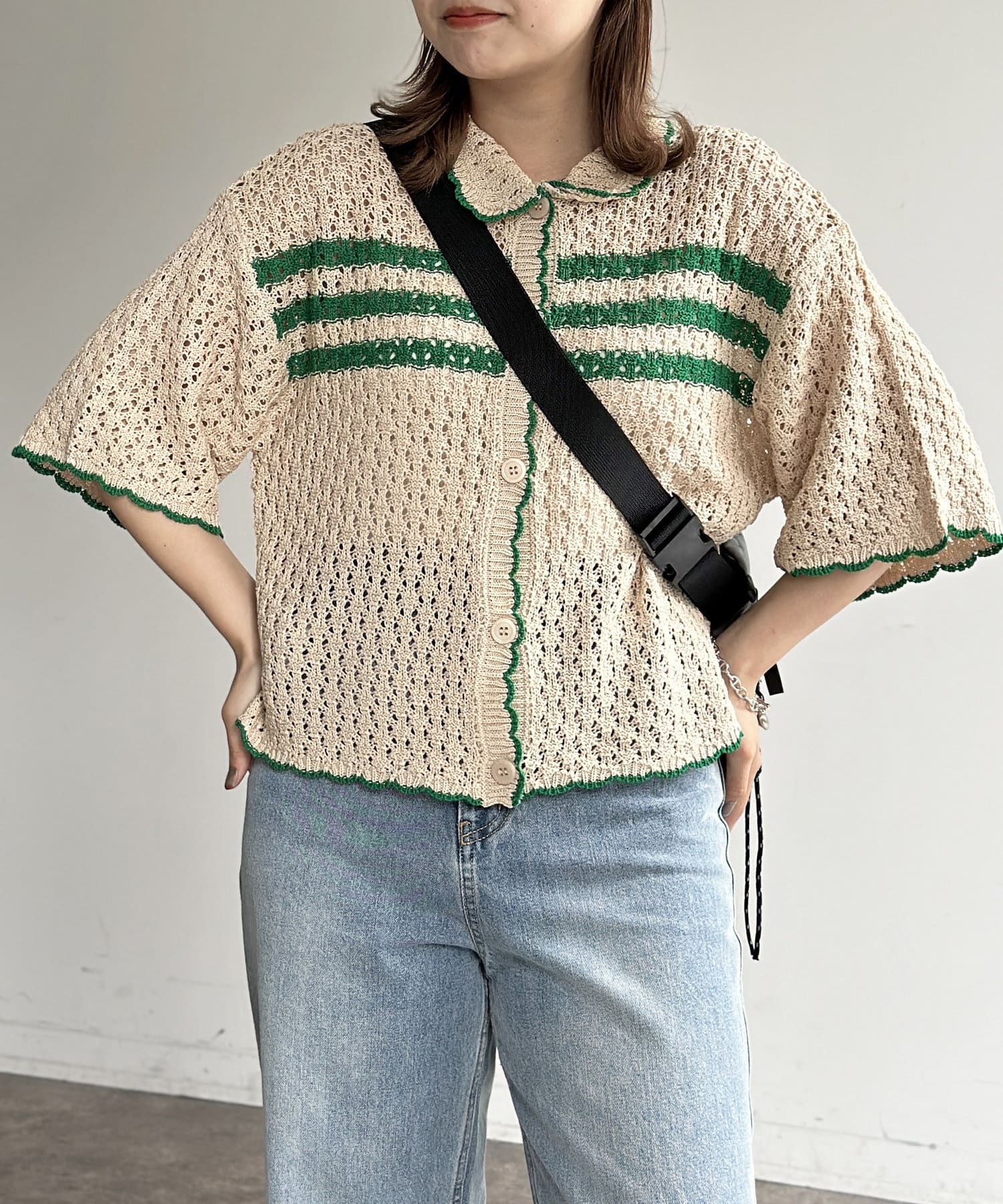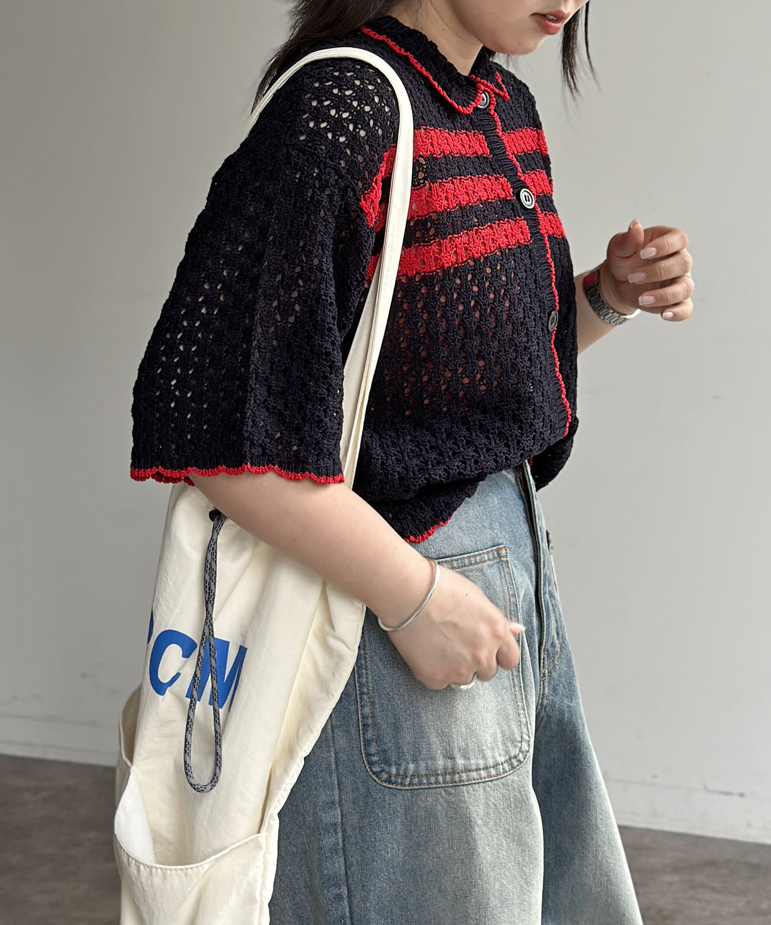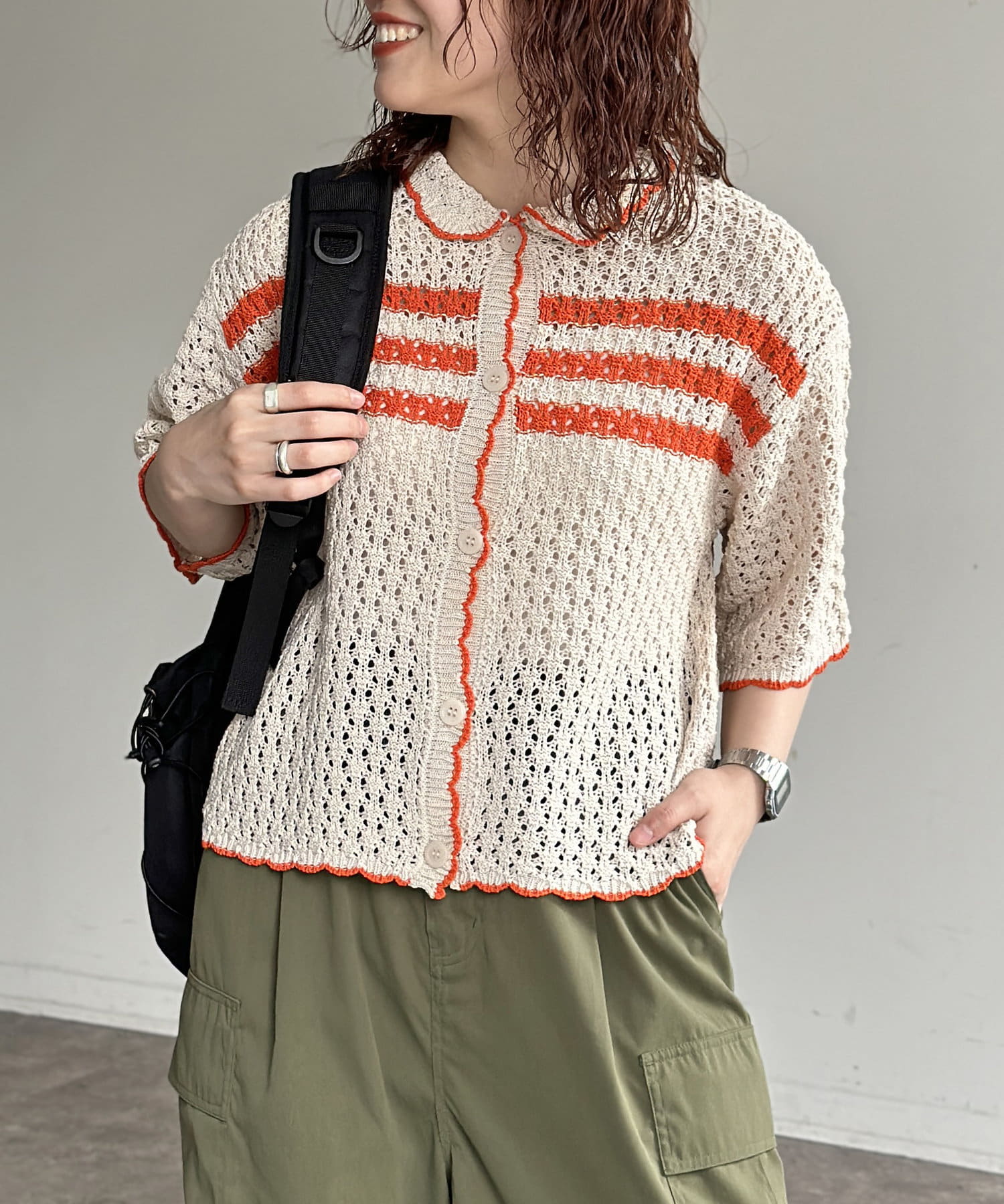 TOP > CPCM > レディース > トップス > カーディガン/ボレロ > スカラップ配色襟付きニット