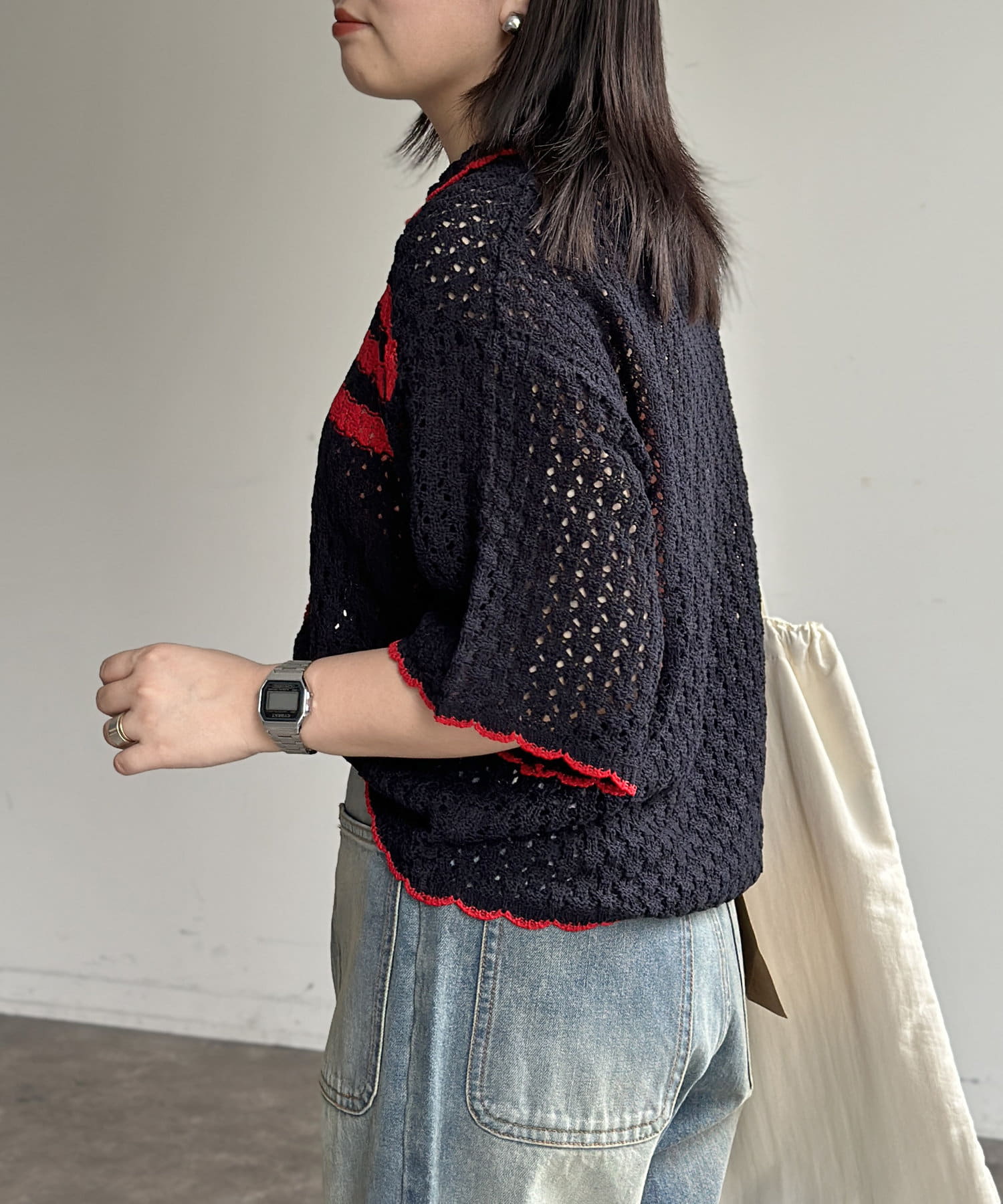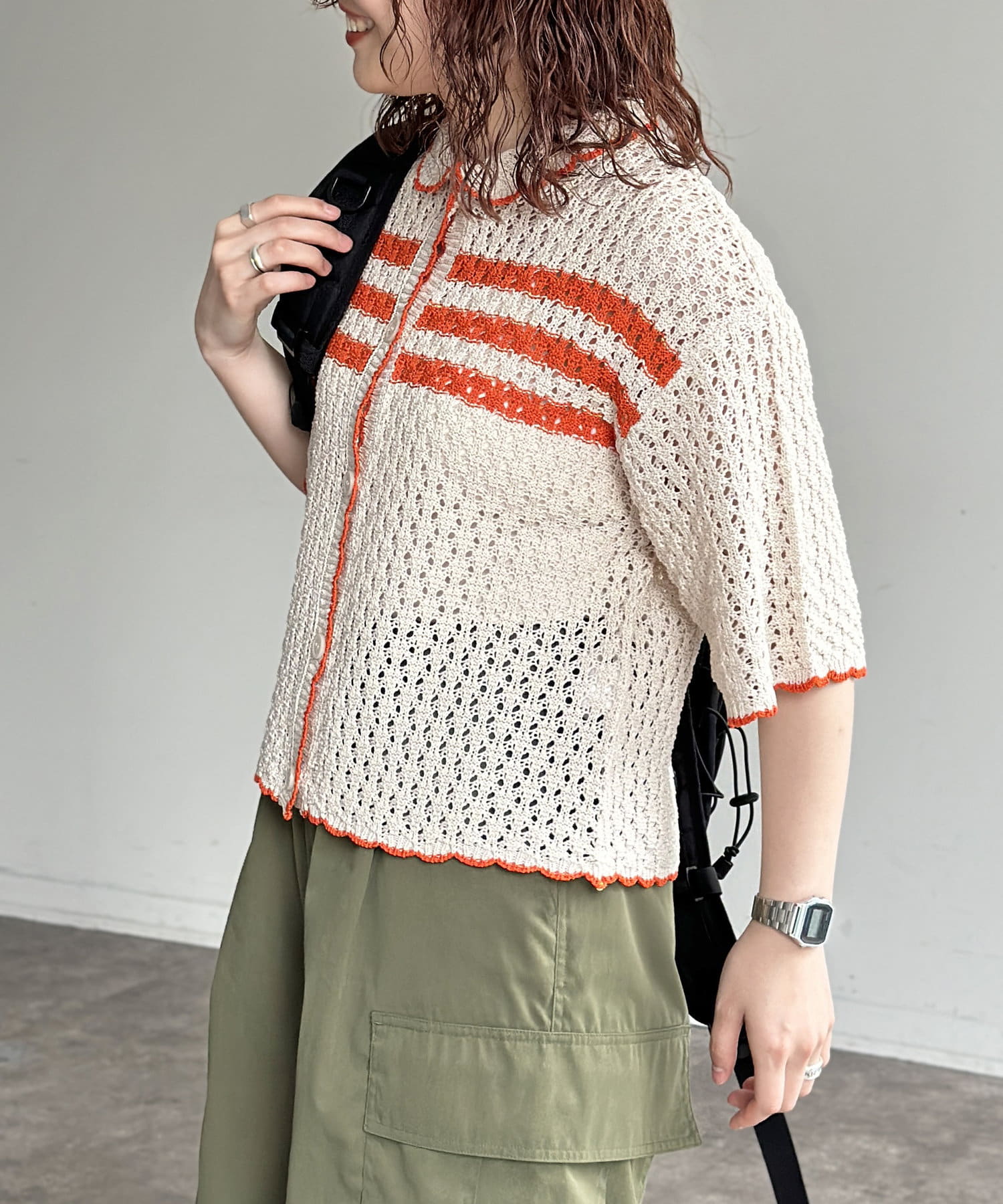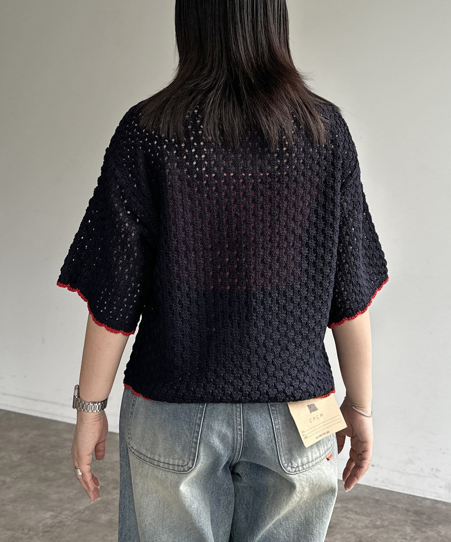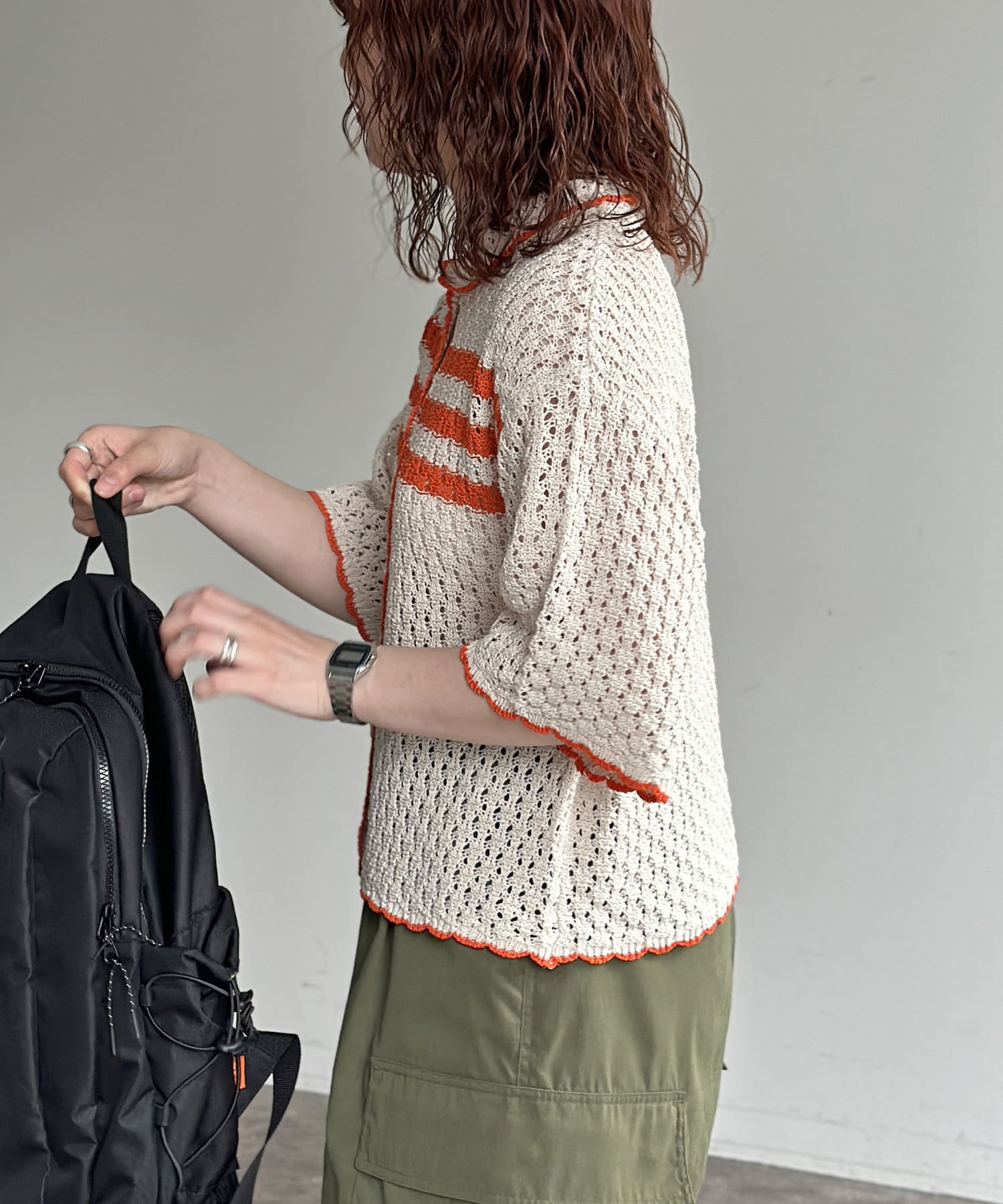 • CPCM(シーピーシーエム) スカラップ配色襟付きニット