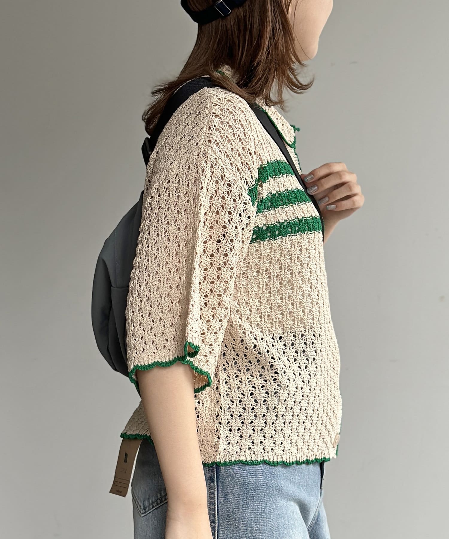 CPCM(シーピーシーエム) スカラップ配色襟付きニット