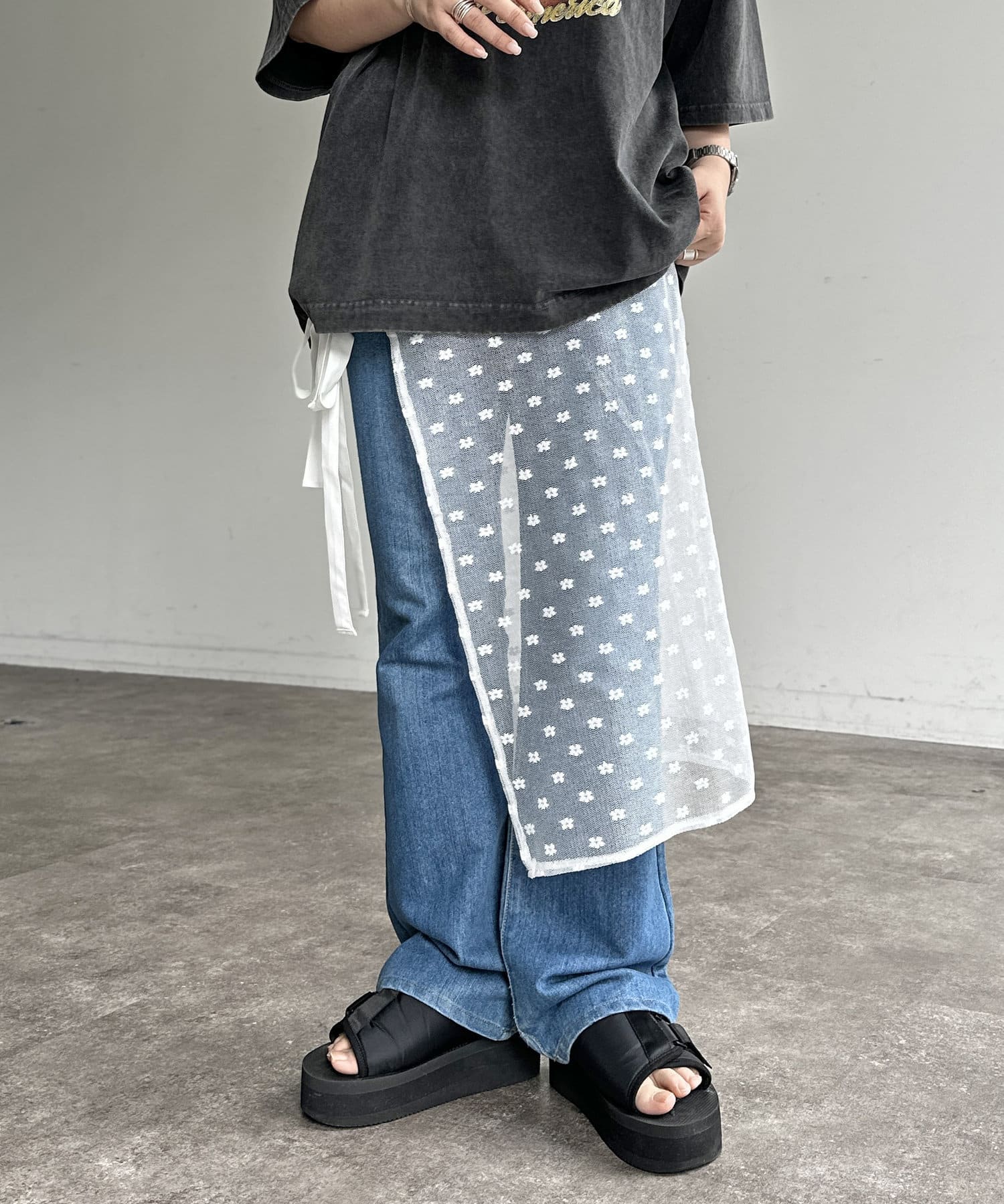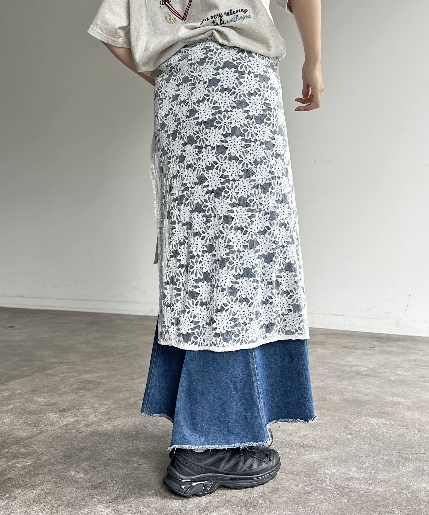 【アイボリー(花刺繍)】本体:ポリエステル100%、刺繍糸:綿100%、別布:ポリエステル100%原産国 中国 サイズ F カテゴリ スカート > スカート タイプ レディース ギフト ラッピング 可 取り扱い - アイテムサイズ