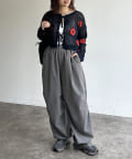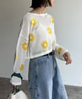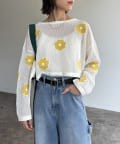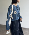 こういうニットは多いですが、花のモチーフがとても良いです。薄いグレーなので春から秋まで使えそうです。