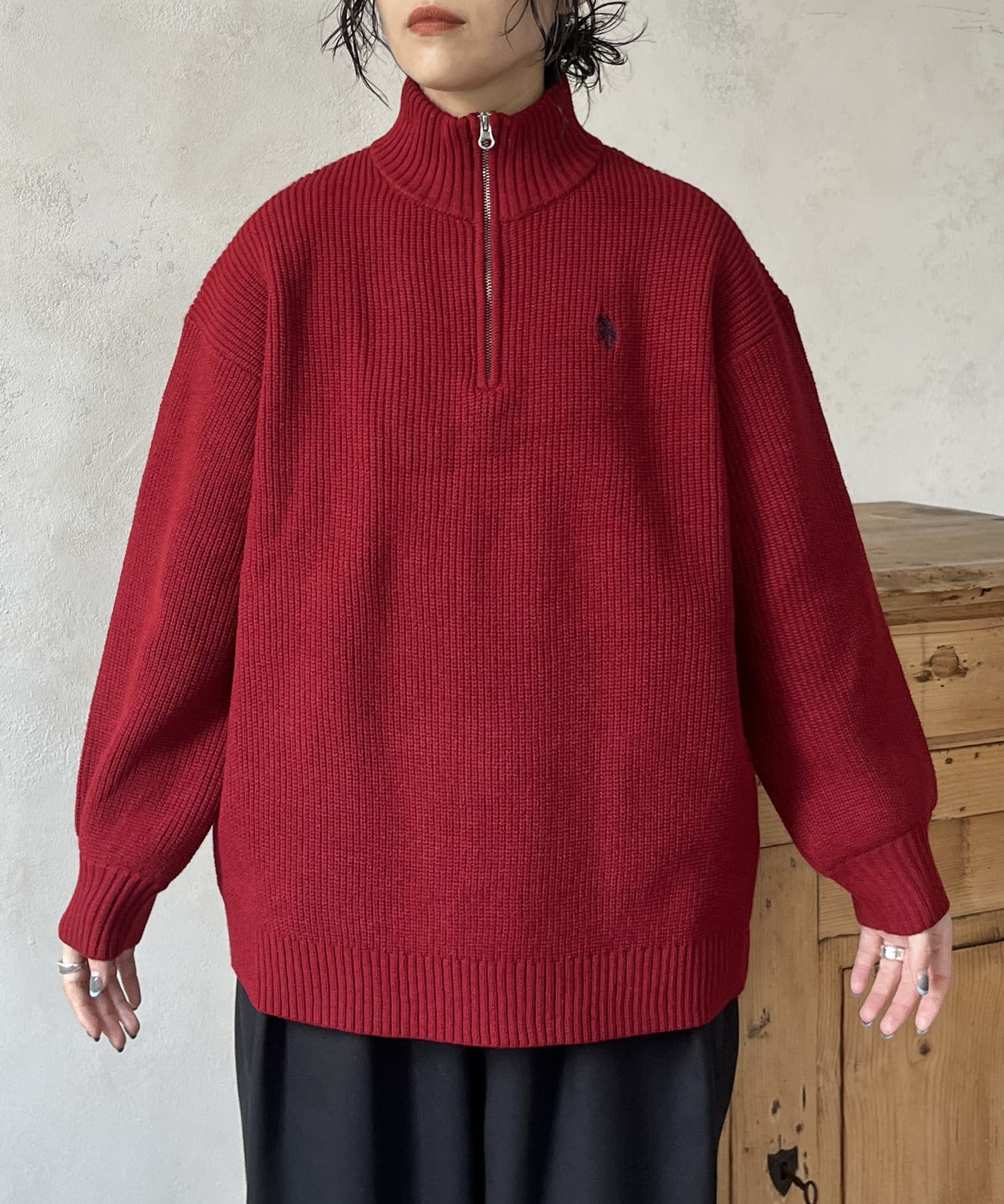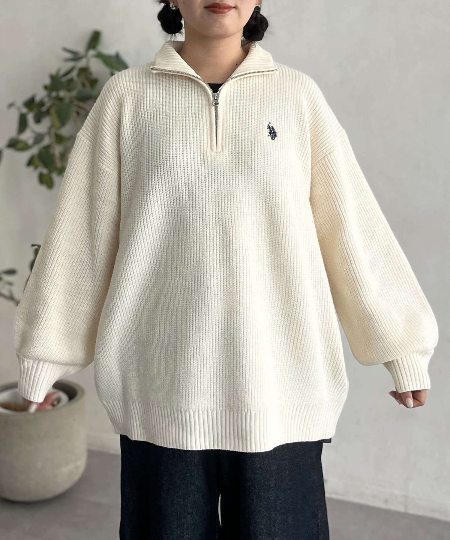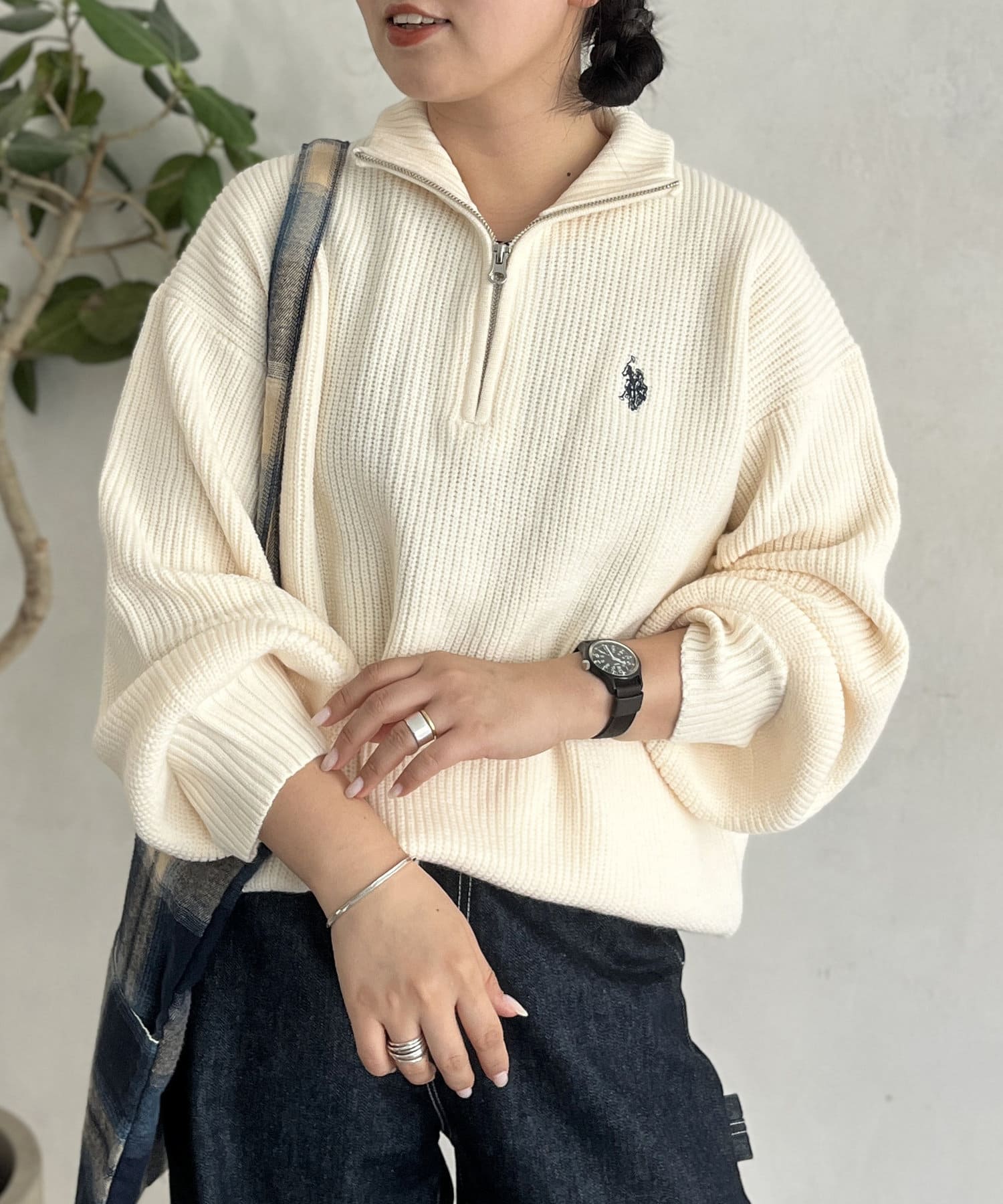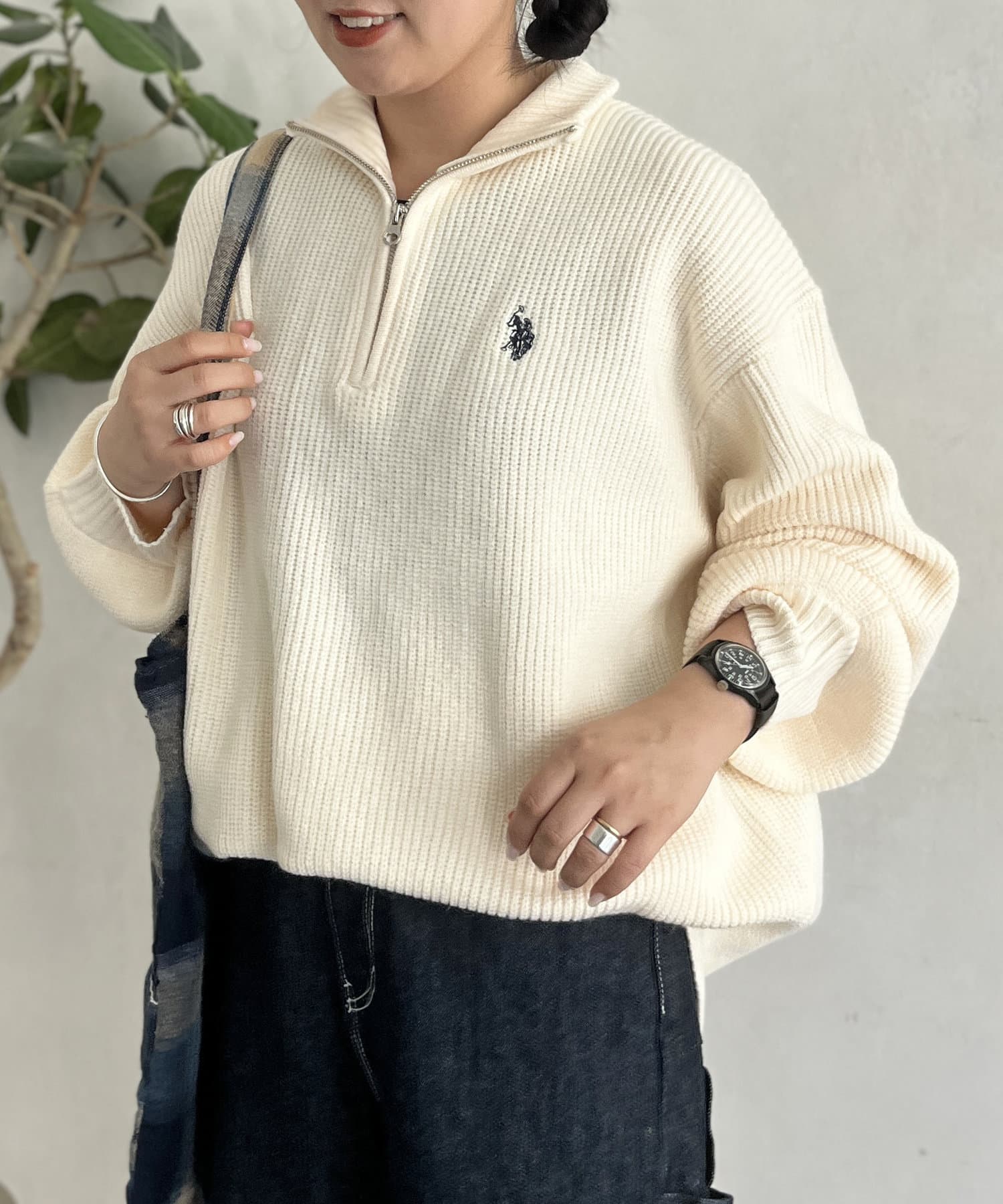 【U.S. POLO ASSN.】畦編ハーフジップニット