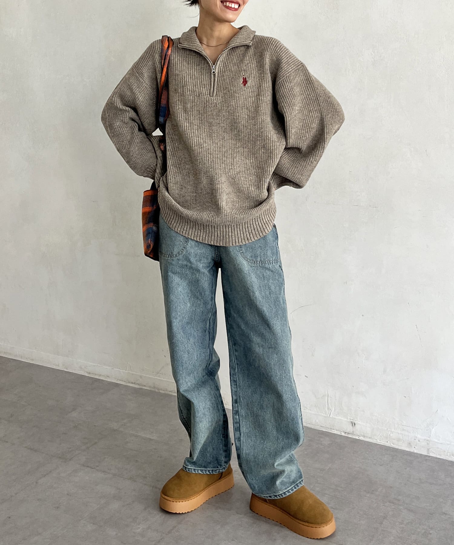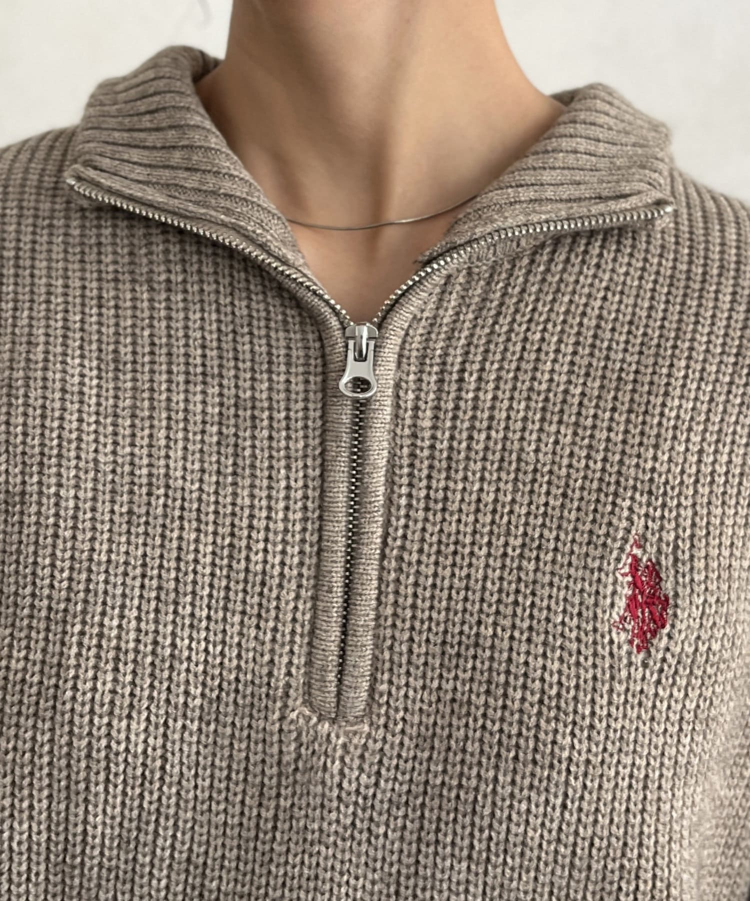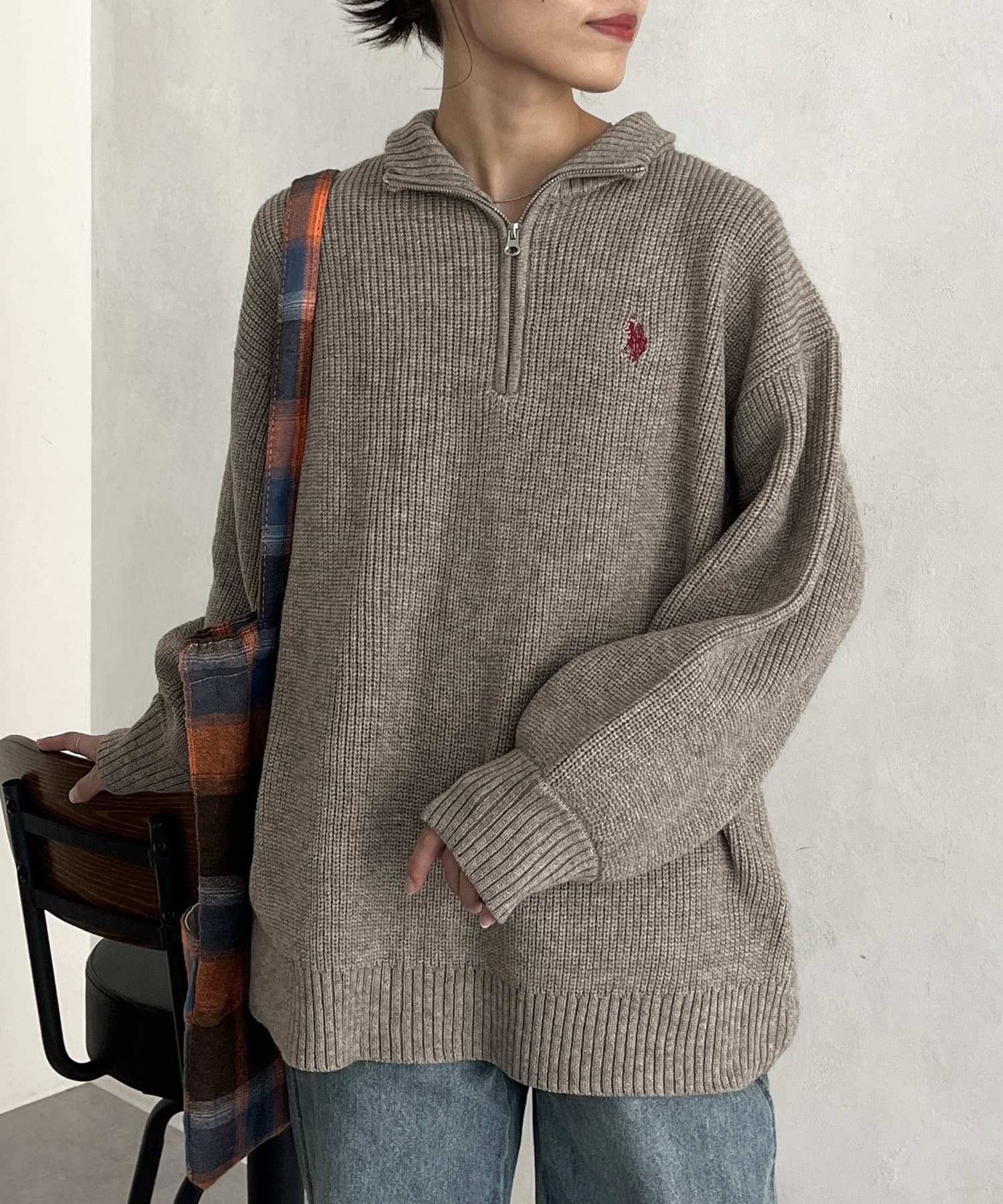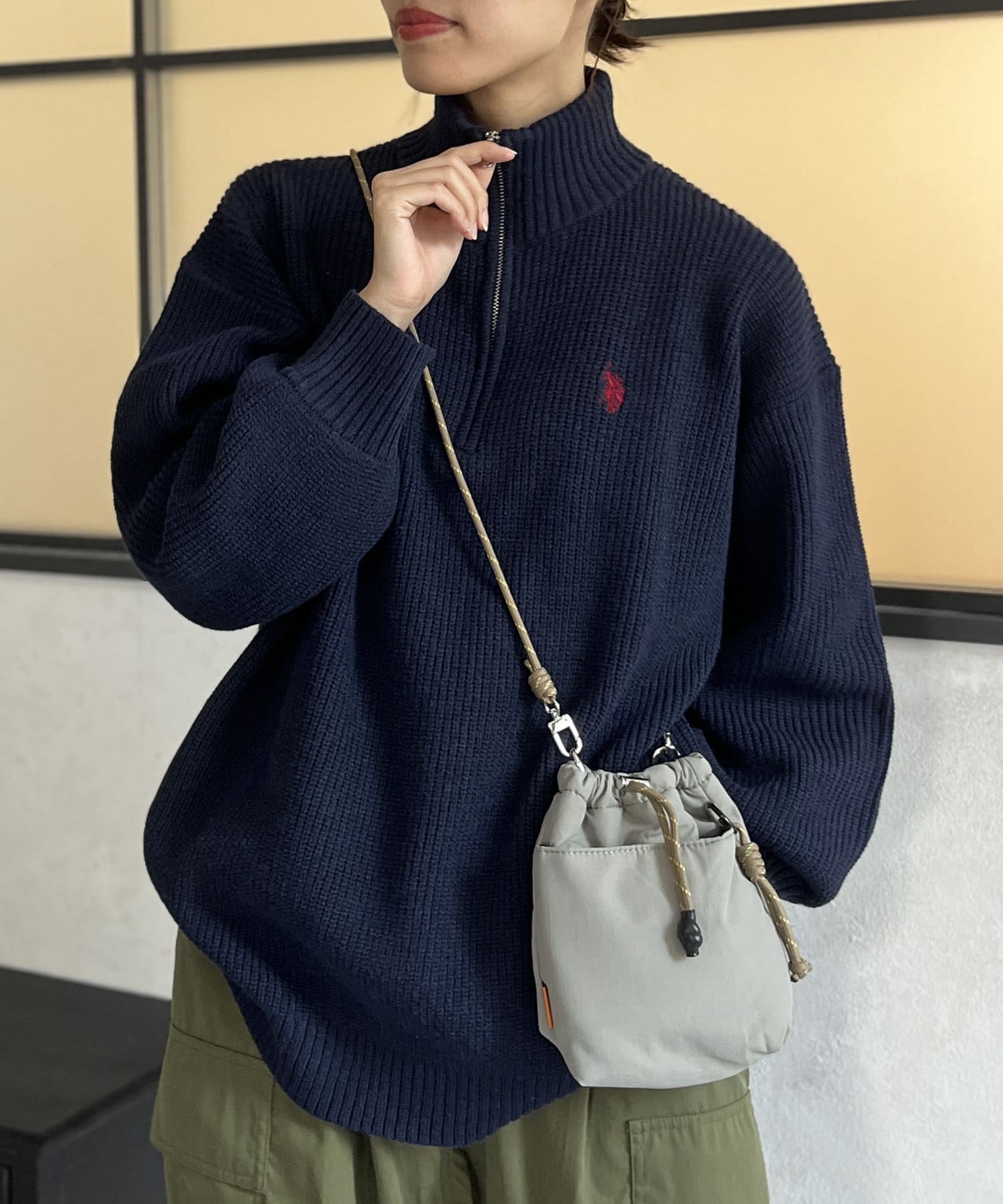 【U.S. POLO ASSN.】畦編ハーフジップニット