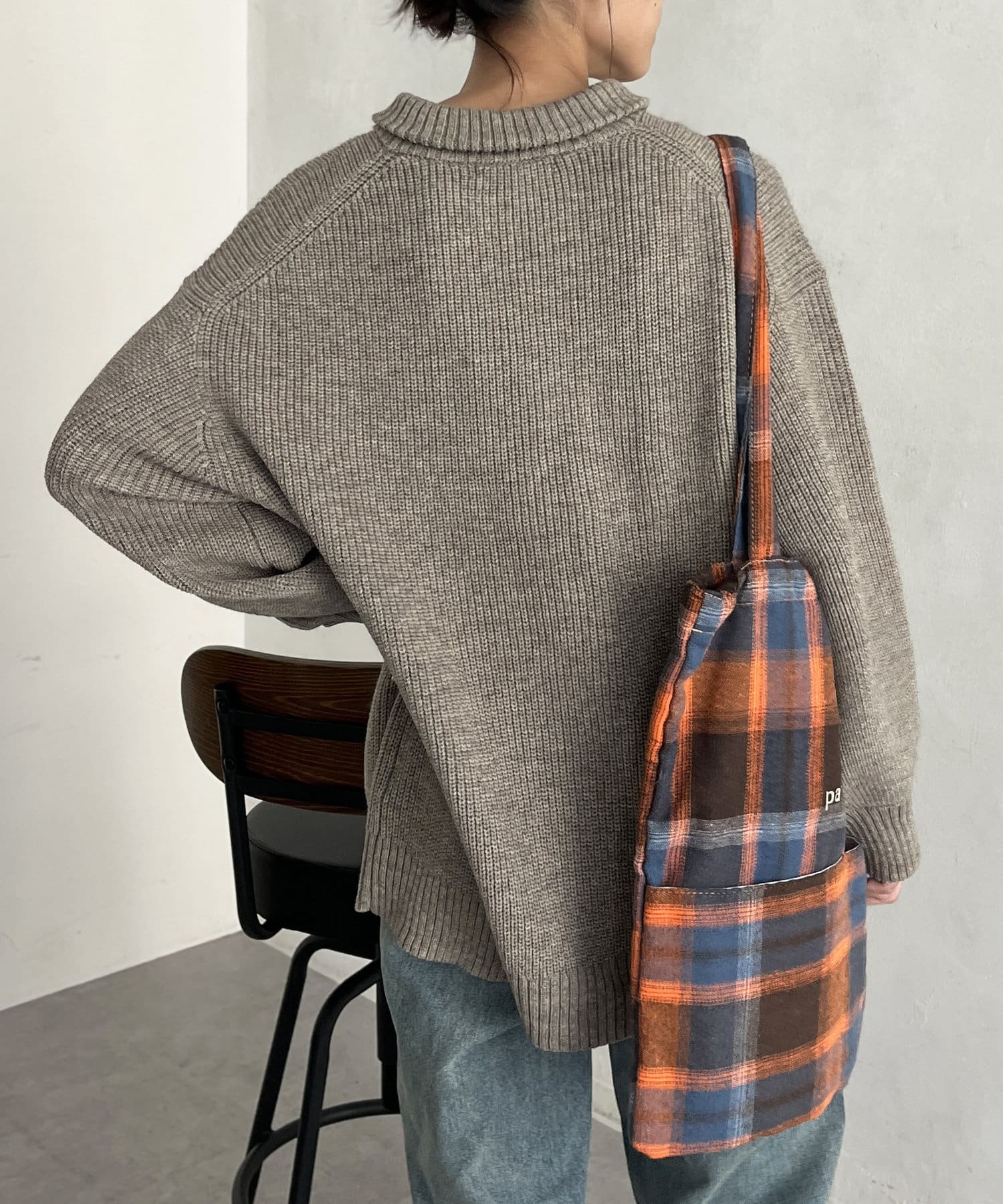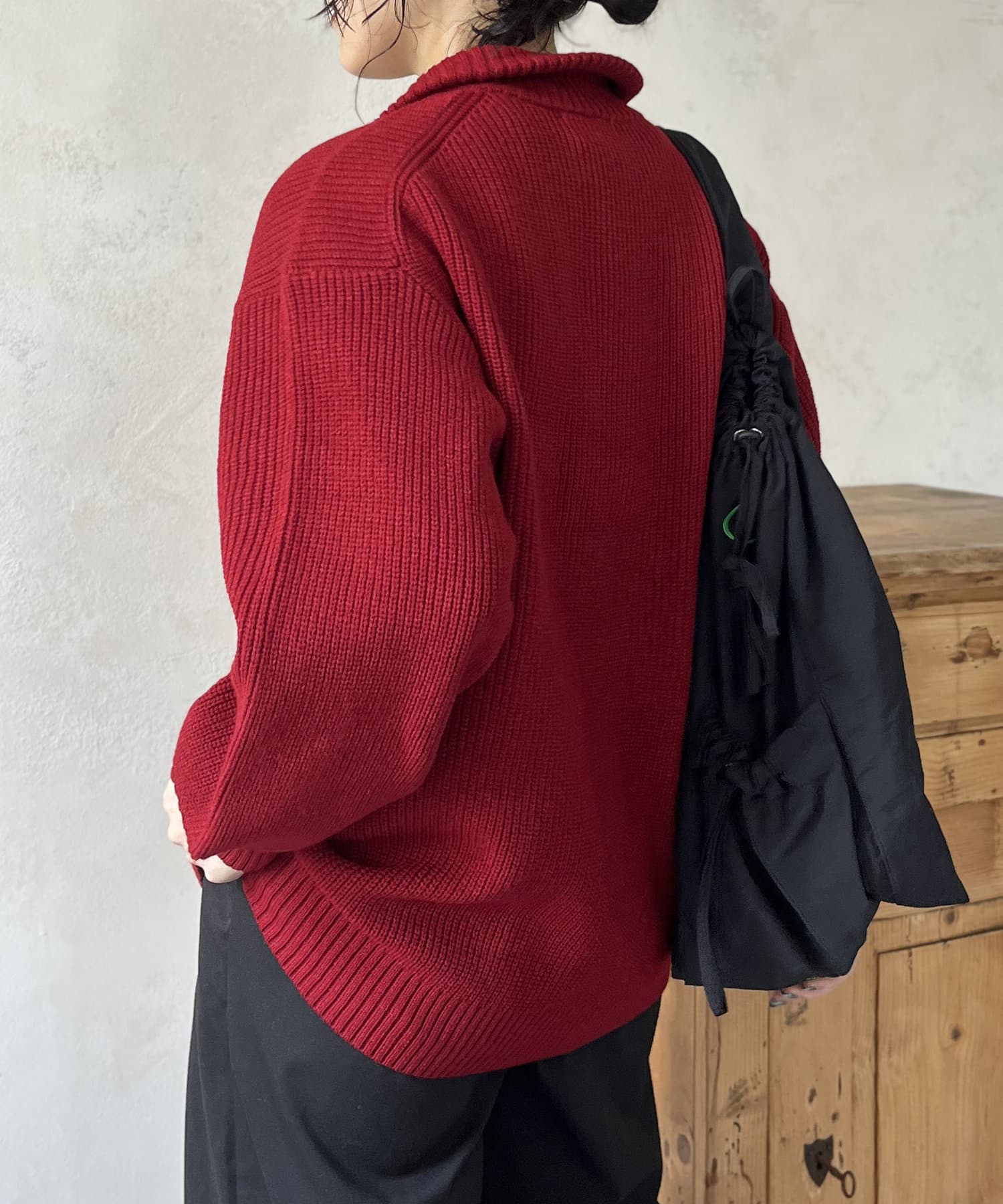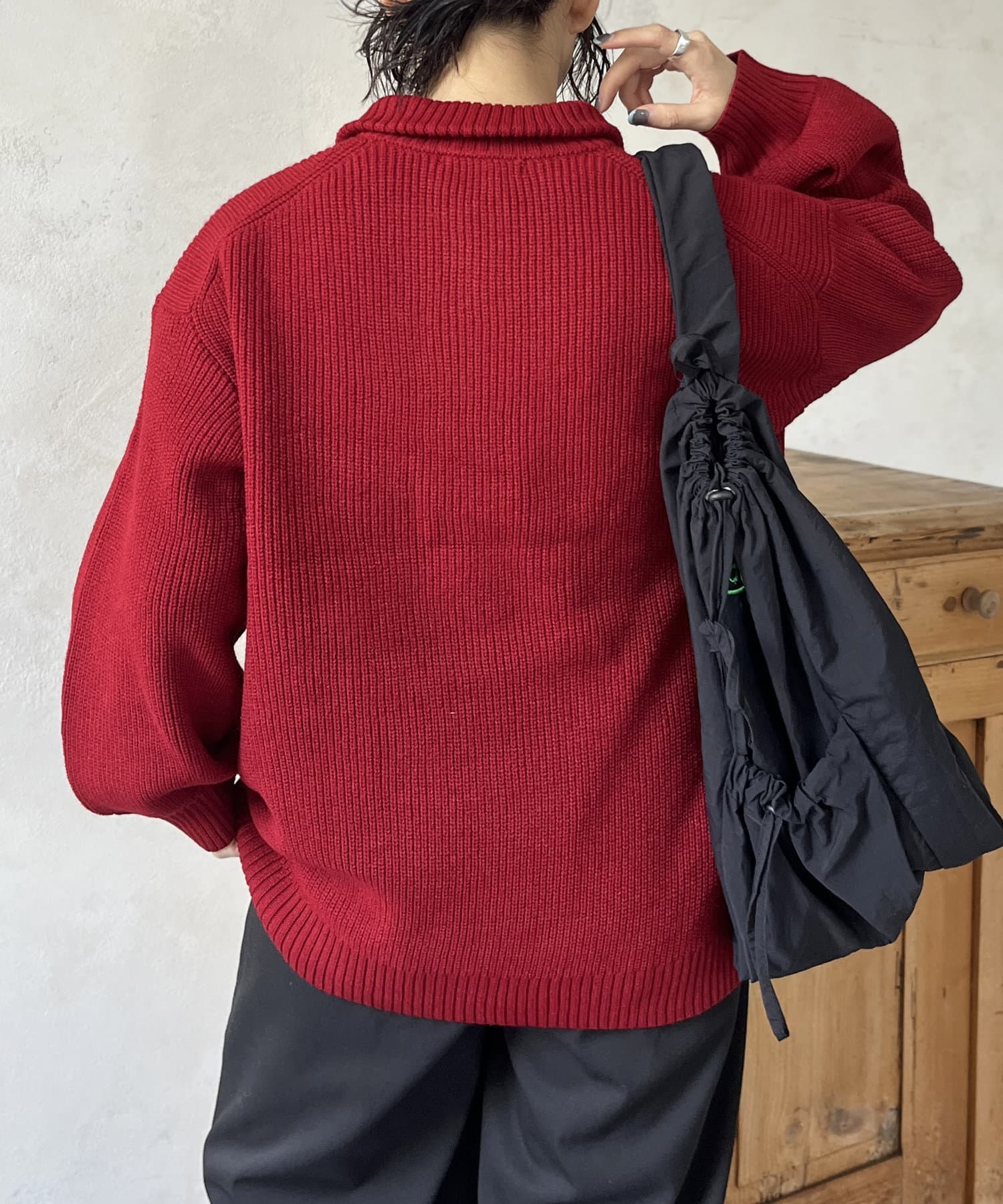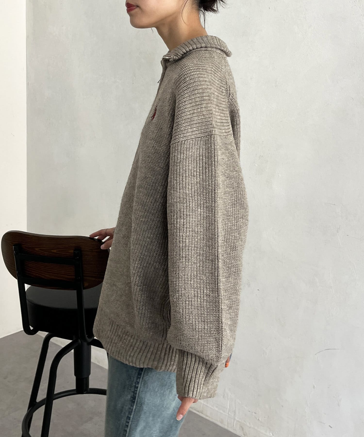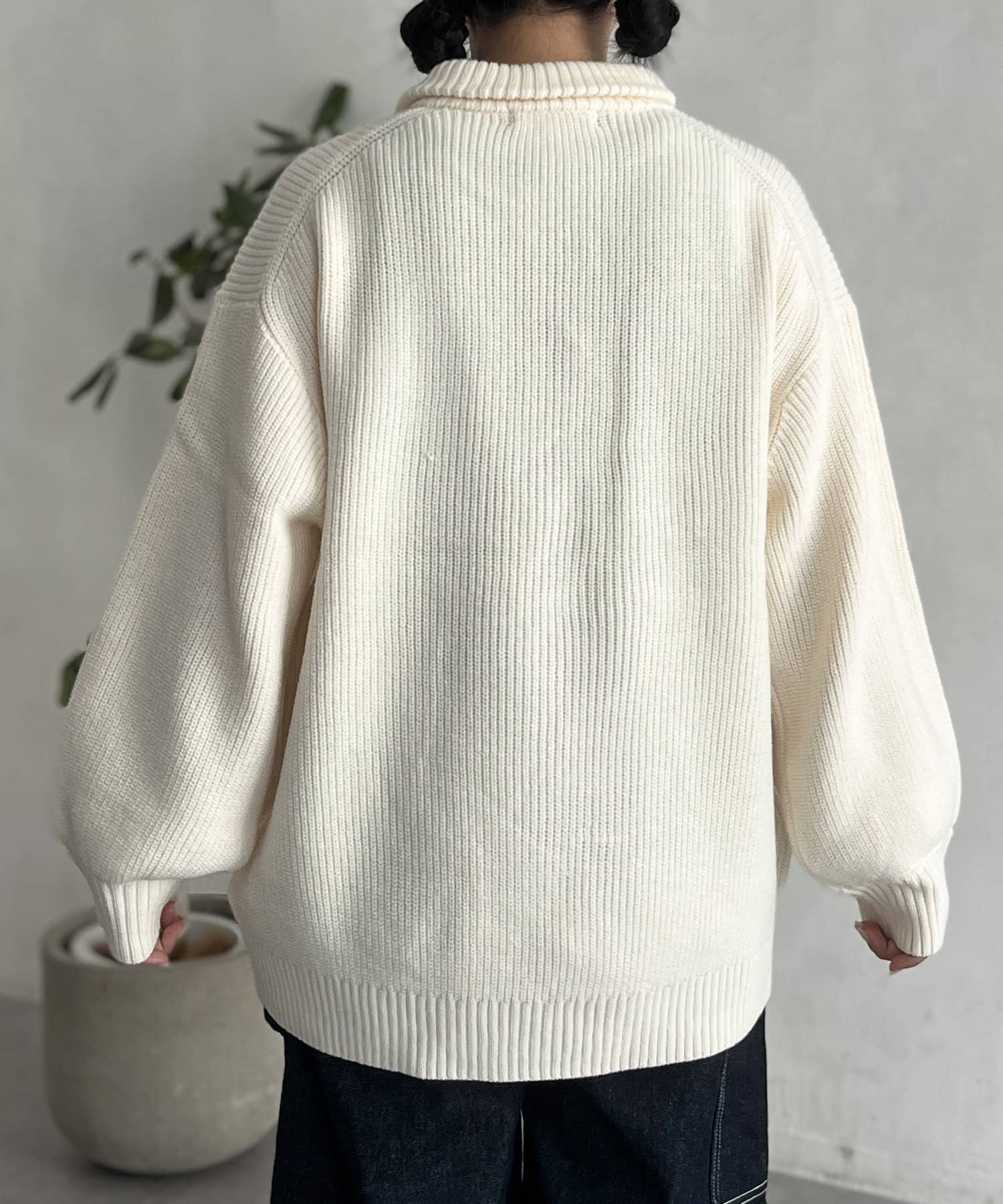 ハーフジップデザインにより多彩なスタイルを楽しめる畦編みニット