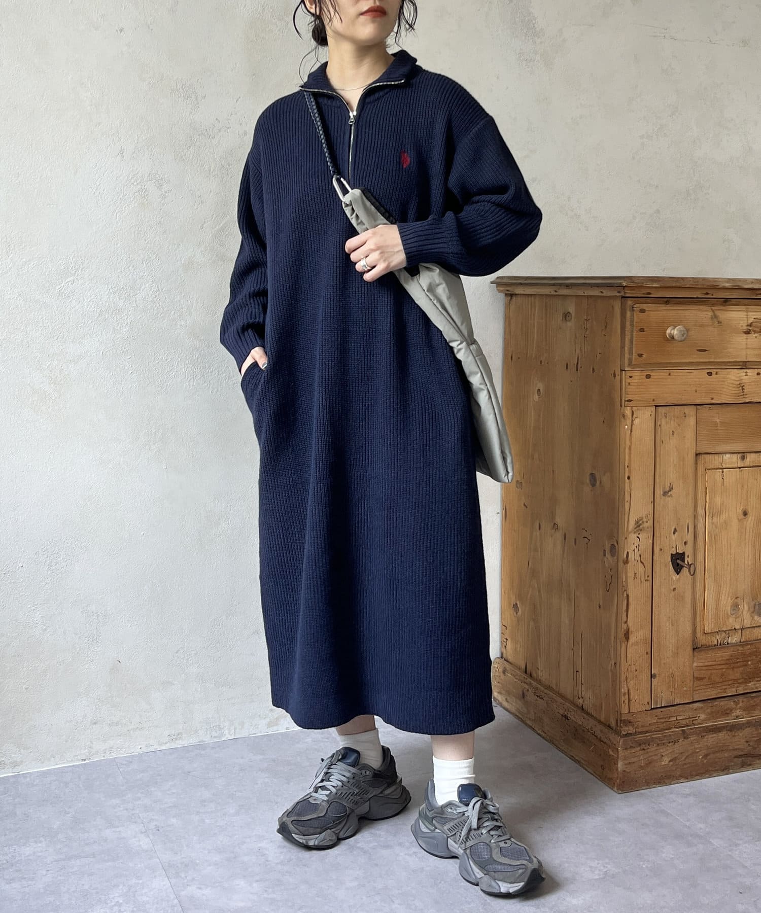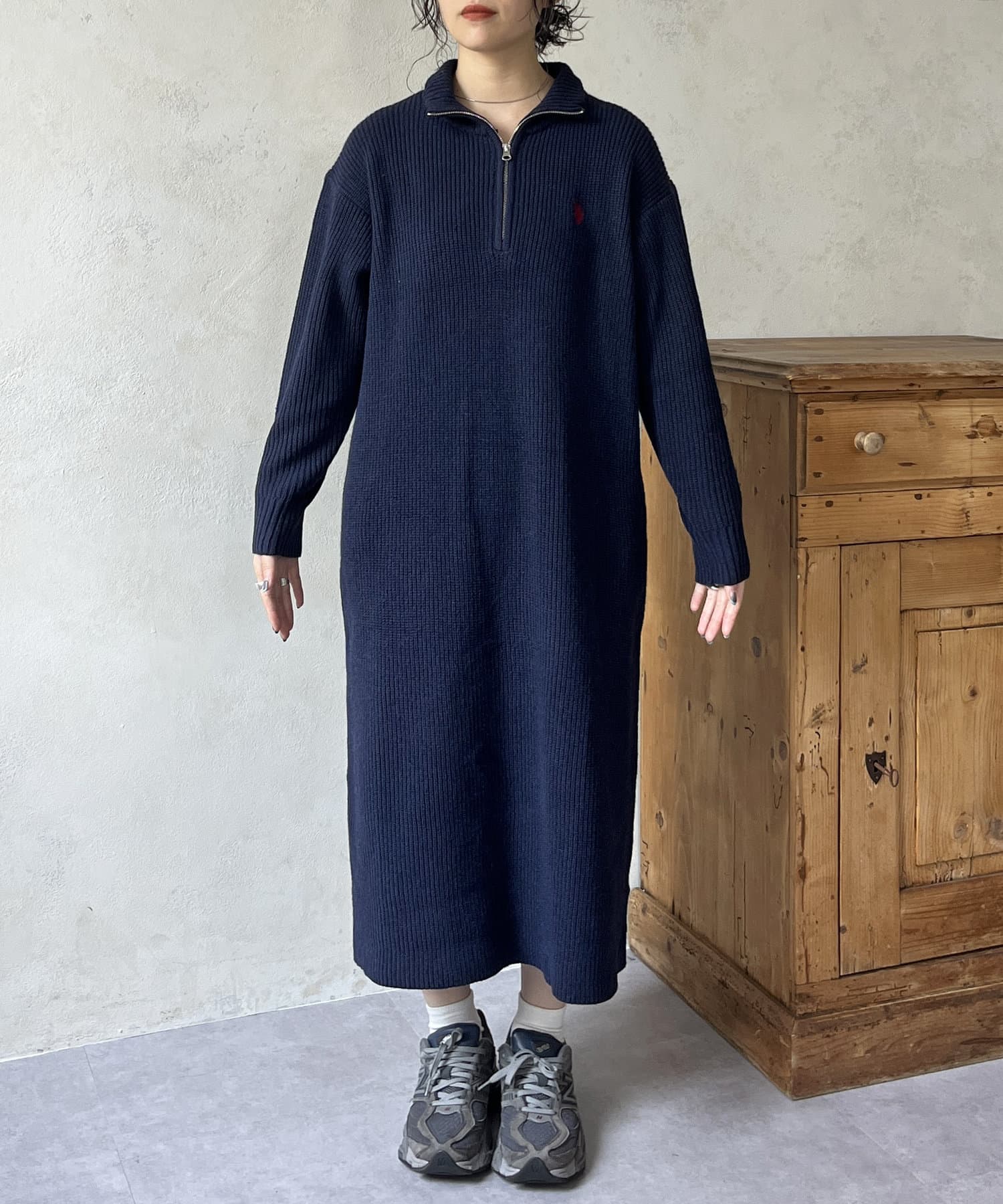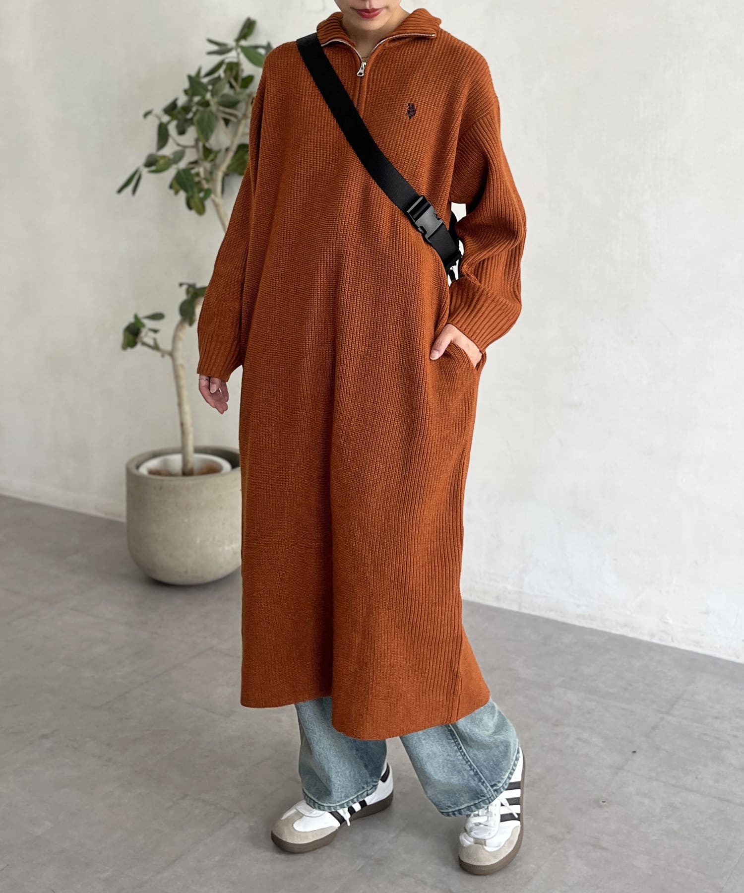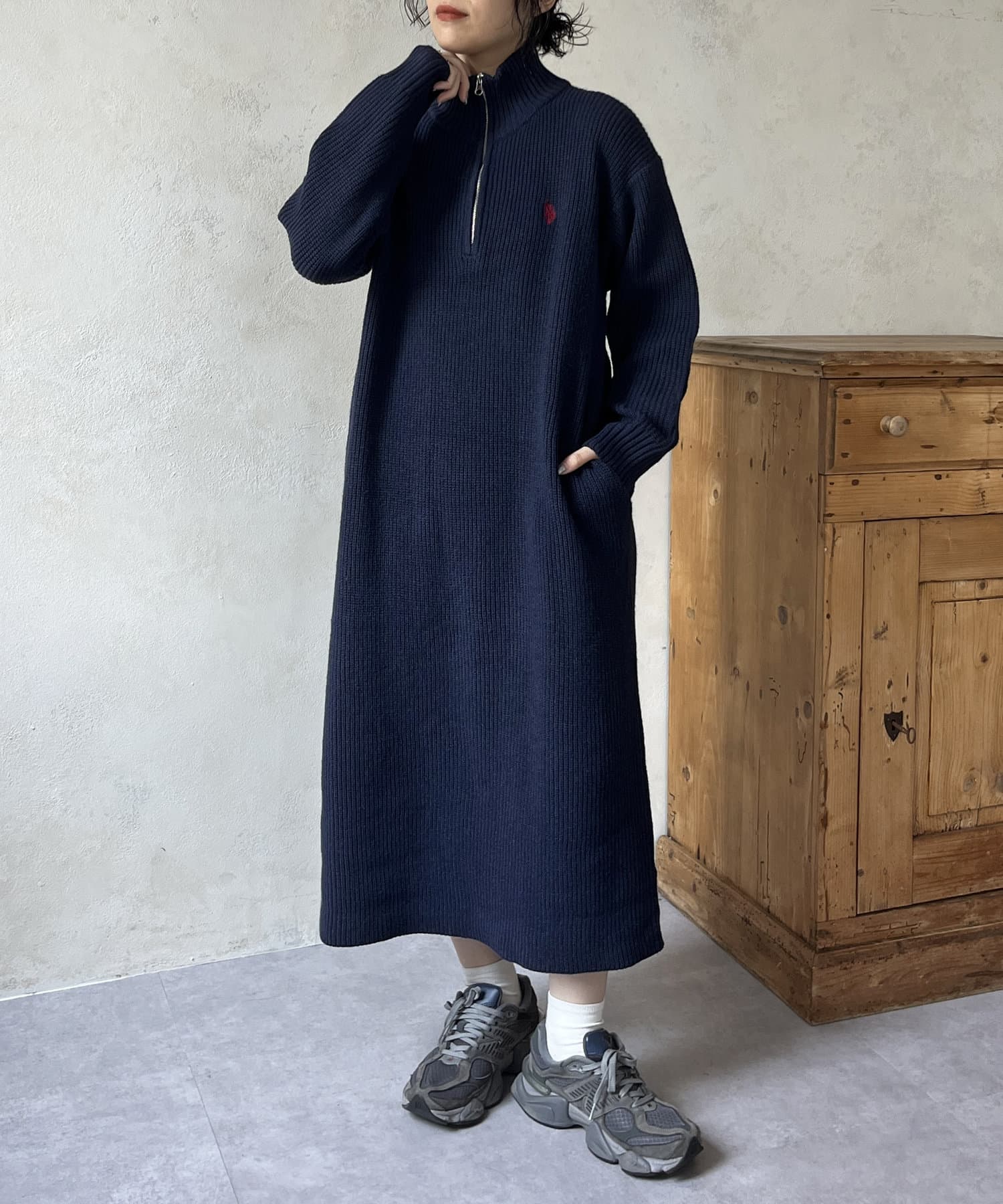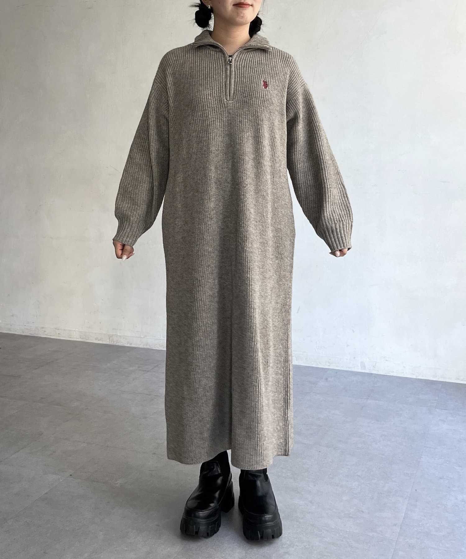 【U.S. POLO ASSN.】畦編ハーフジップワンピース