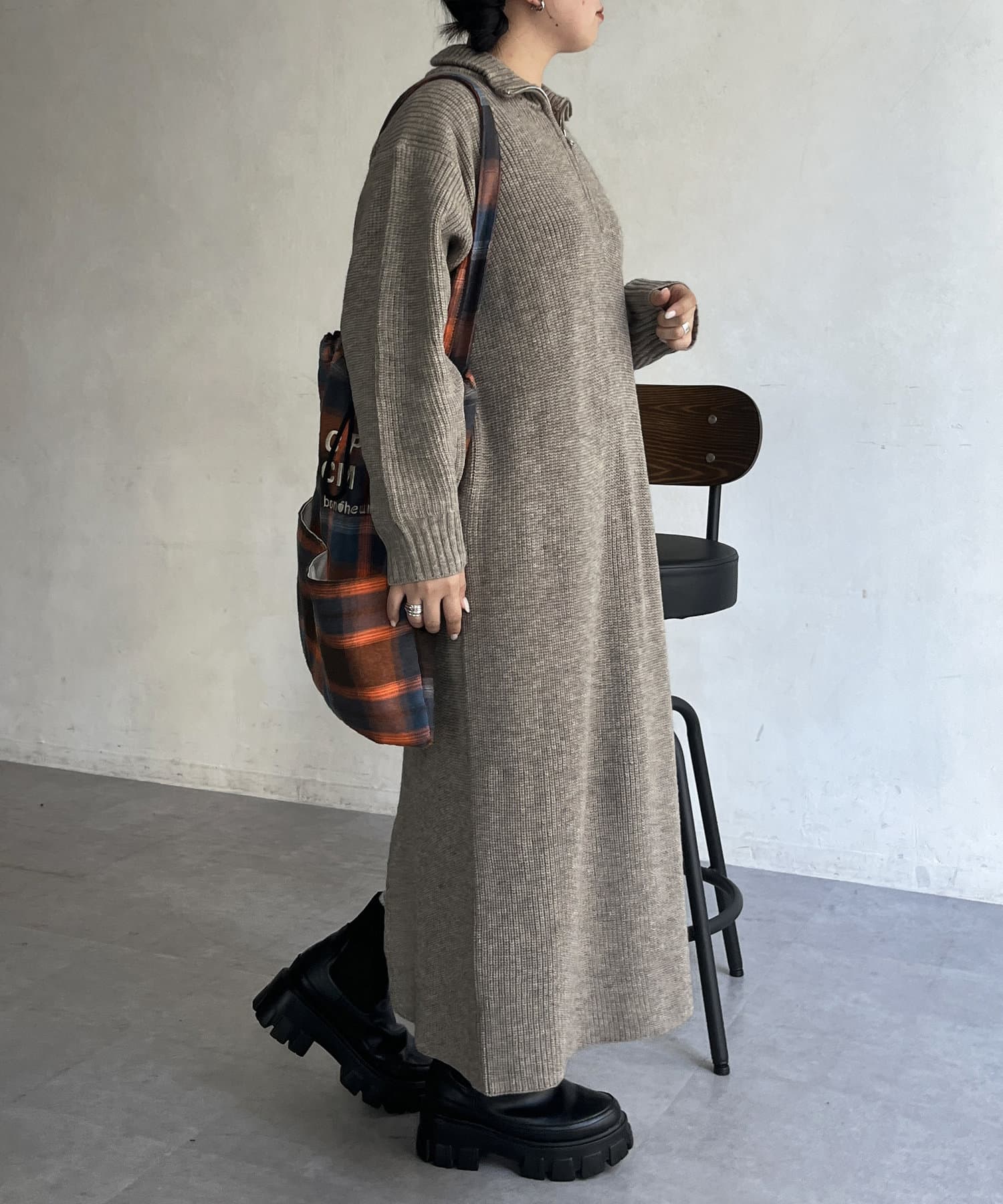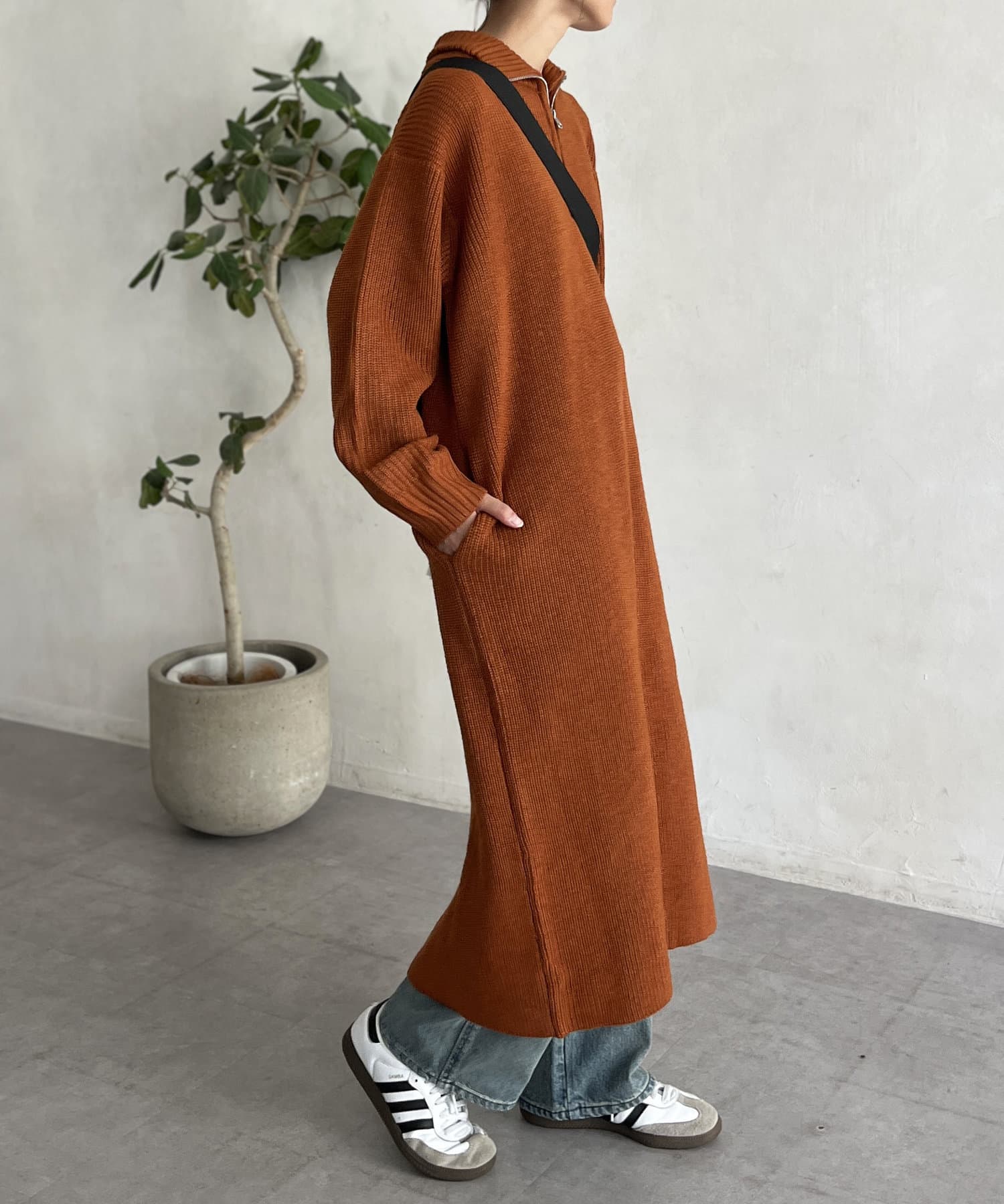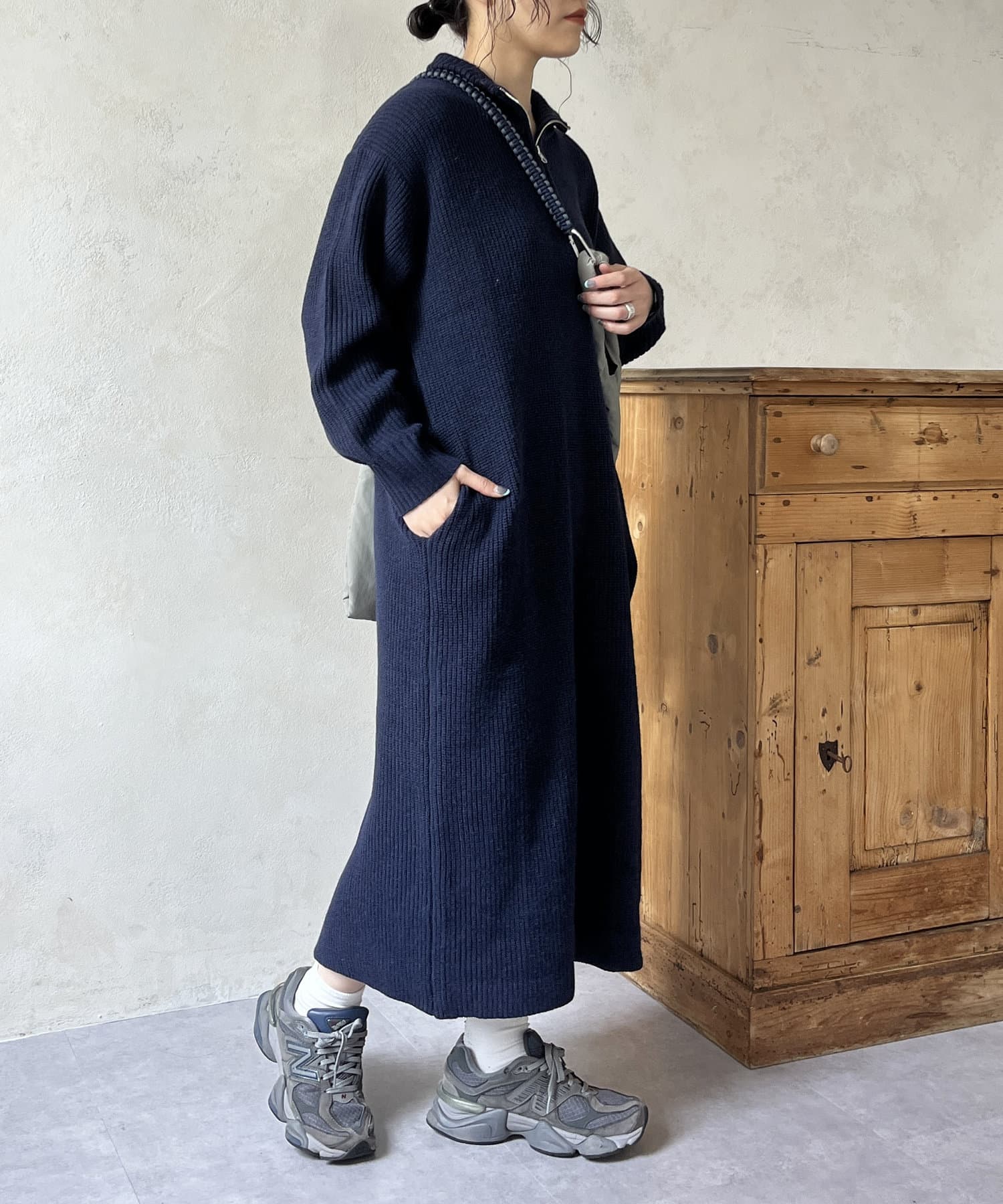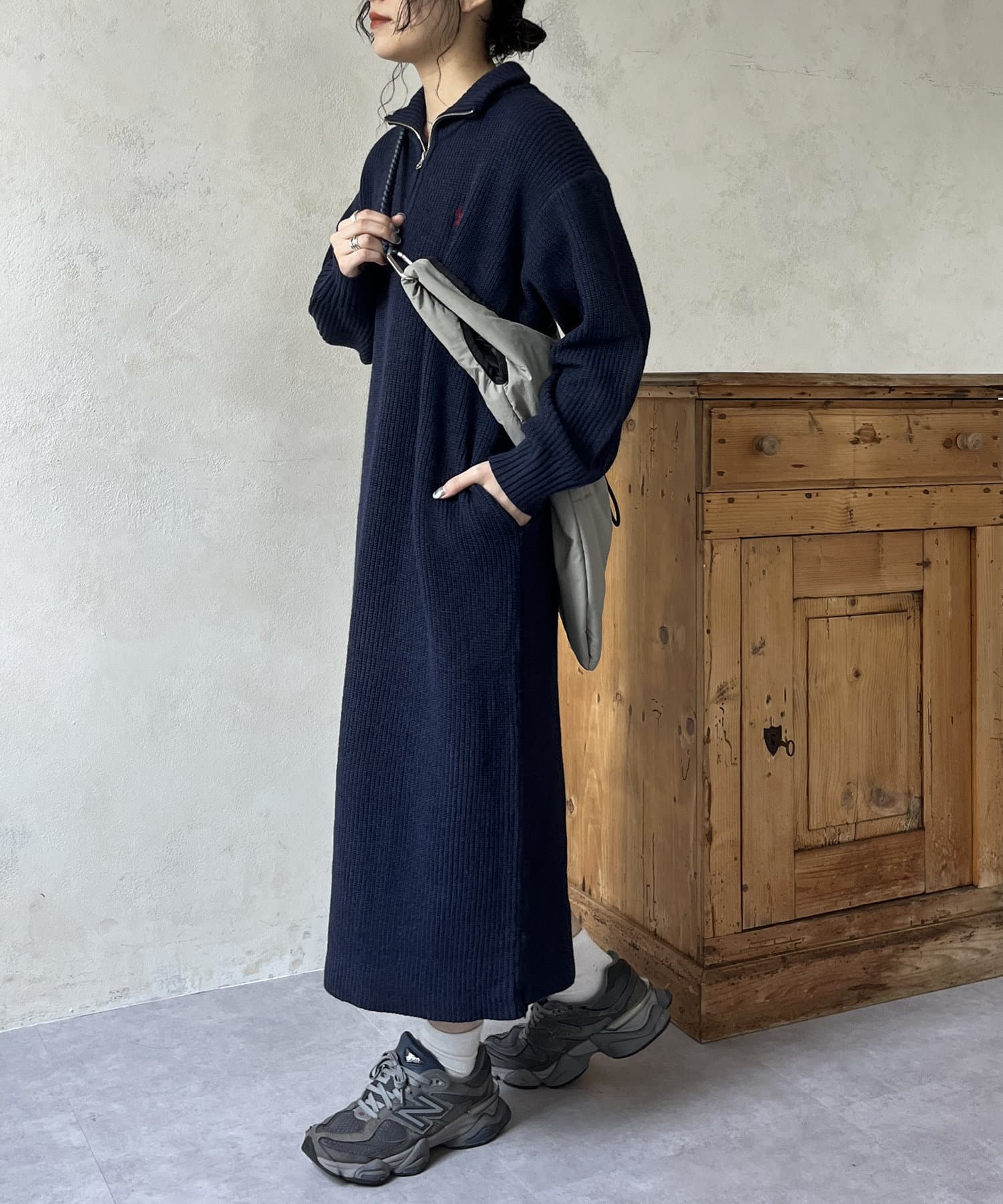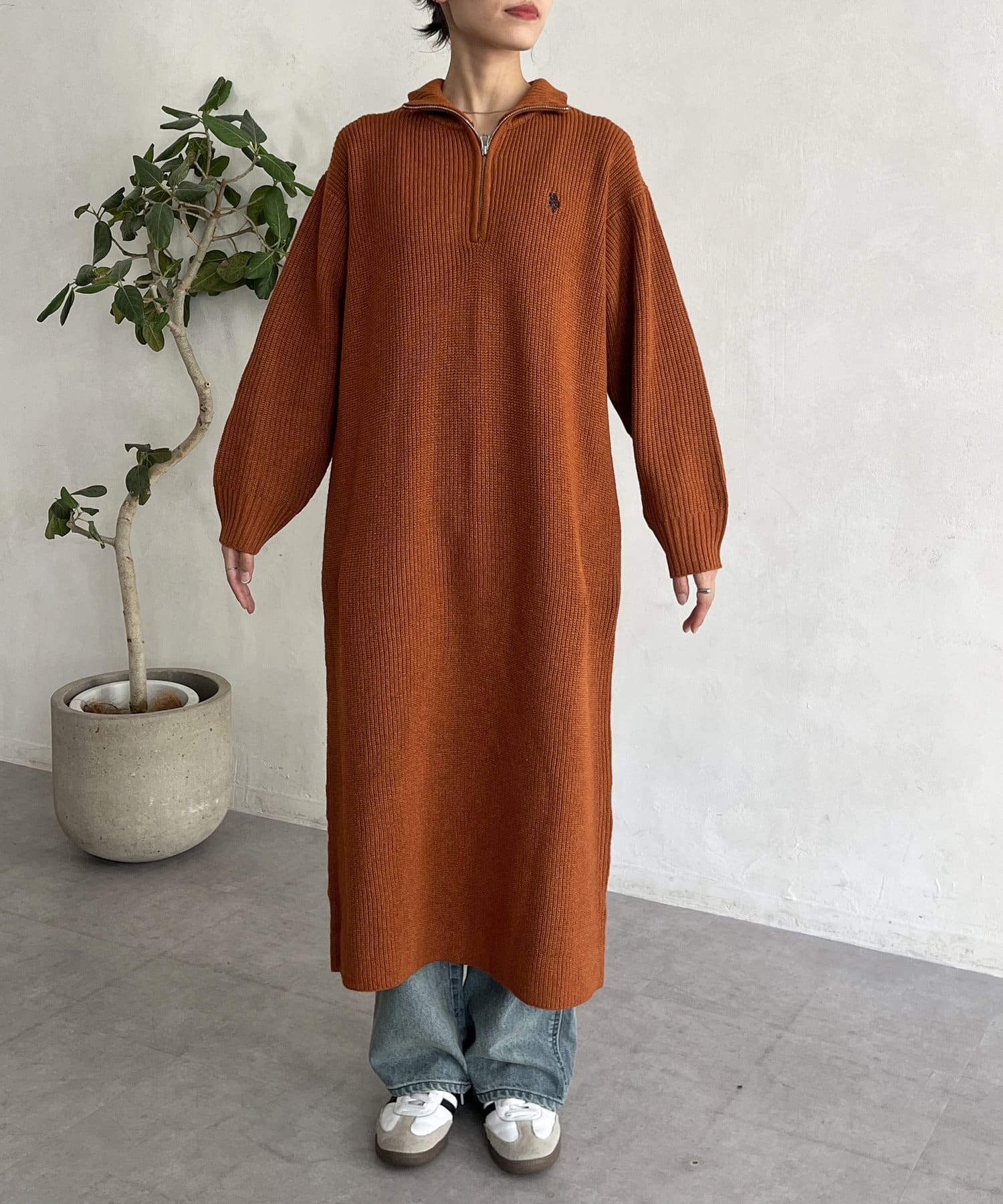 【U.S. POLO ASSN.】畦編ハーフジップワンピース