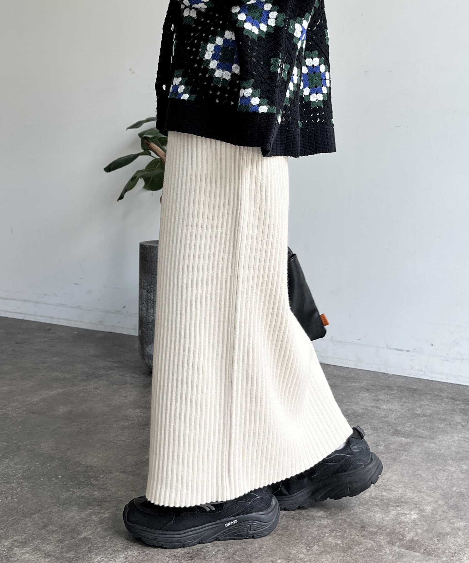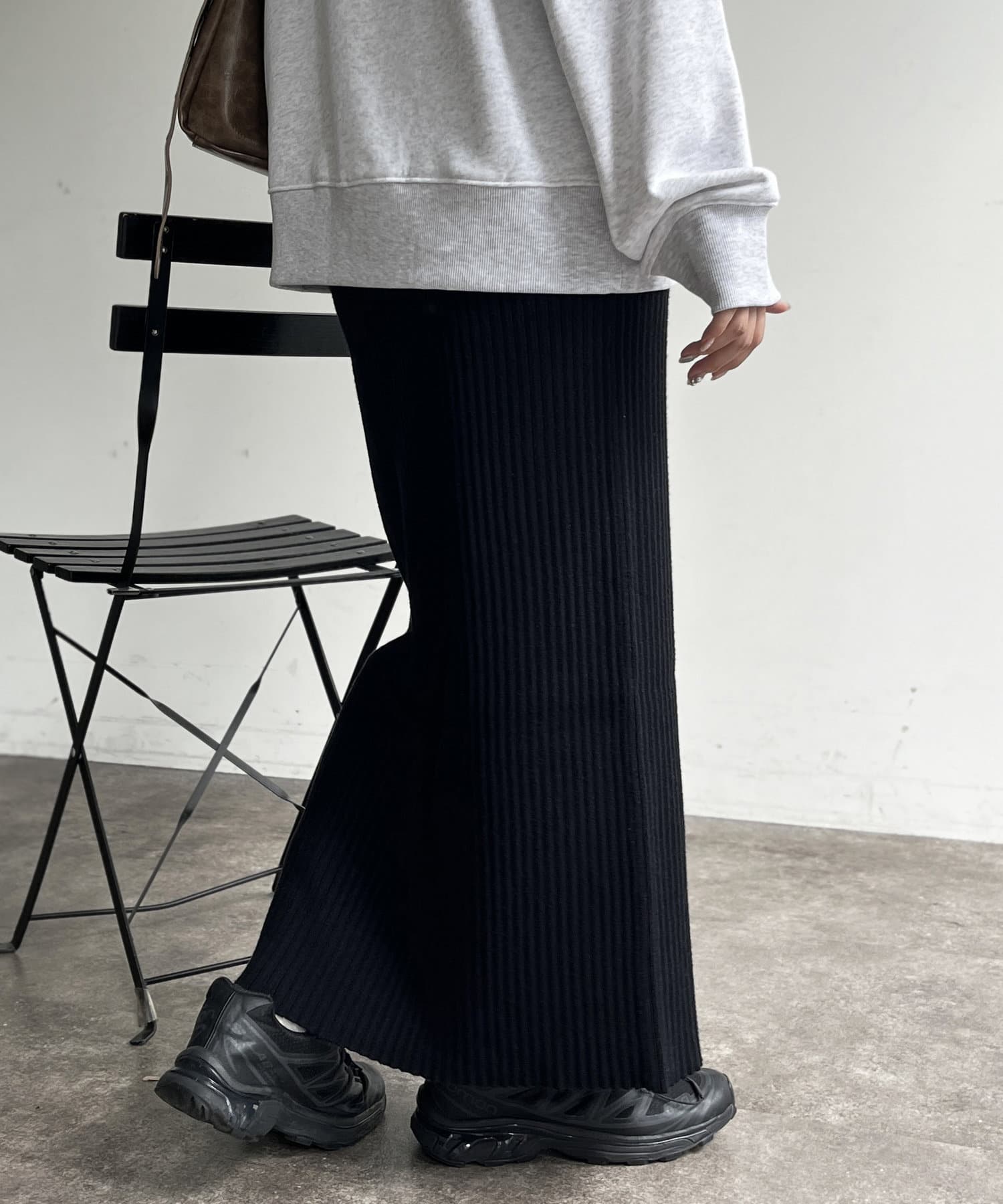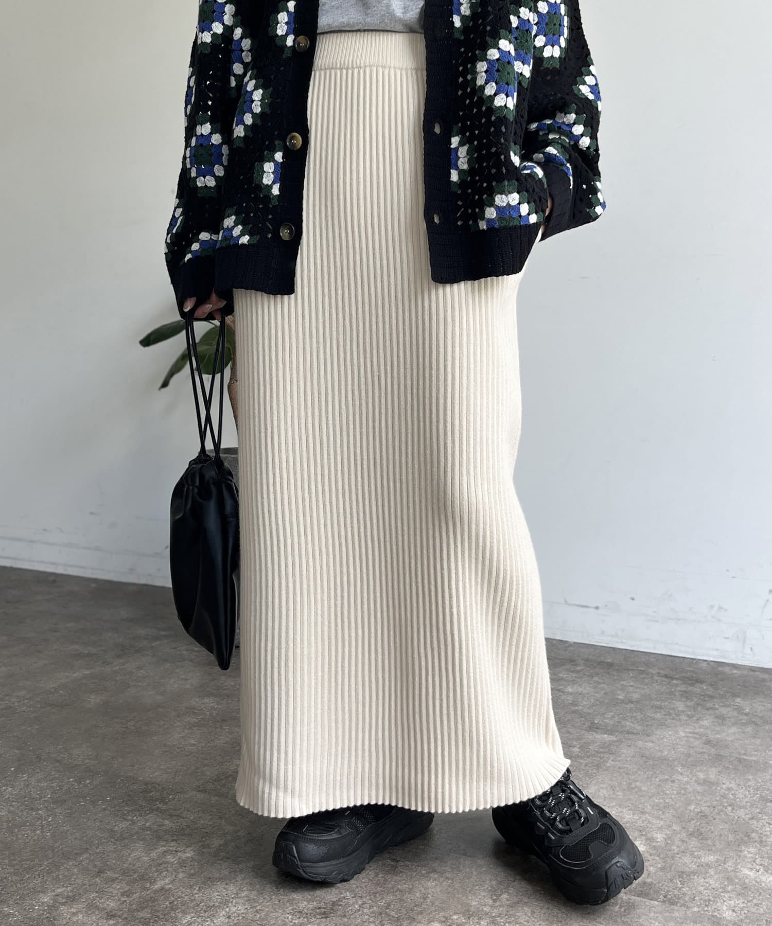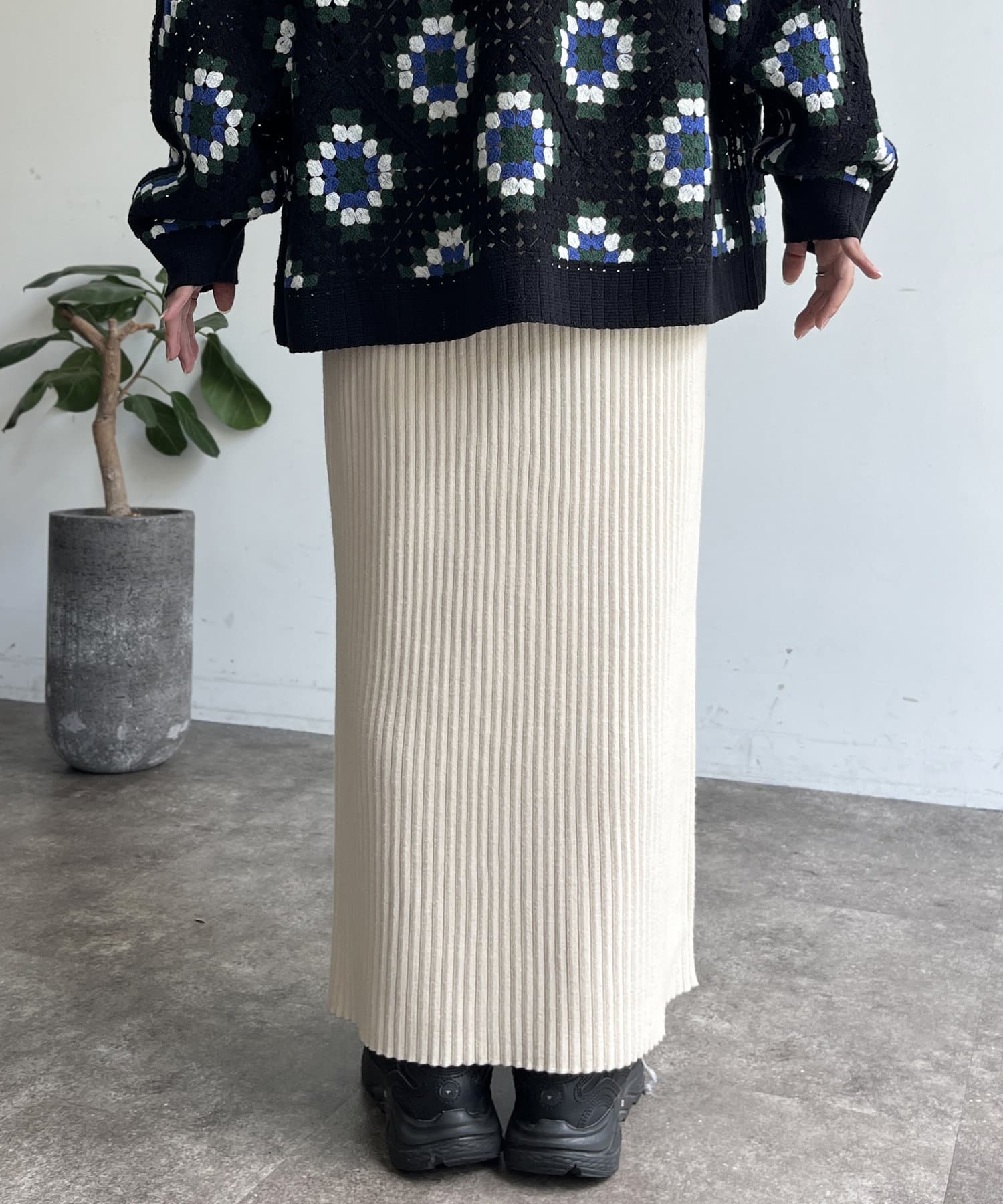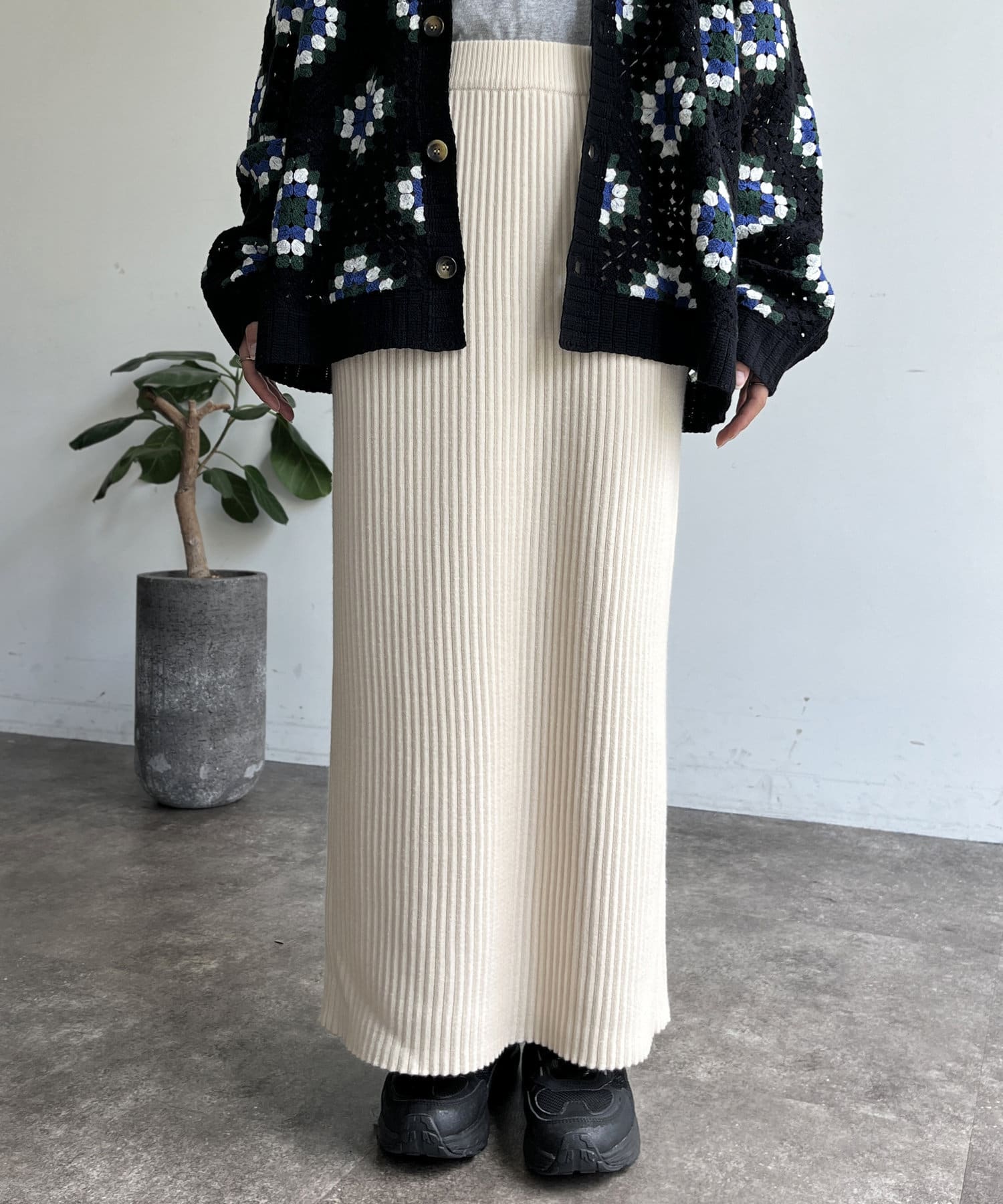 モチっとした太めのリブ編みでスッキリとしたIラインシルエットに