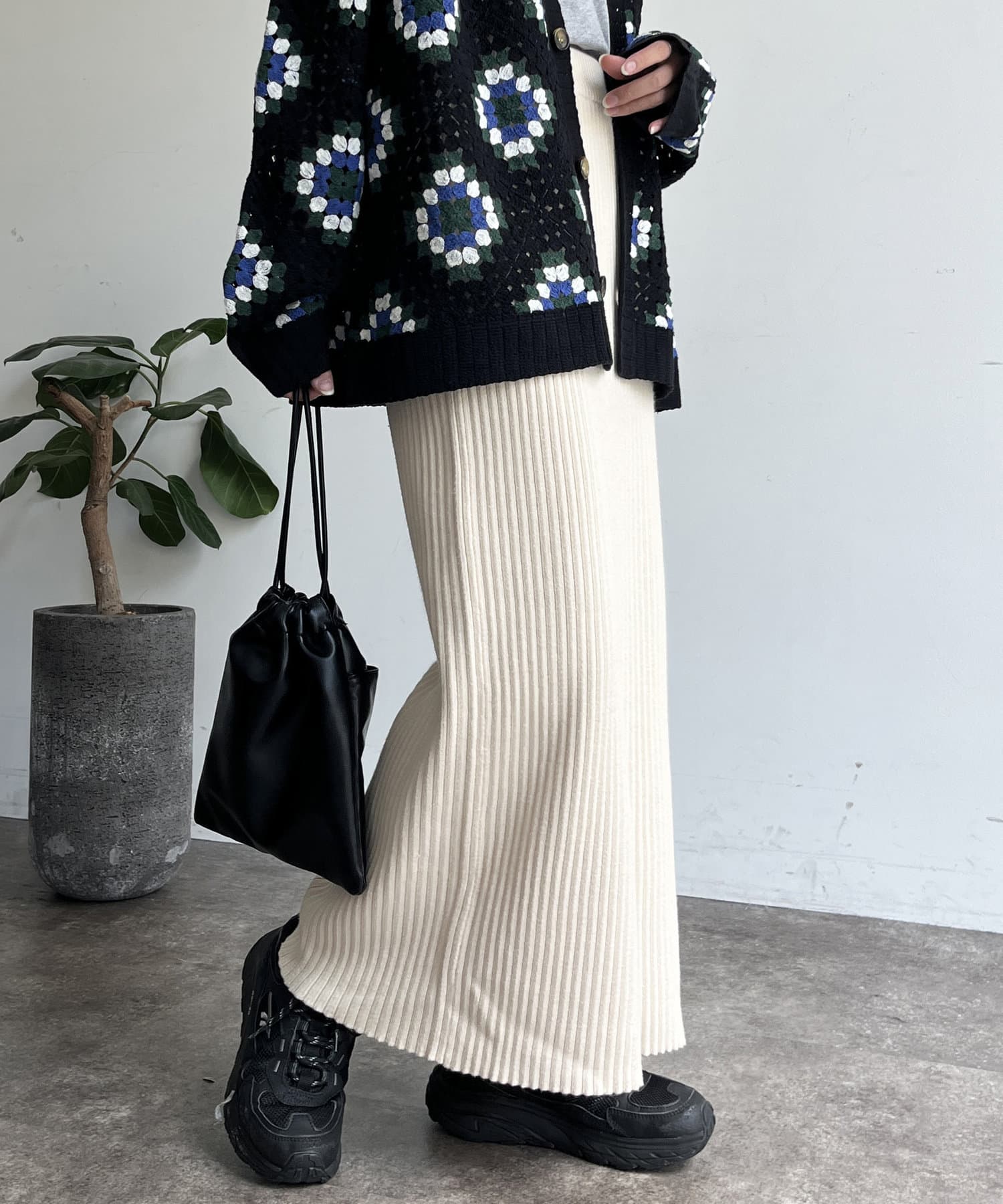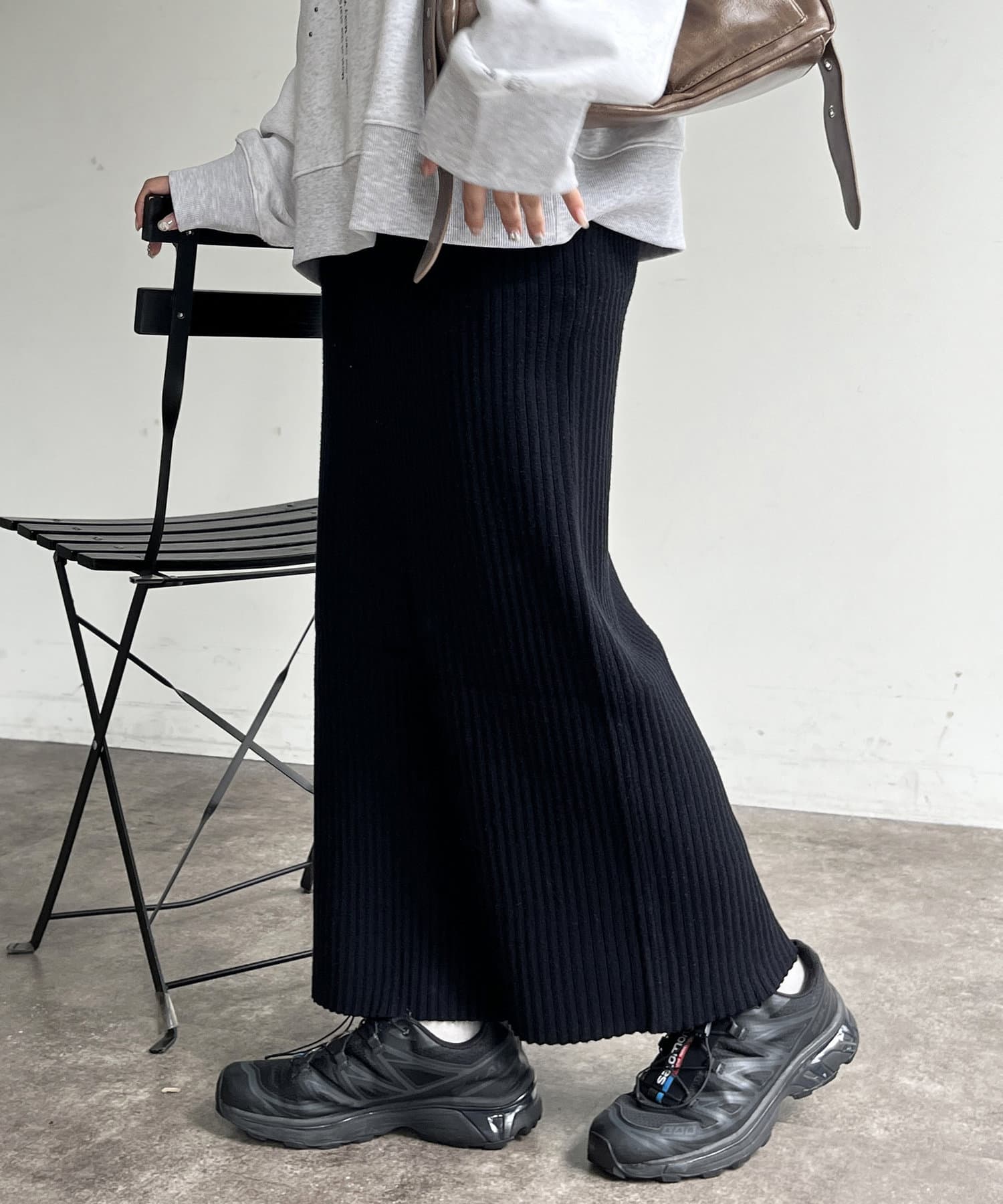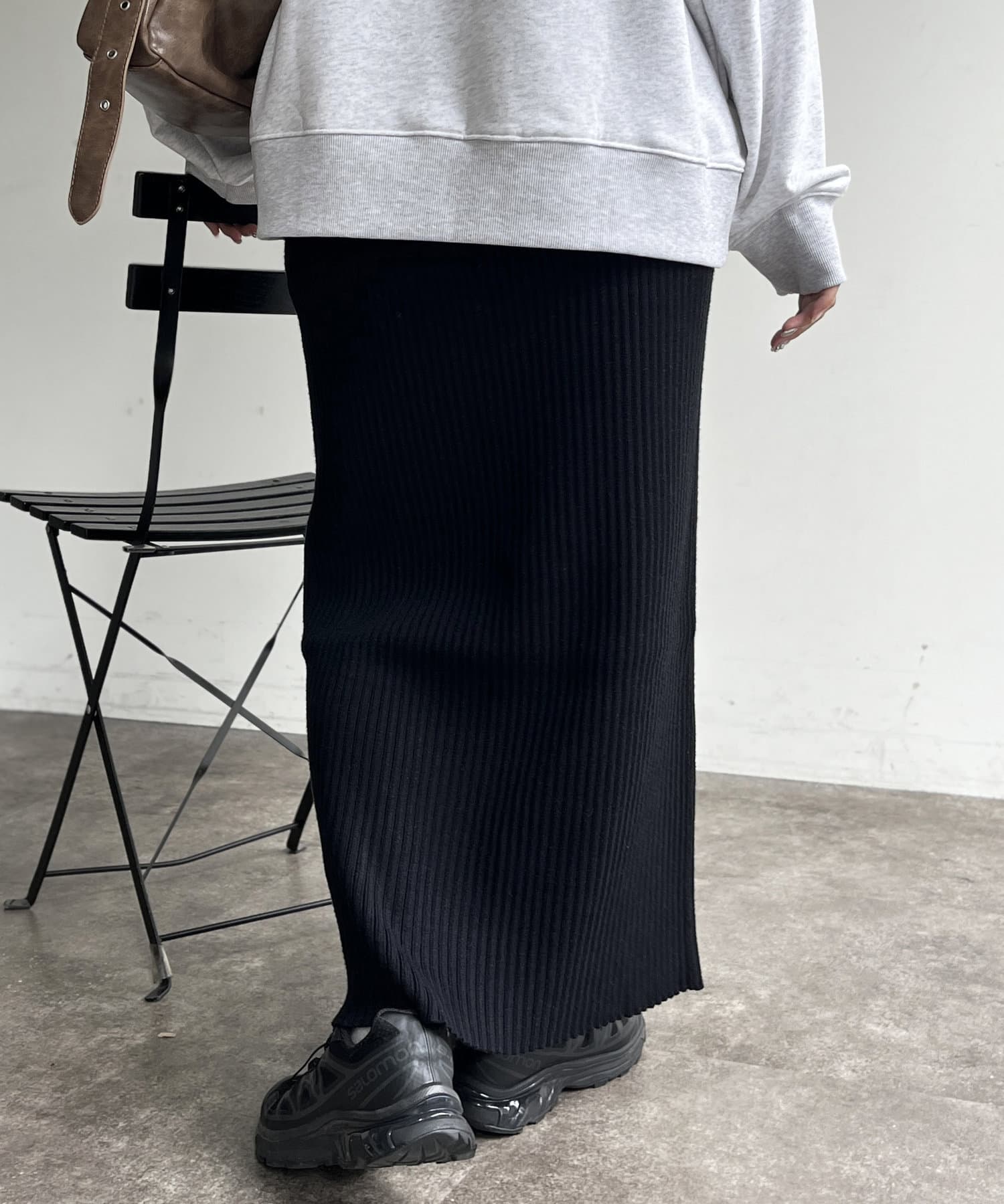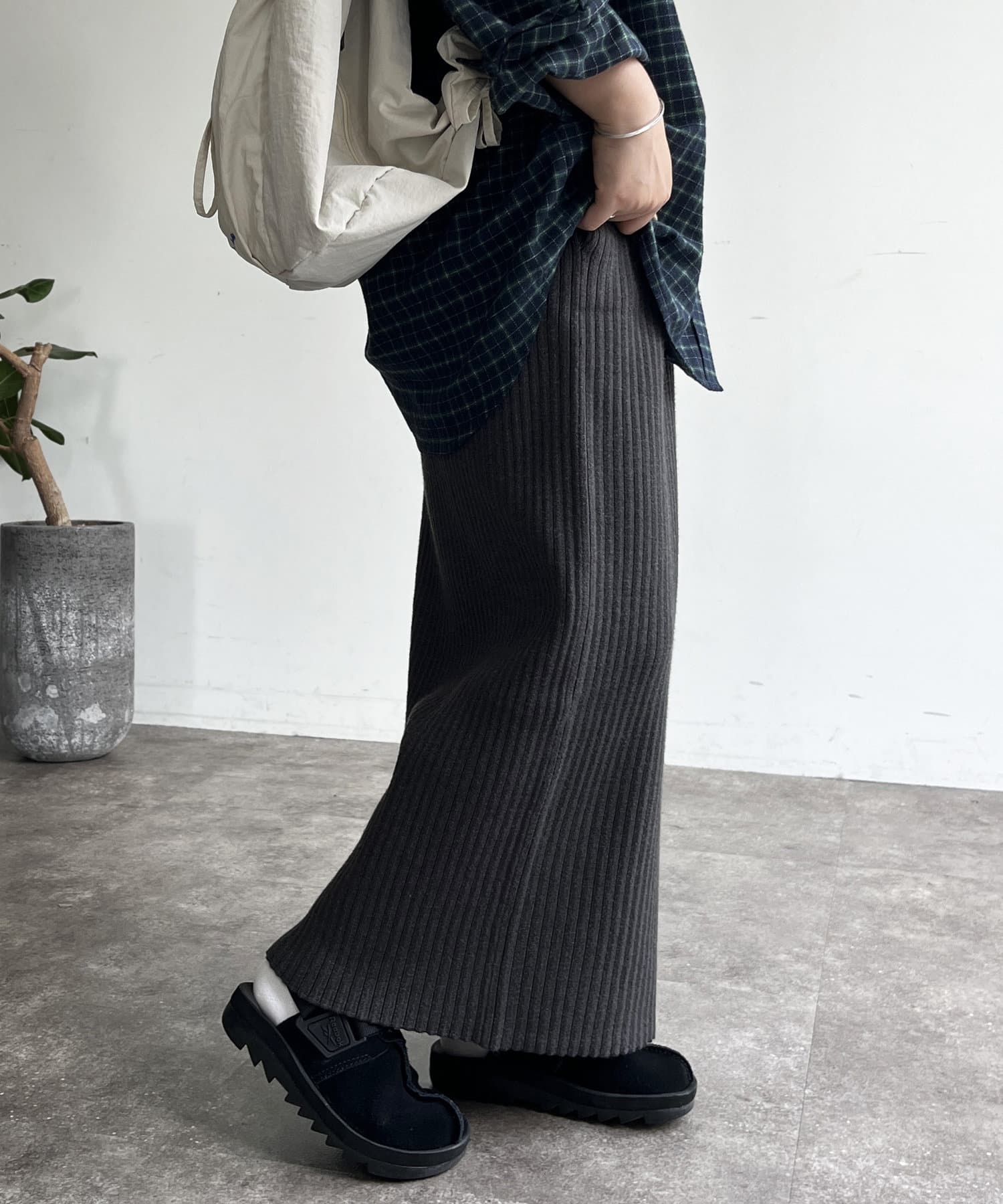 モチっとした太めのリブ編みでスッキリとしたIラインシルエットに