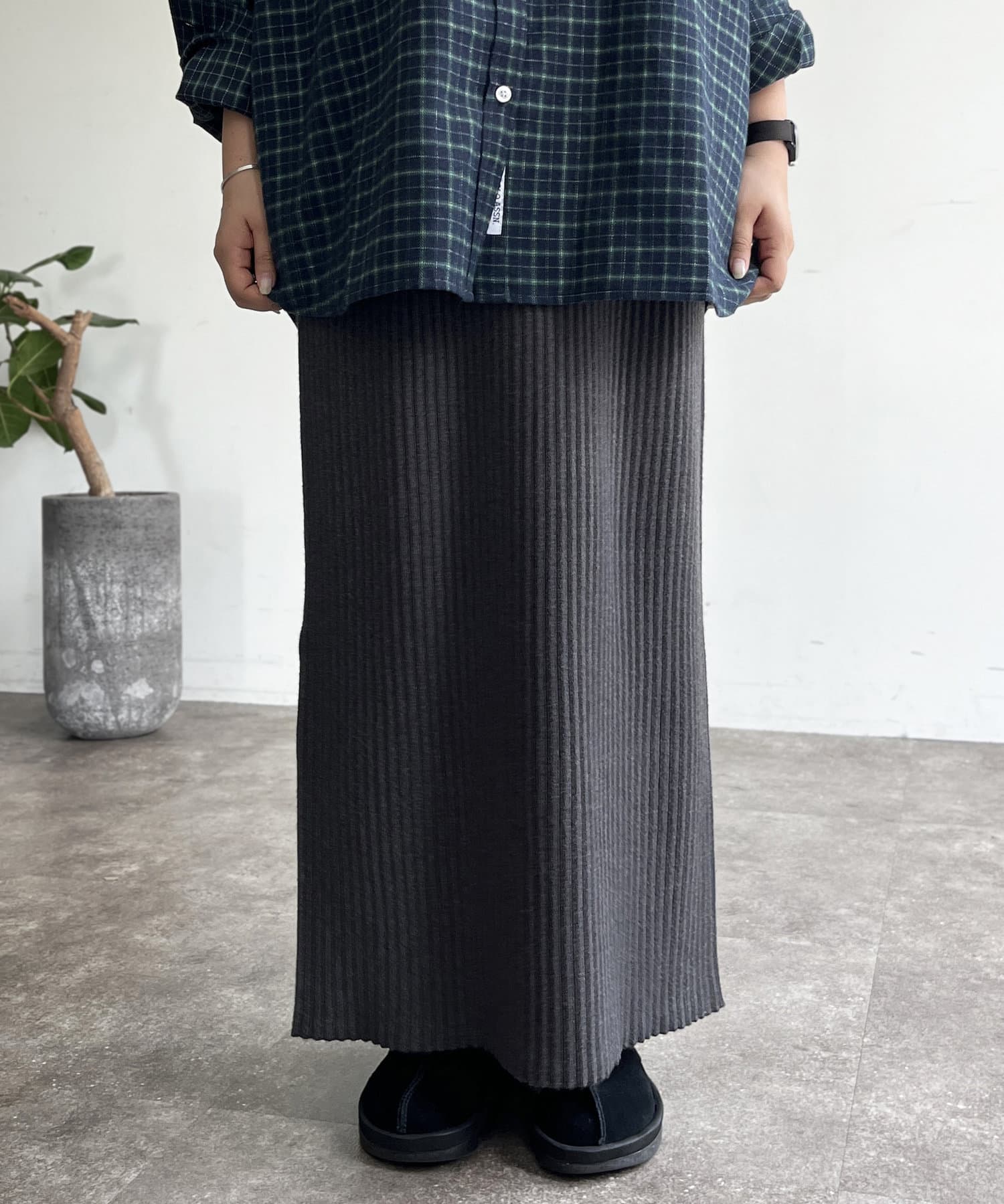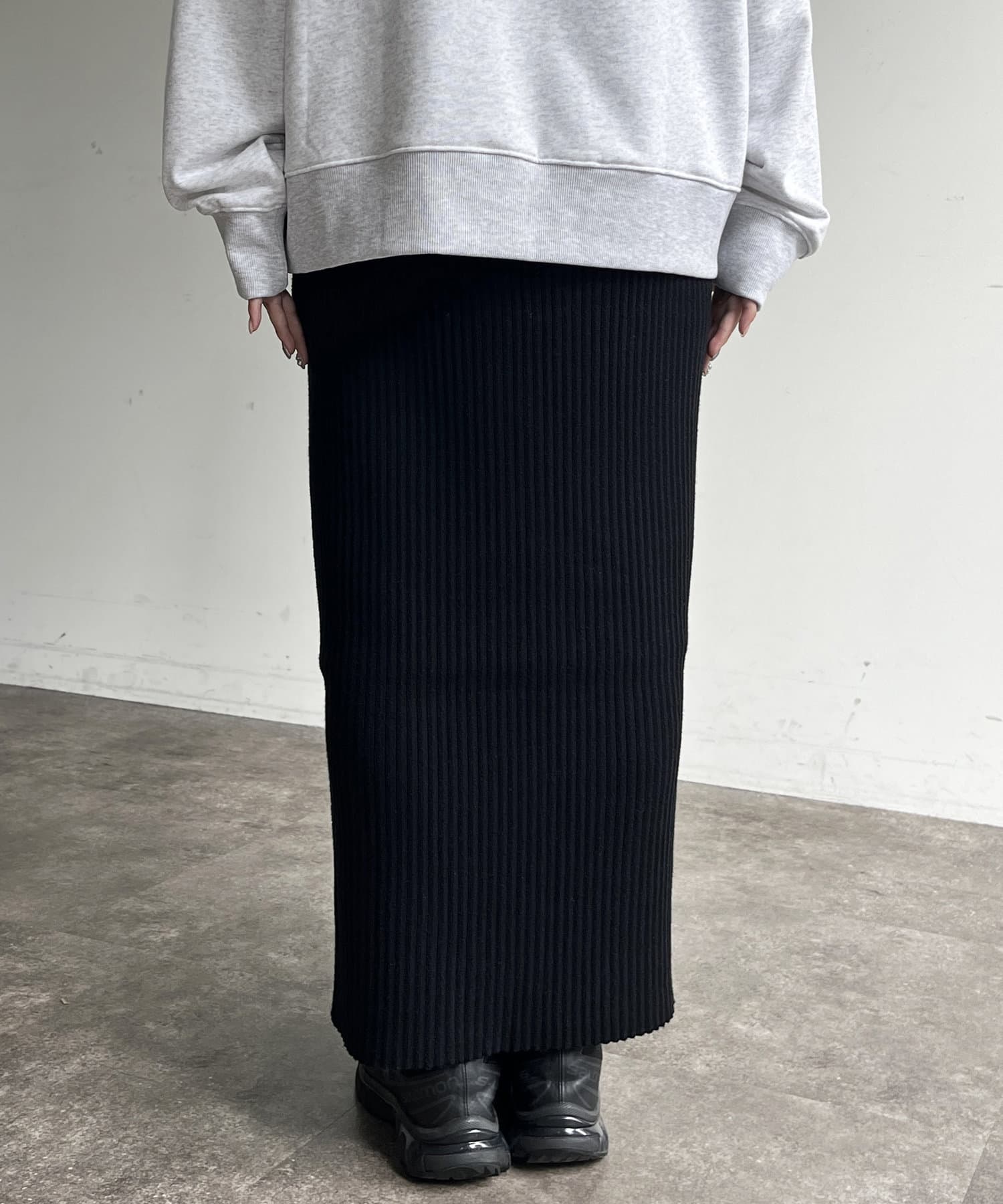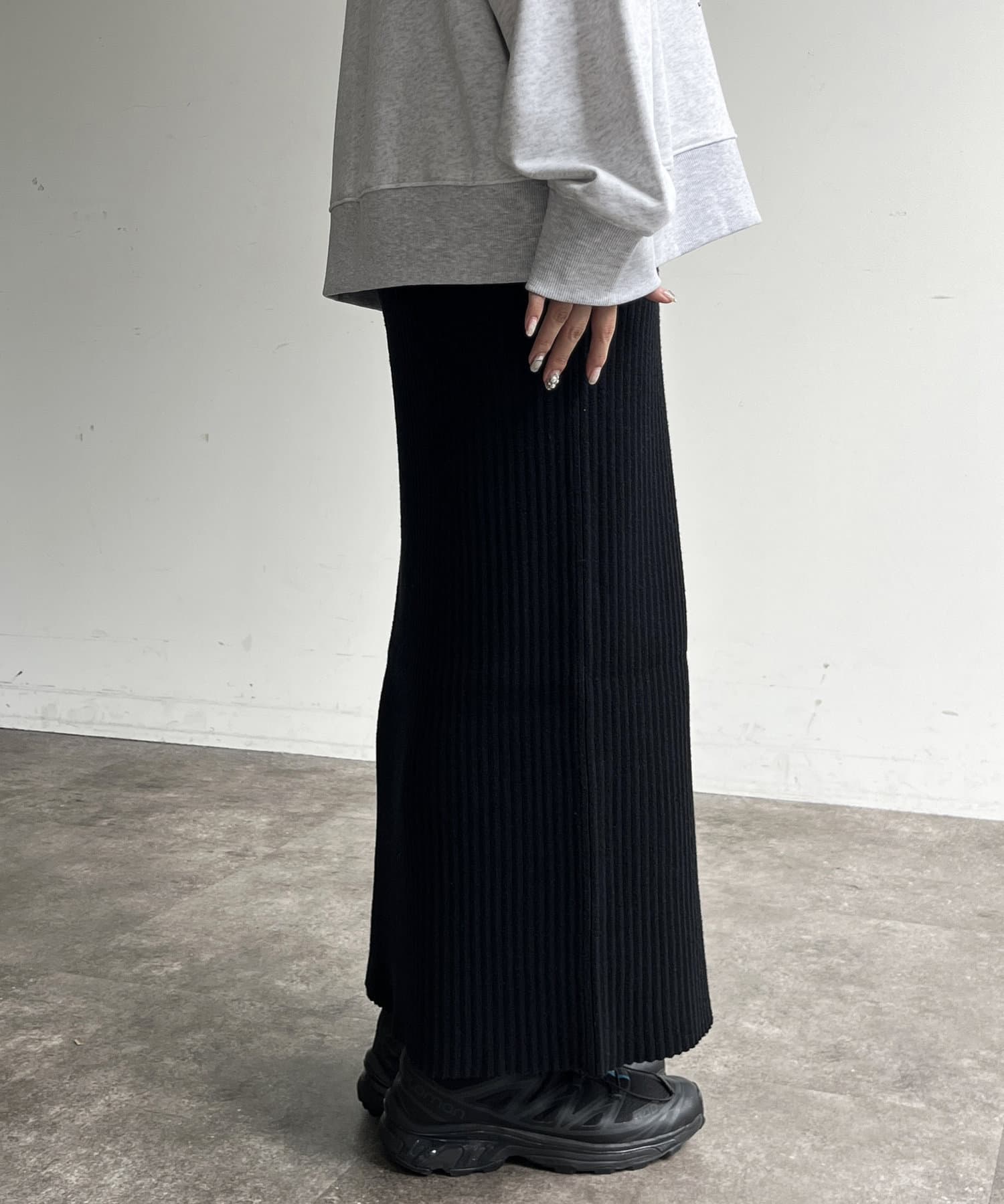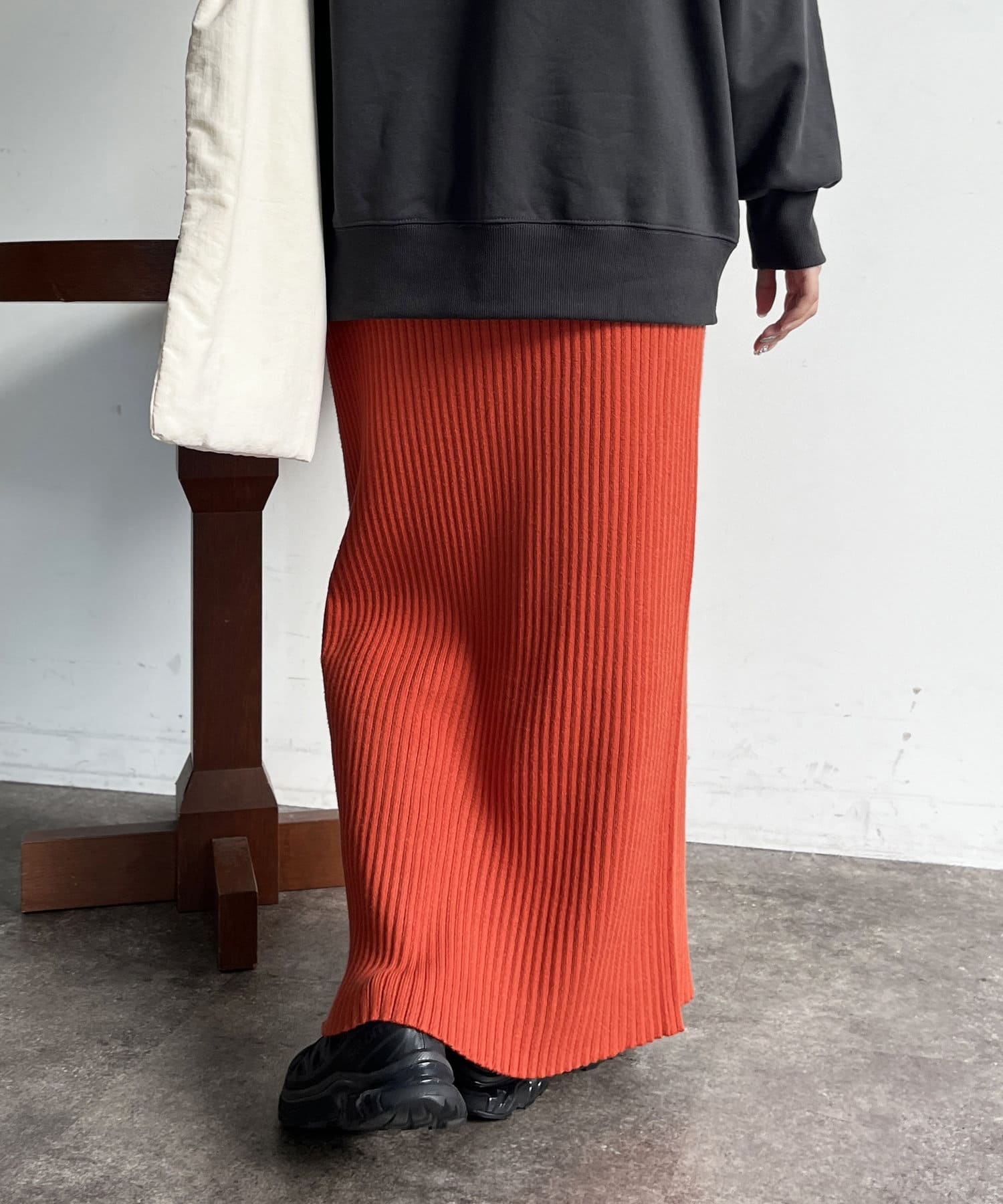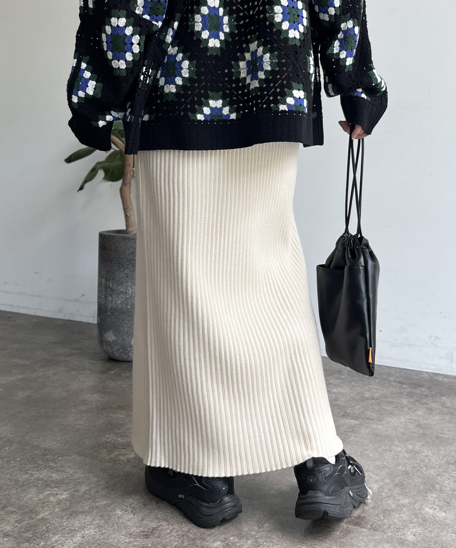 モチっとした太めのリブ編みでスッキリとしたIラインシルエットに