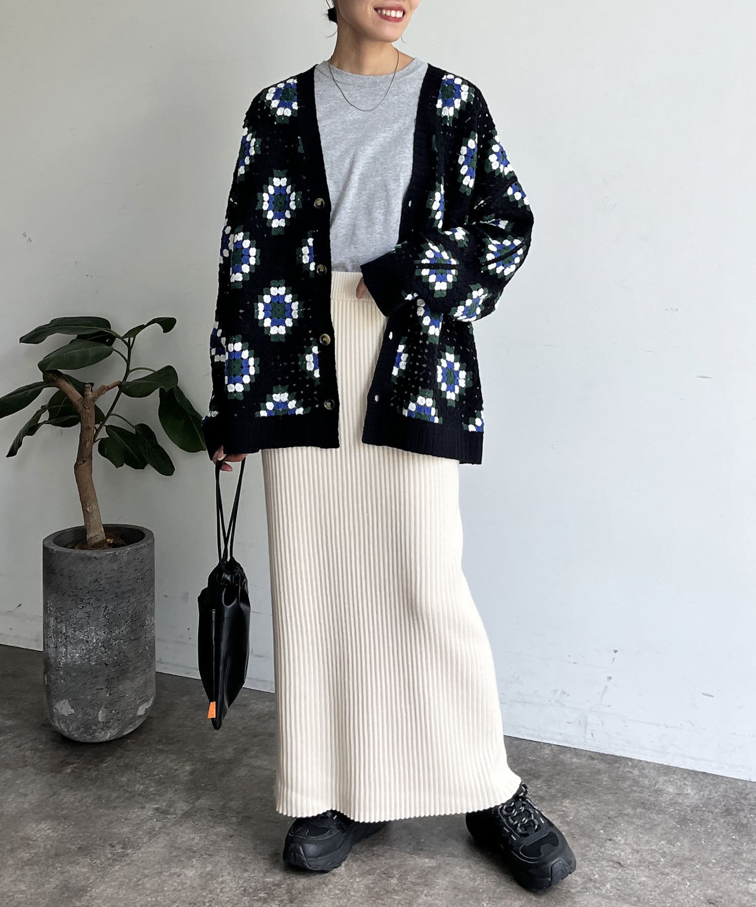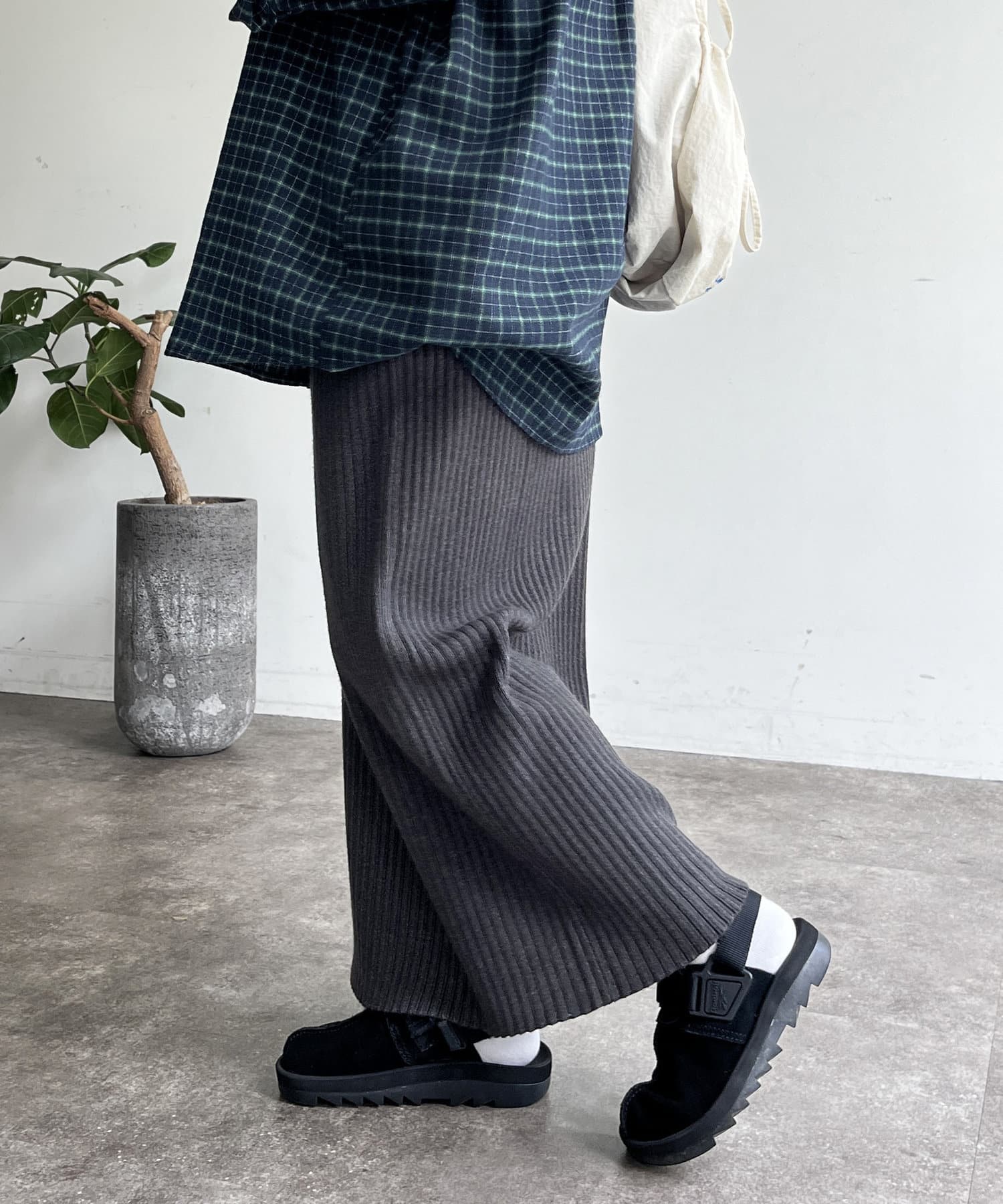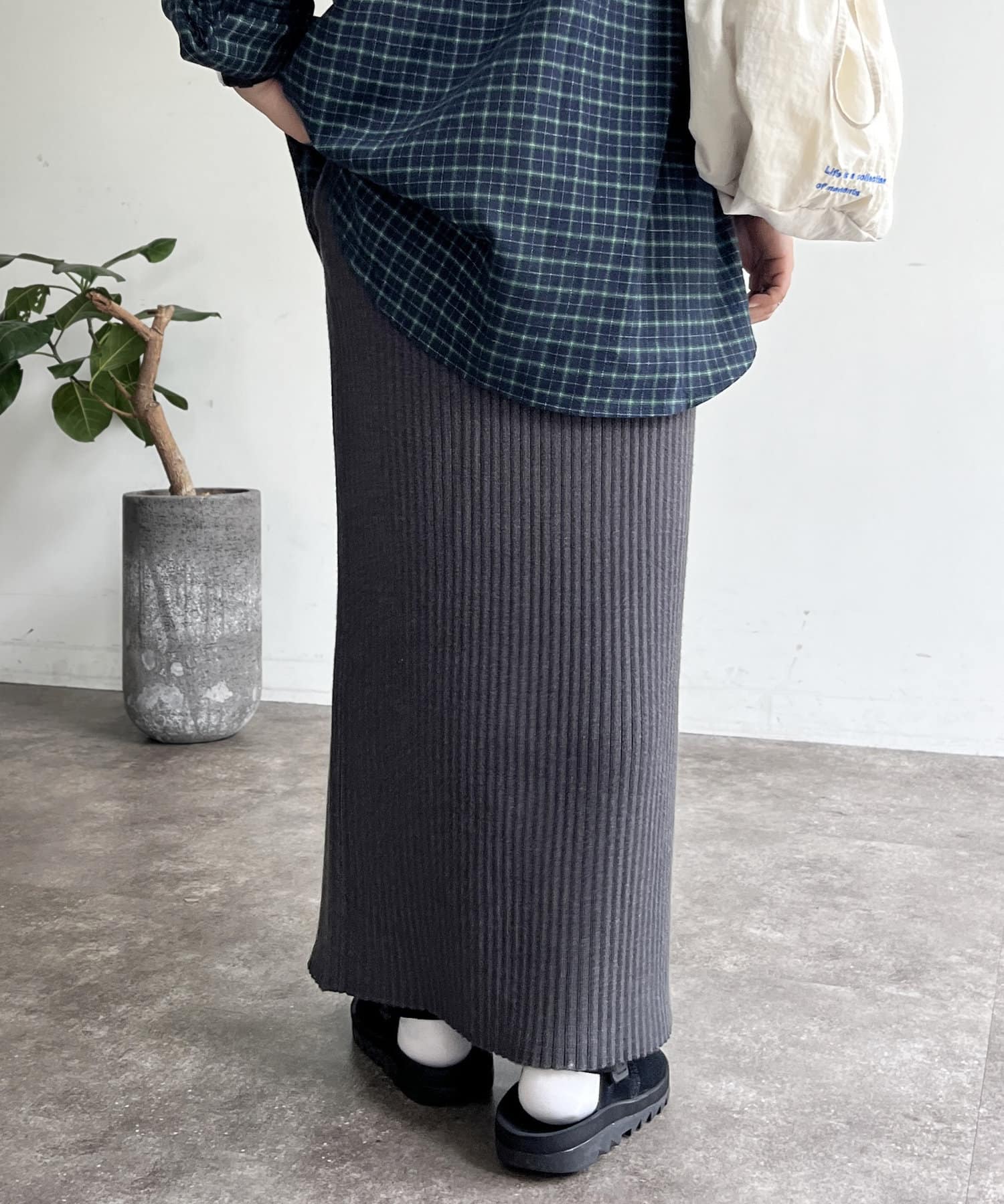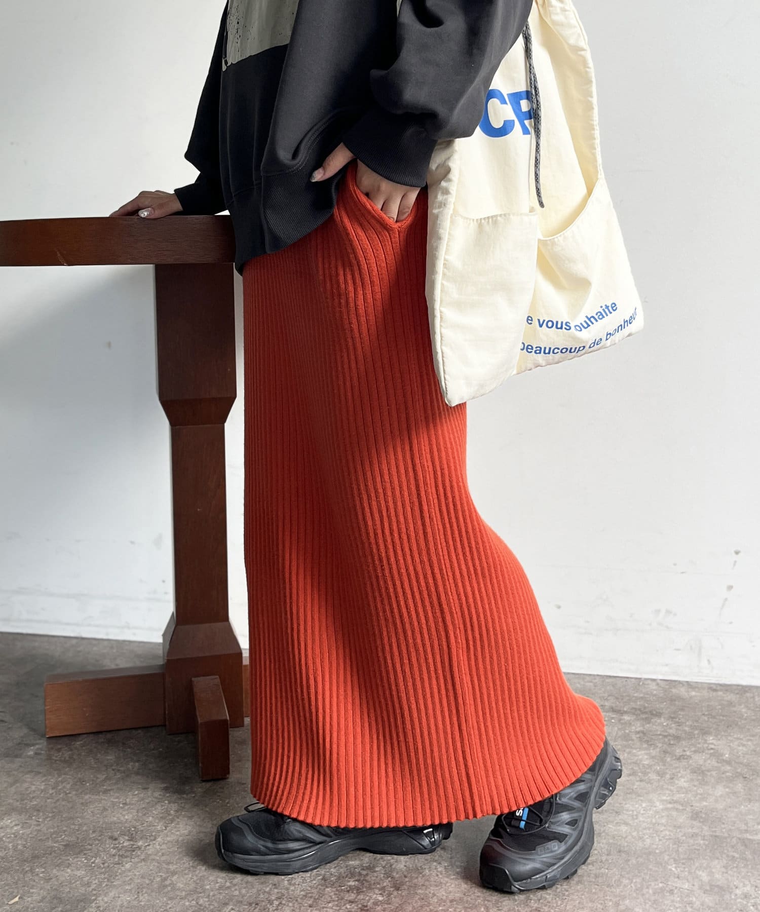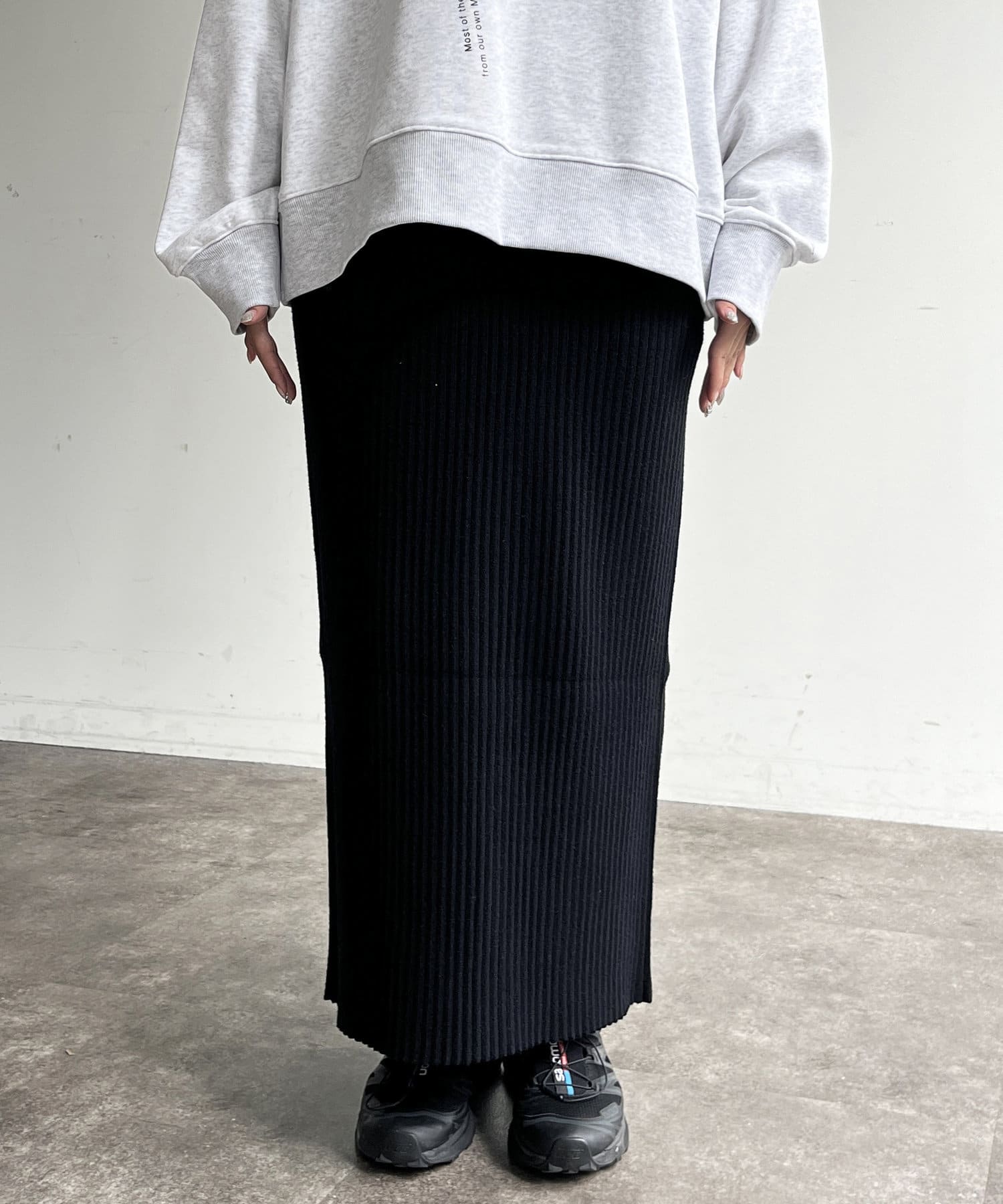 モチっとした太めのリブ編みでスッキリとしたIラインシルエットに