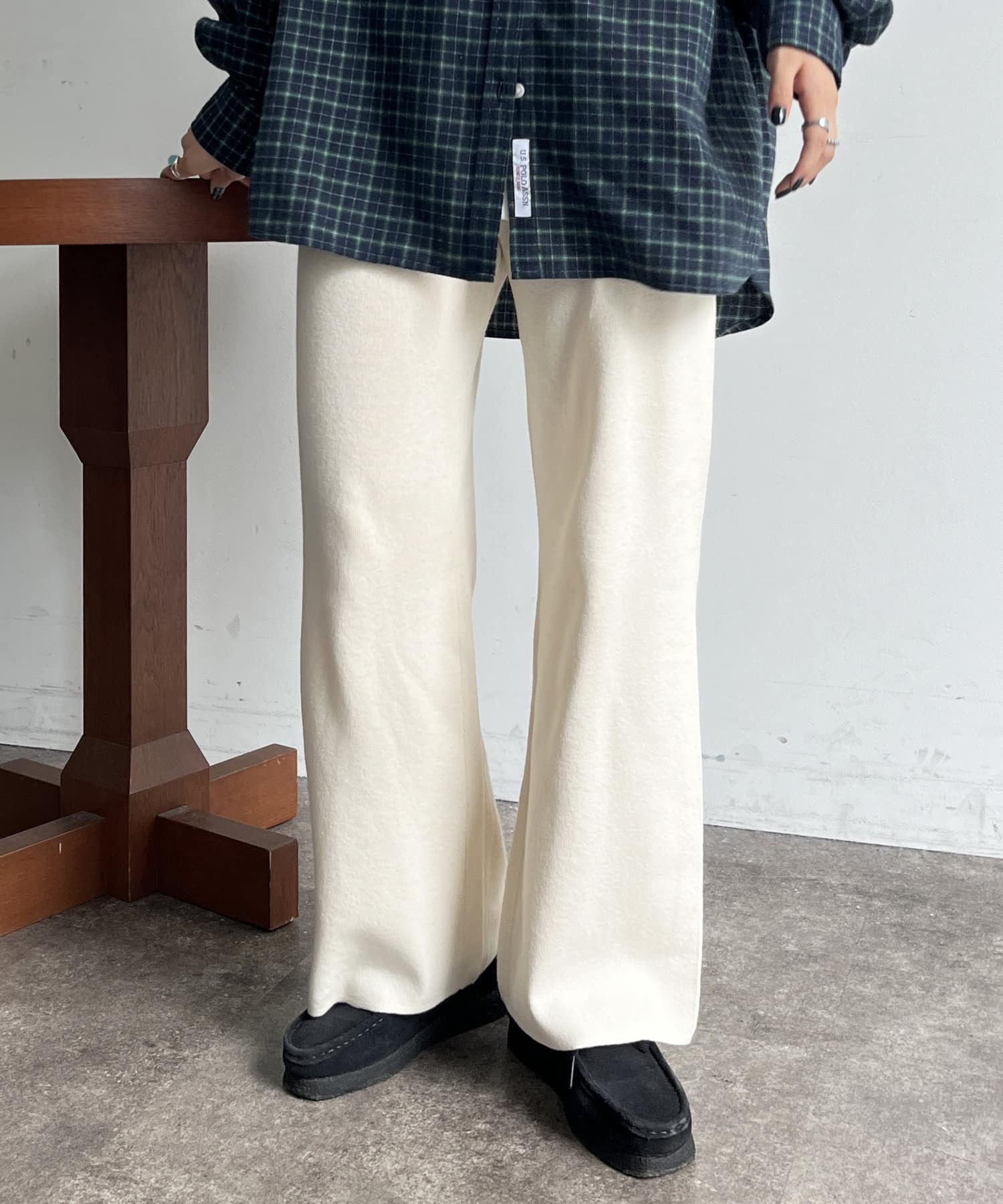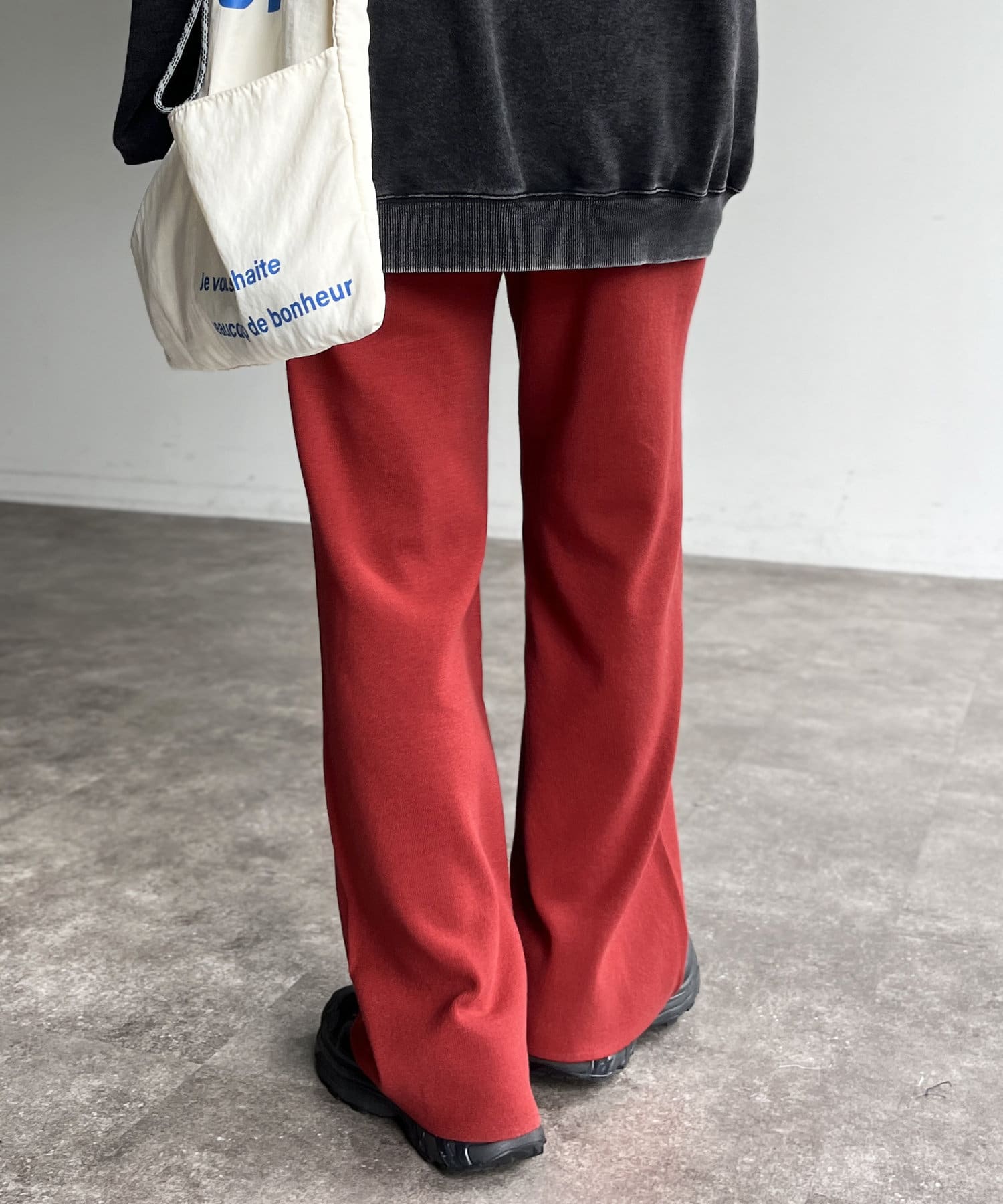 ・ボリューム感のある秋冬コーデになじむ、セミフレアなデザイン