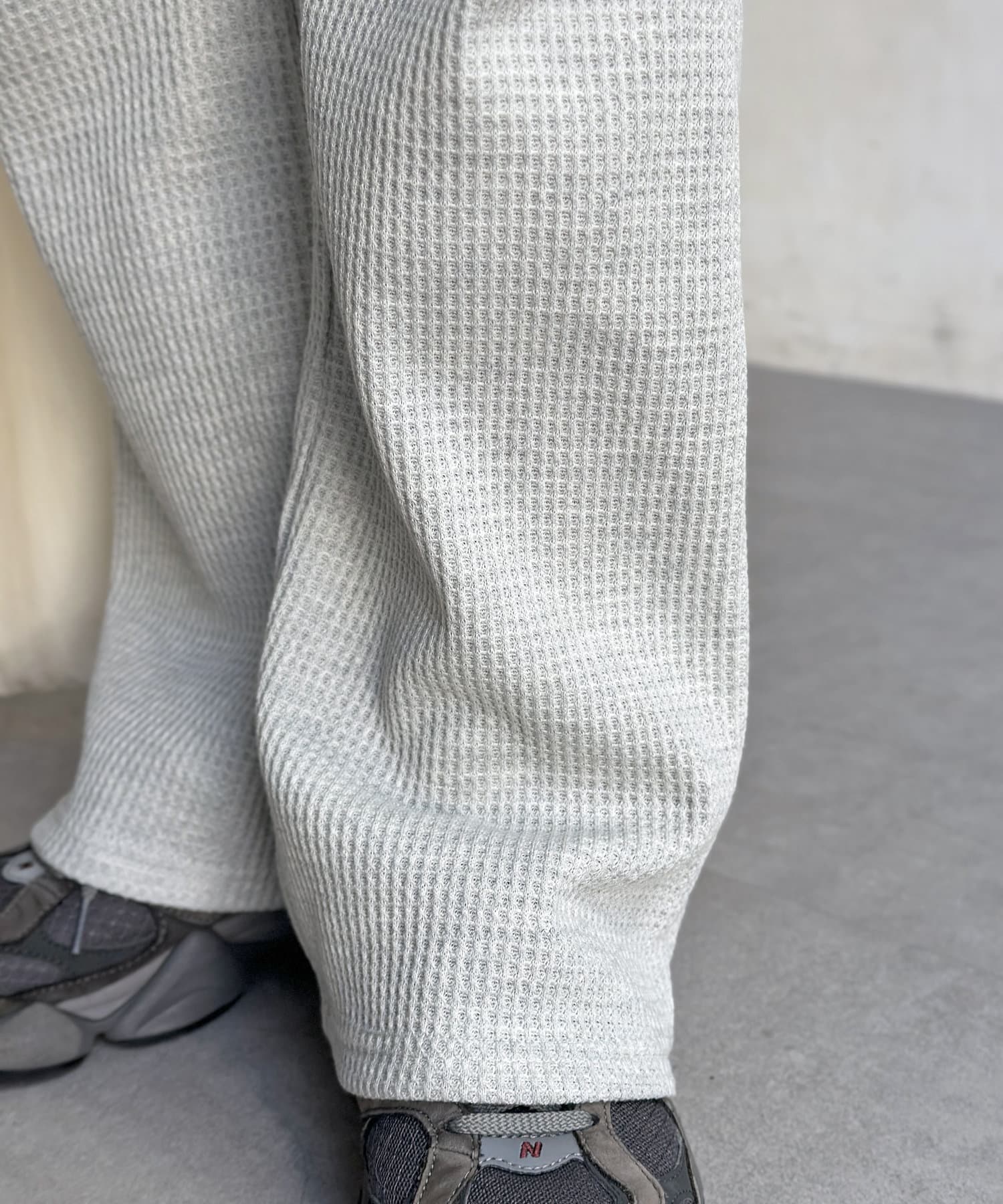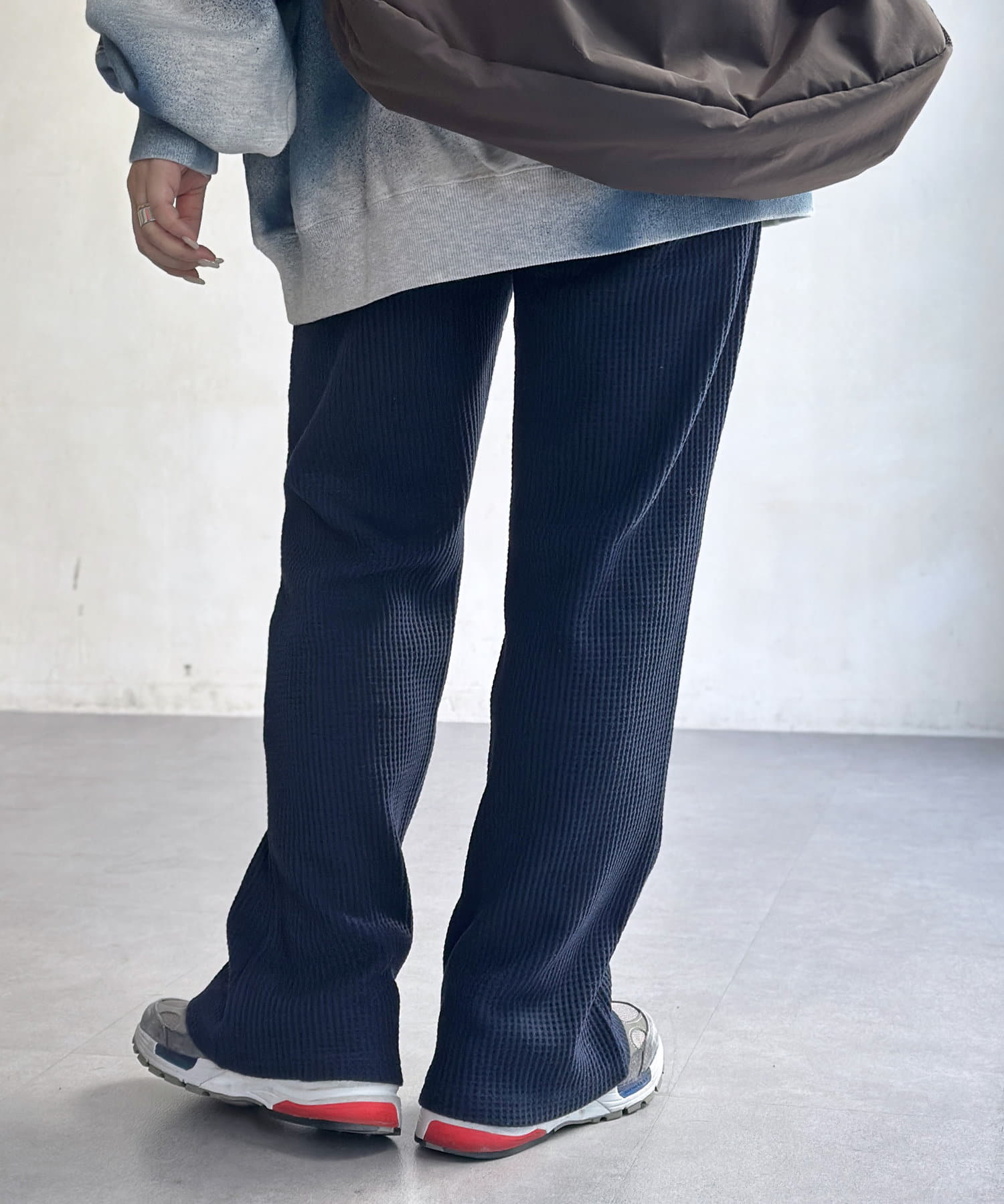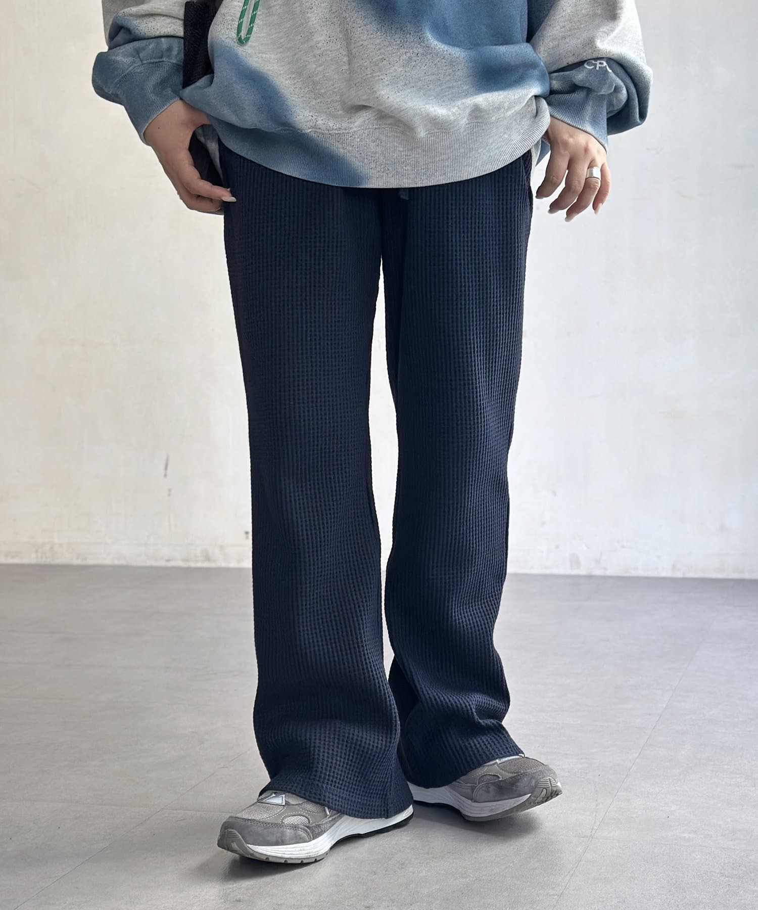 ワッフル素材でリラックスした着心地のイージーパンツ