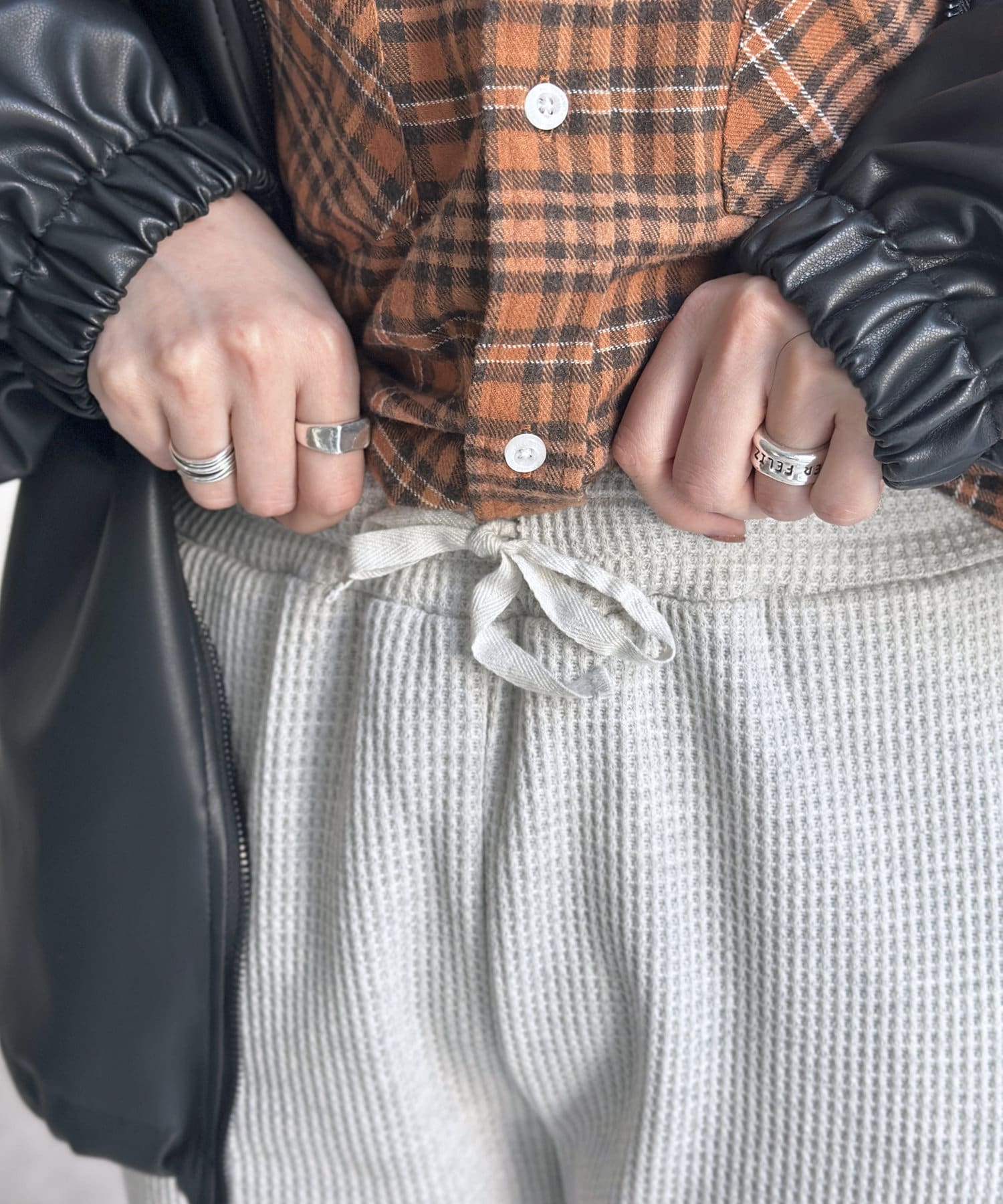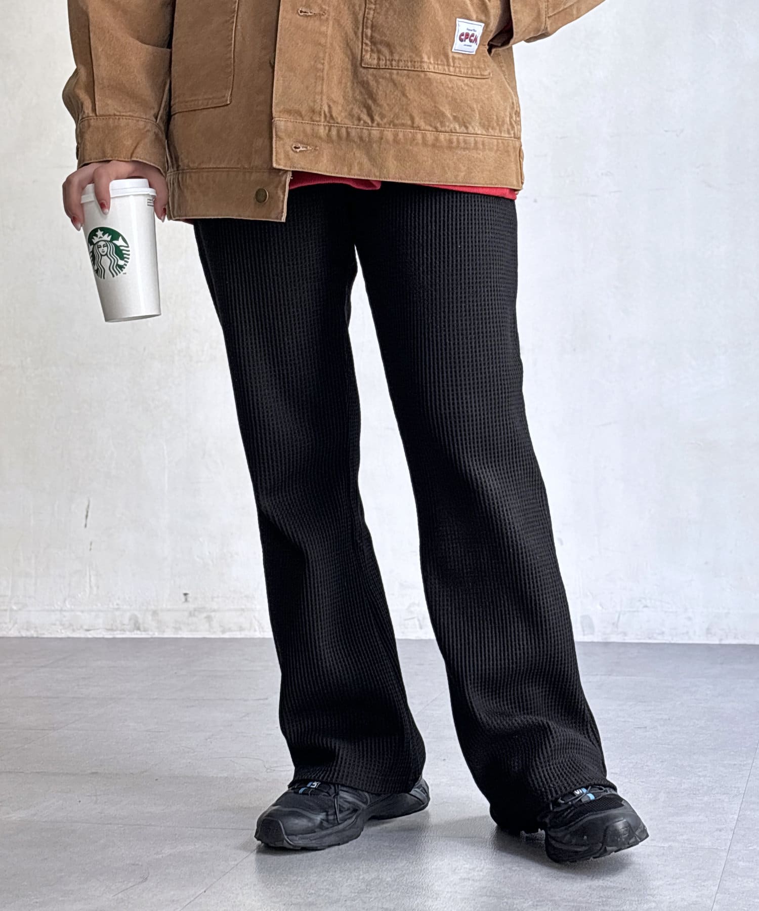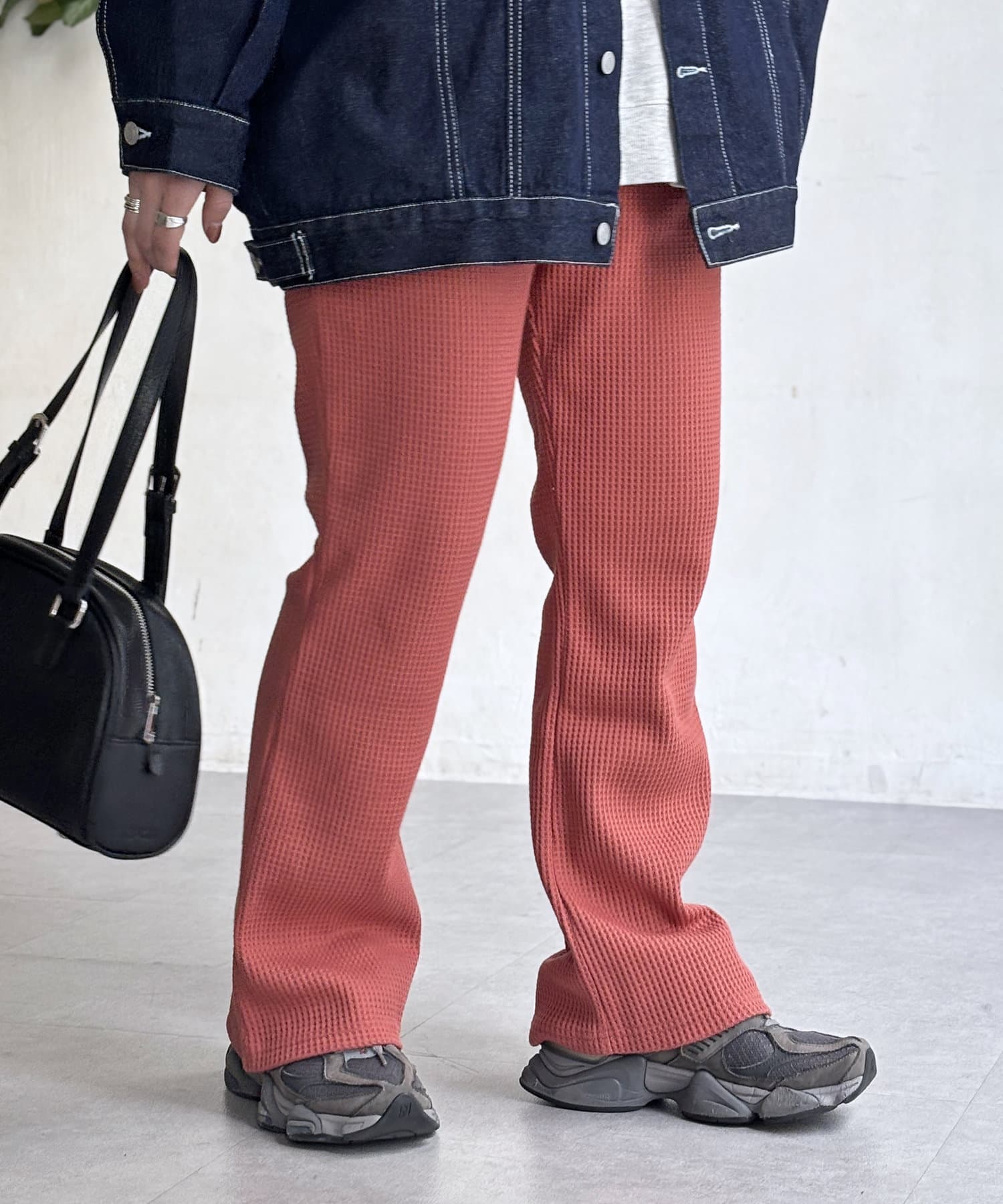 ワッフル素材でリラックスした着心地のイージーパンツ