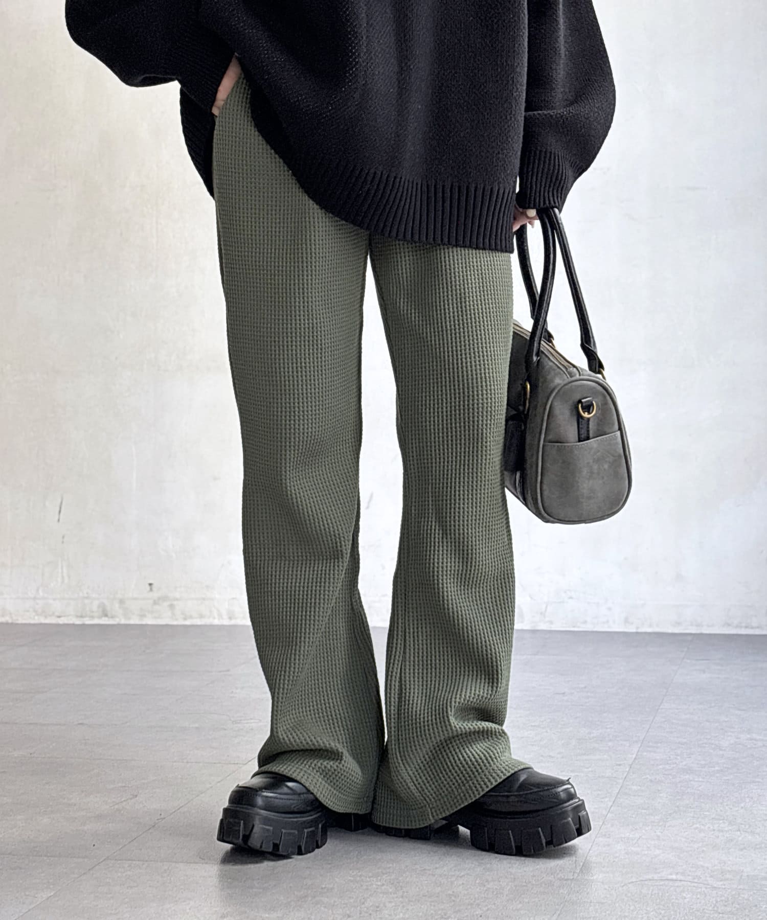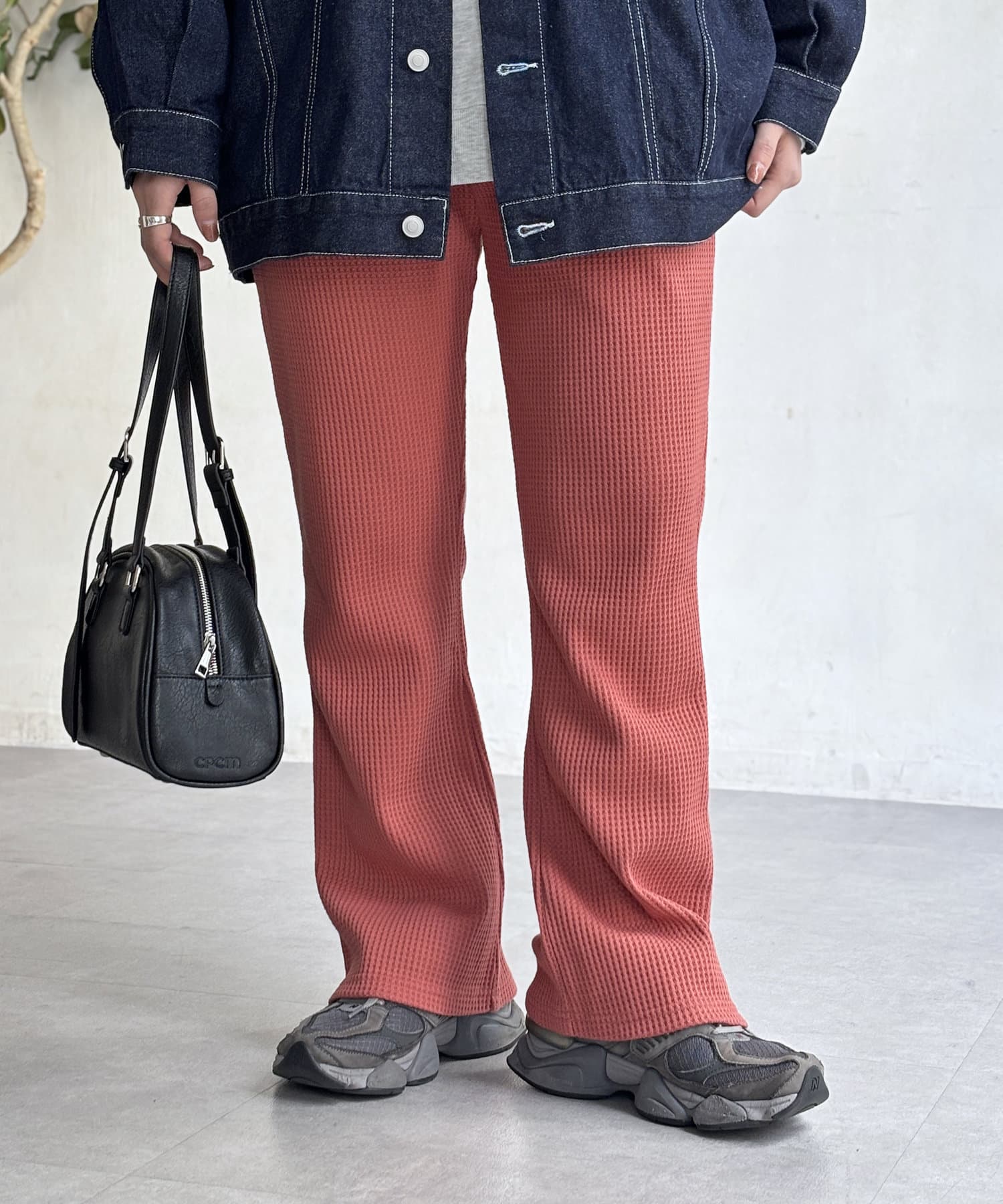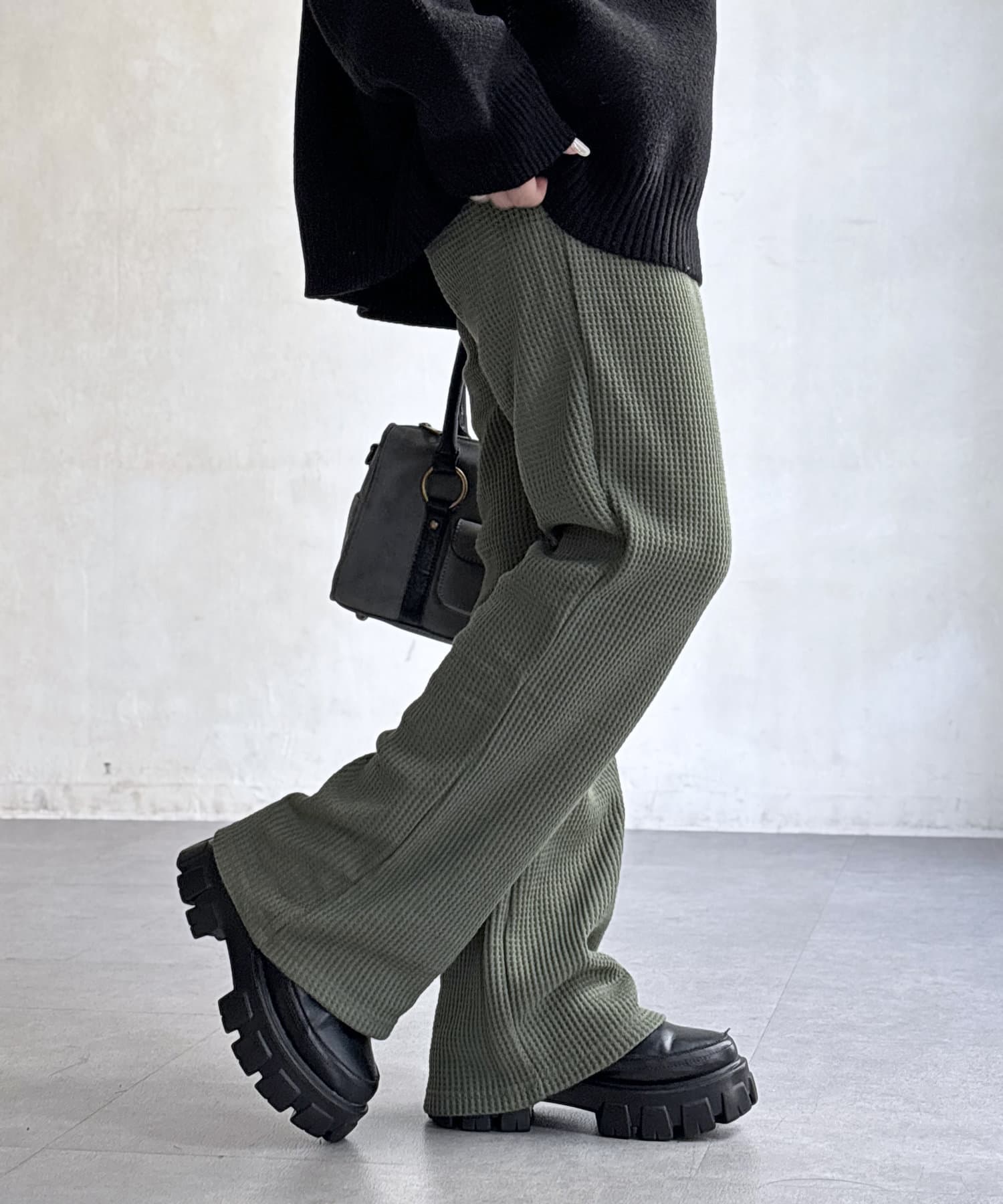 【マイナス3キロ見え!】ワッフルフレアパンツ