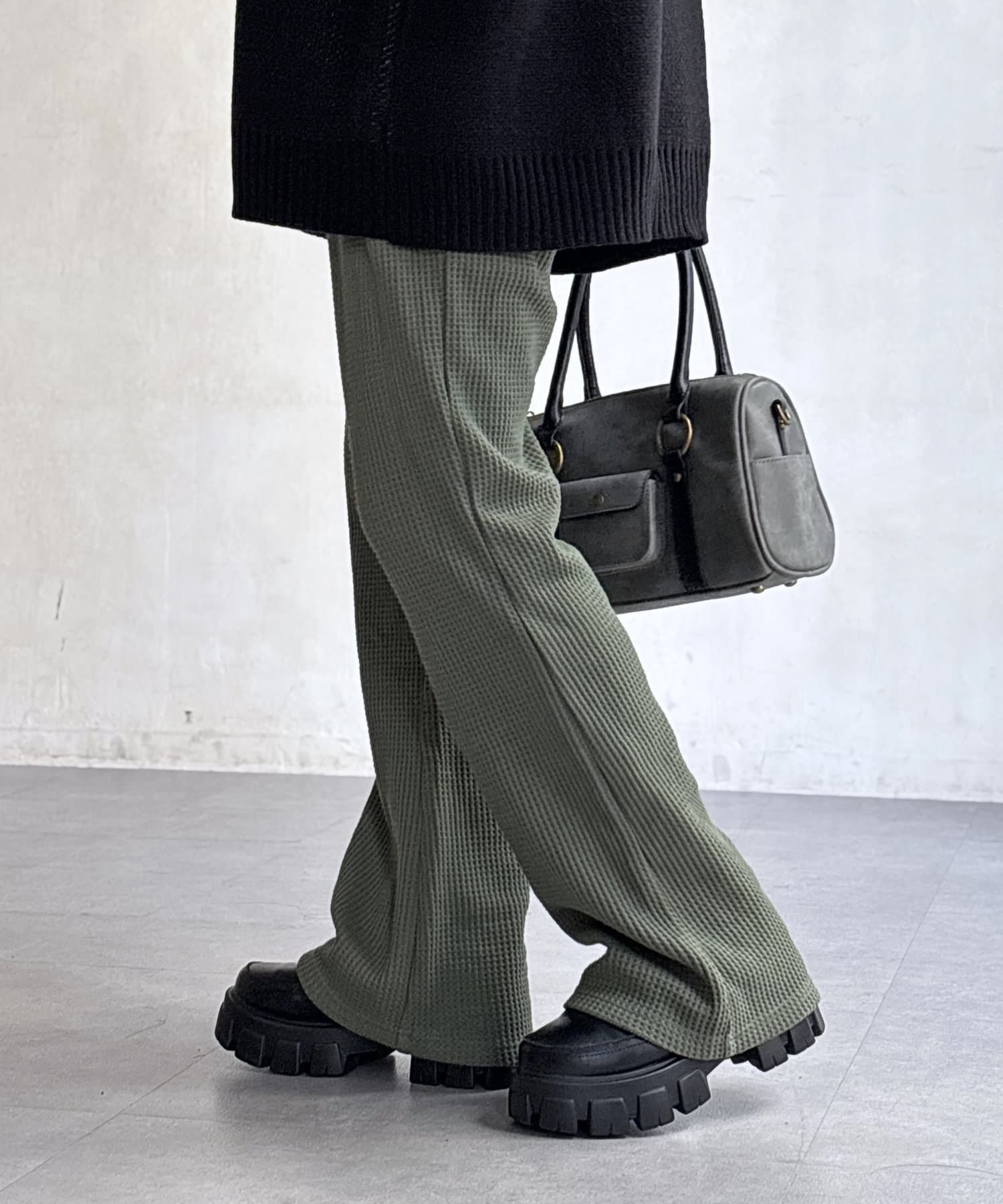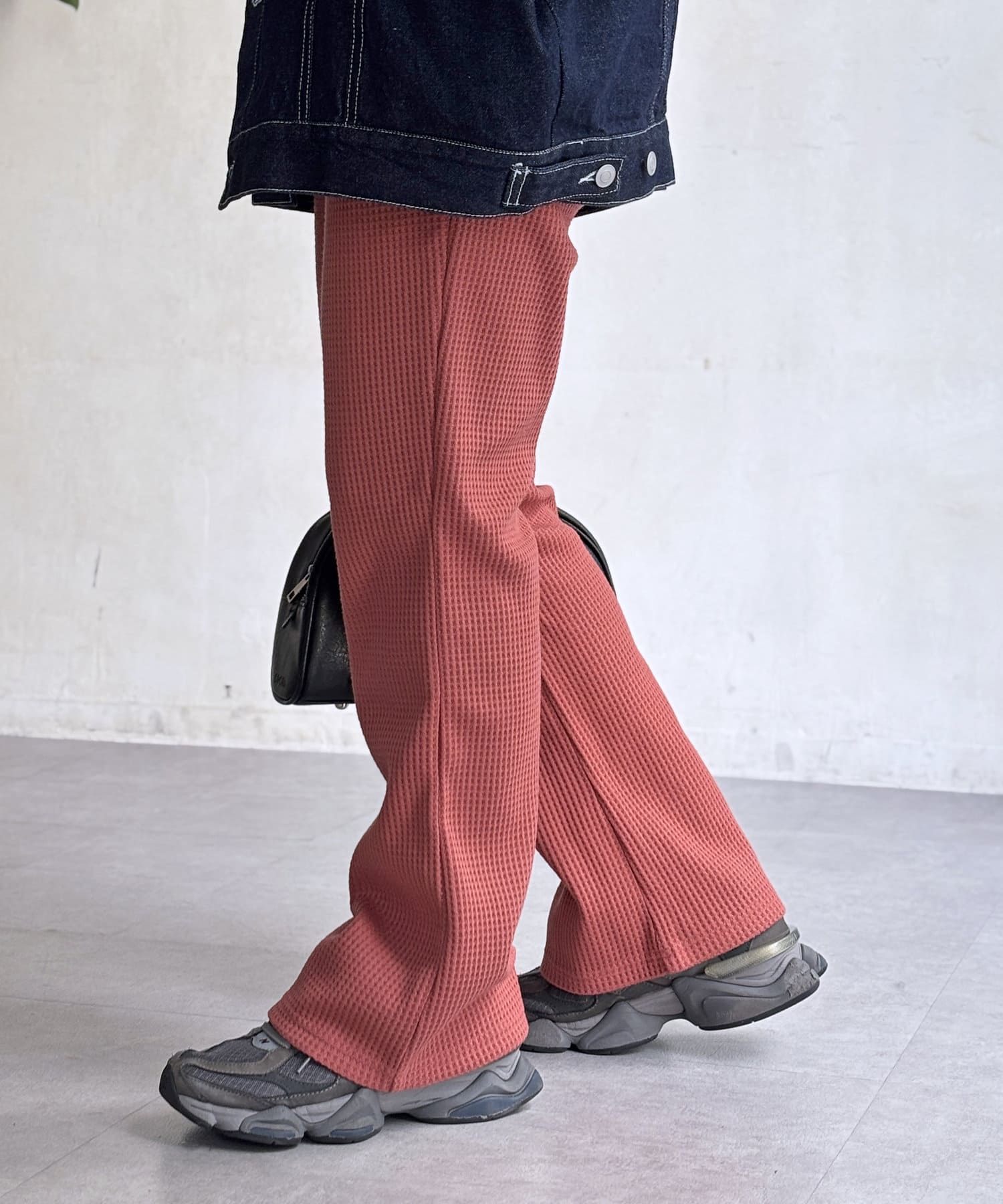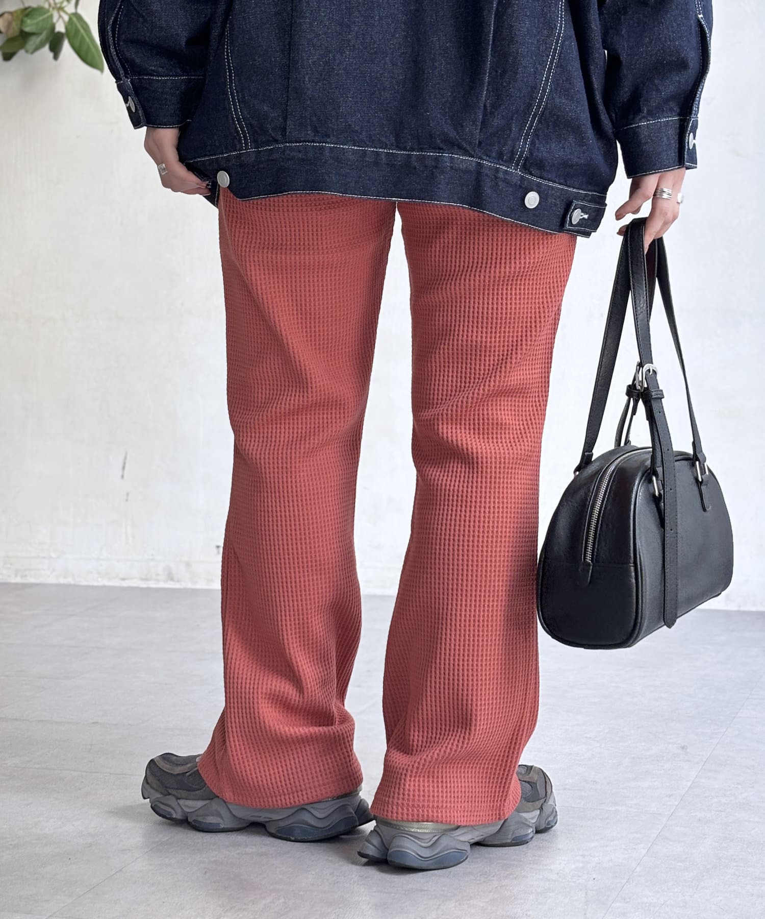 【マイナス3キロ見え!】ワッフルフレアパンツ