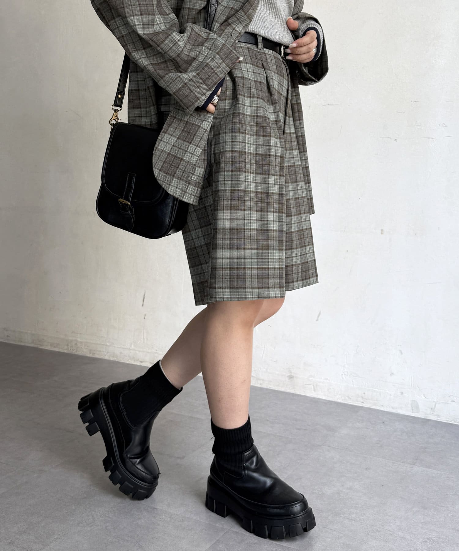 ワンタック×センタープレスで子供っぽくならず大人なハーフパンツコーデに!