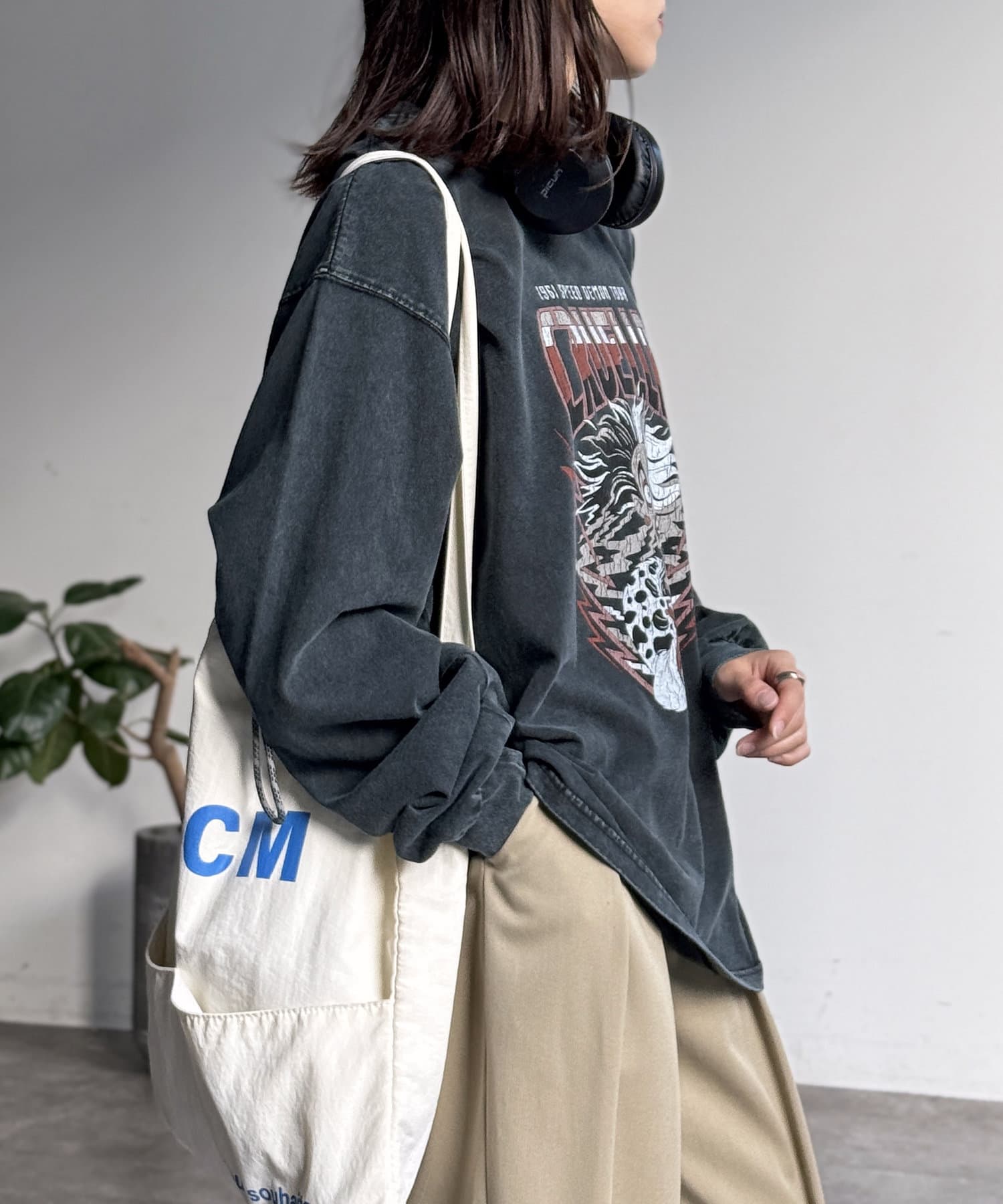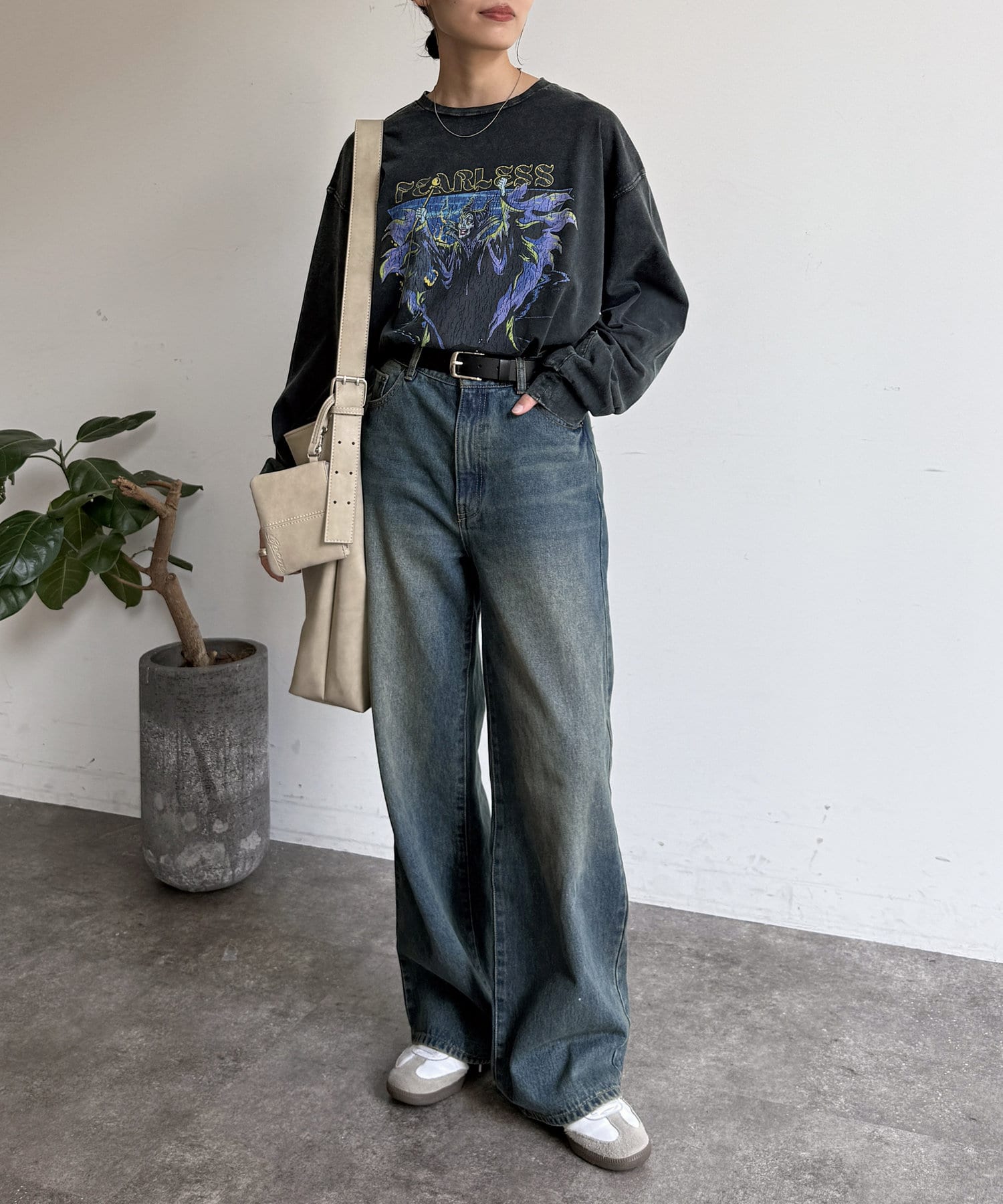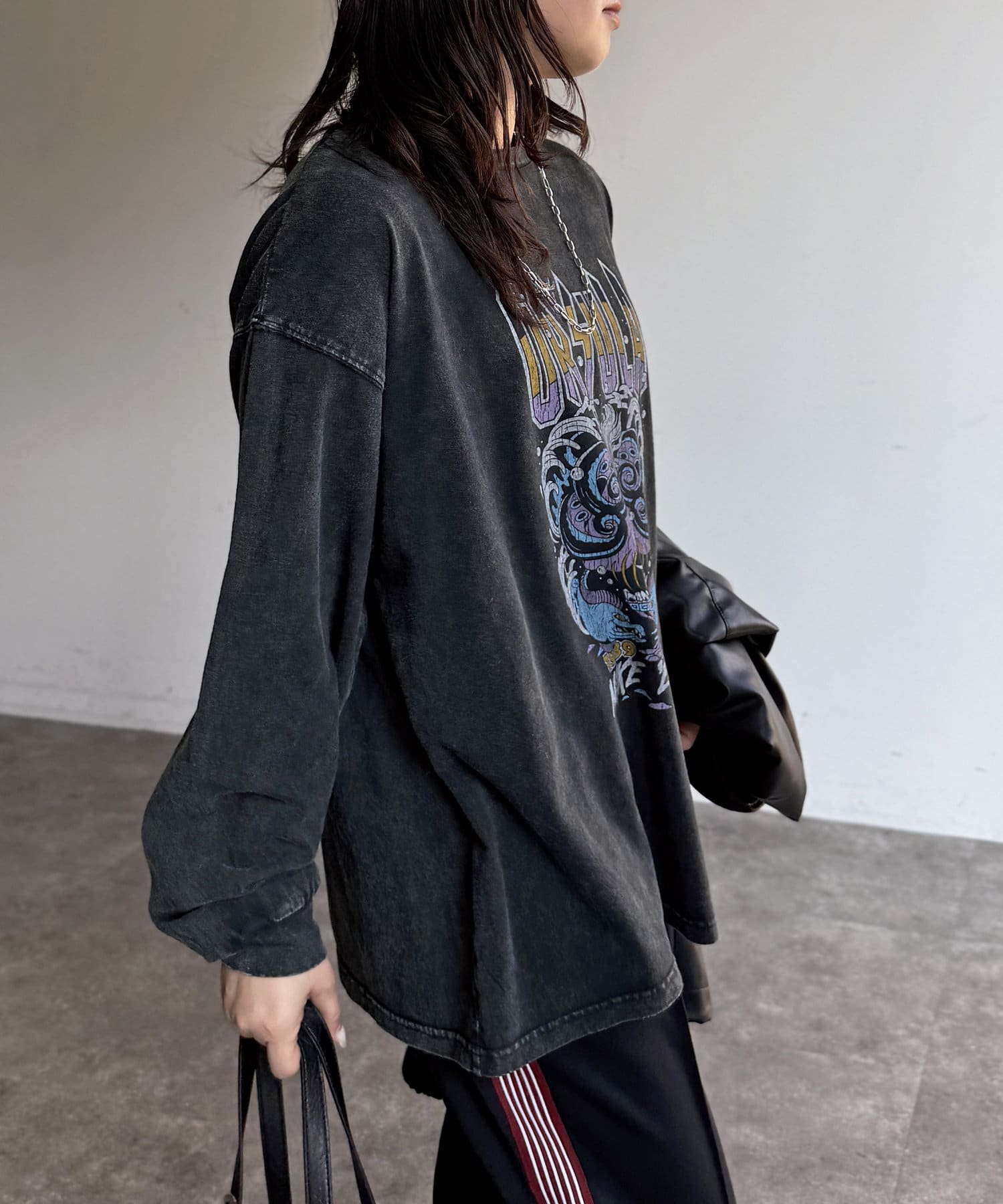 春に着たくて購入しました。ロンTなのでカーディガンに合わせてもゴワゴワしないし、ヴィンテージっぽい加工がかわいいです。