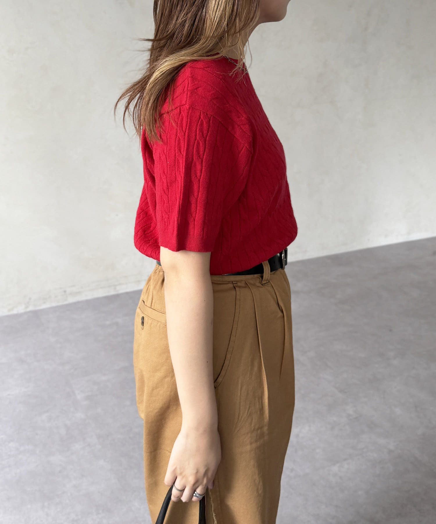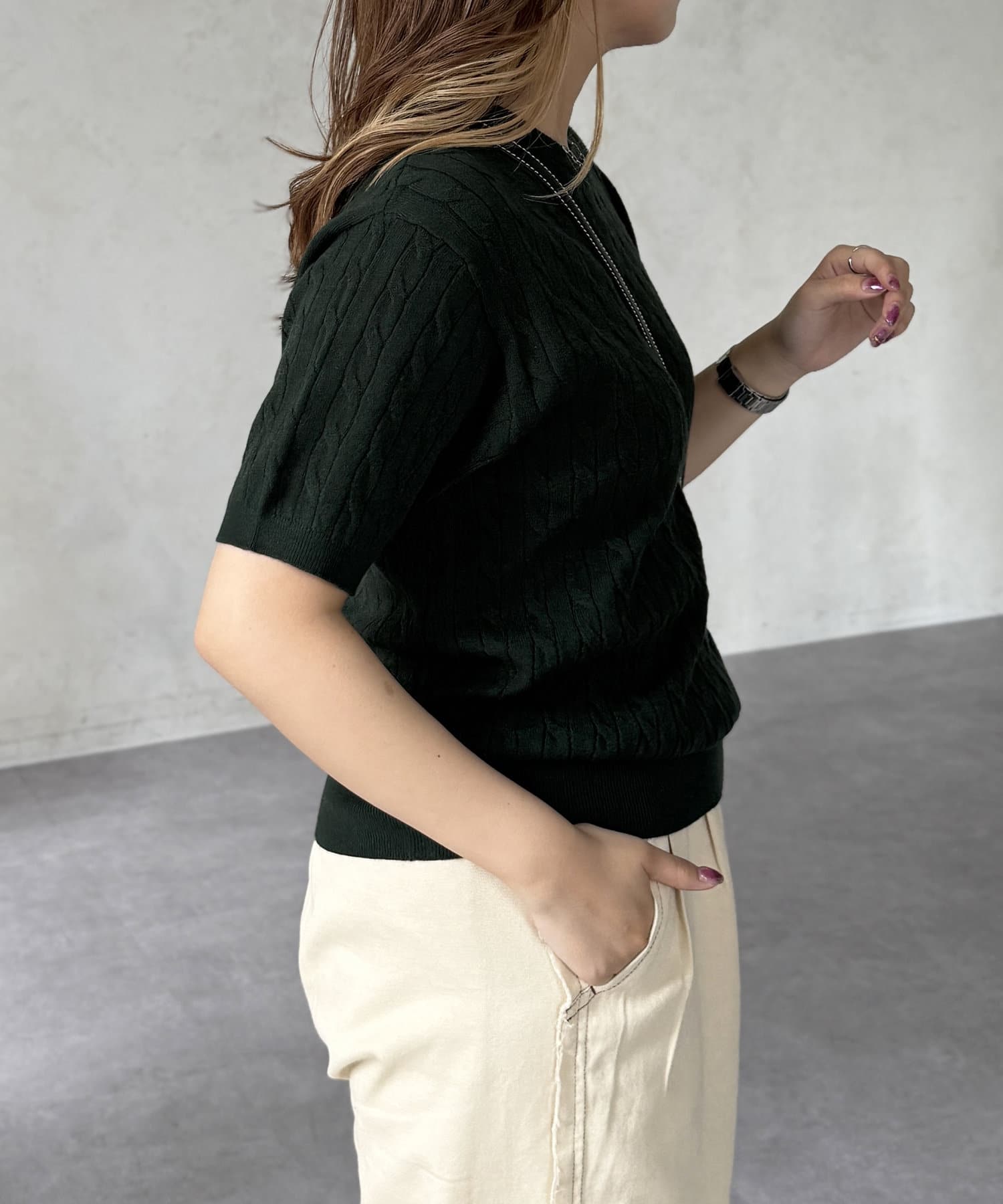 肌触りの良い柔らかなニット素材で仕立てた、半袖ケーブルニットです!