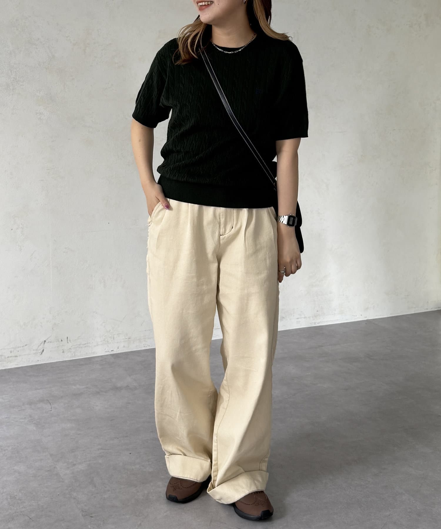 カジュアルなデザインながら、上品なケーブル編みとコンパクトな丈感が、大人っぽい着こなしを叶えてくれる一枚です◎