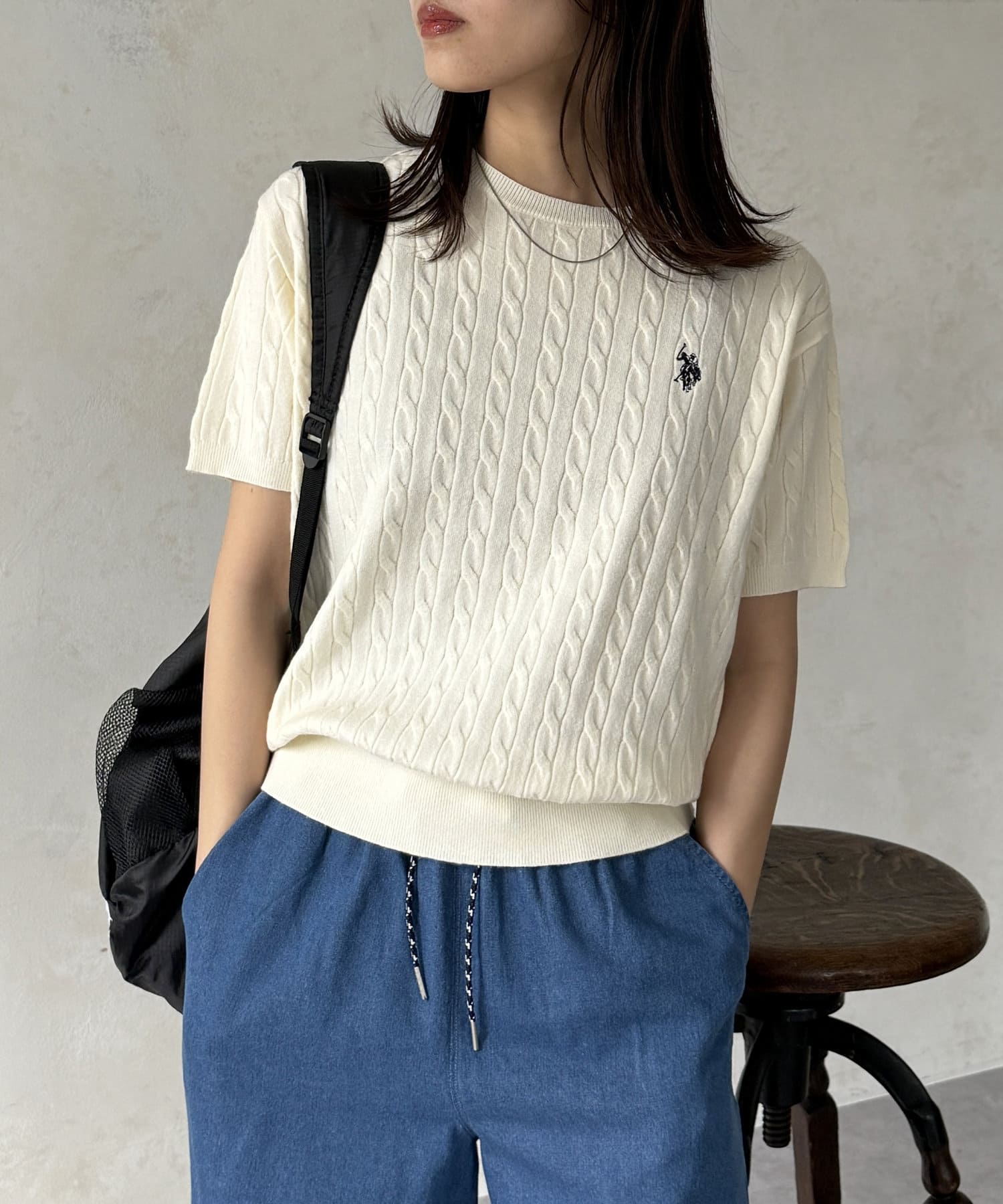 【U.S. POLO ASSN.】半袖ケーブルニット