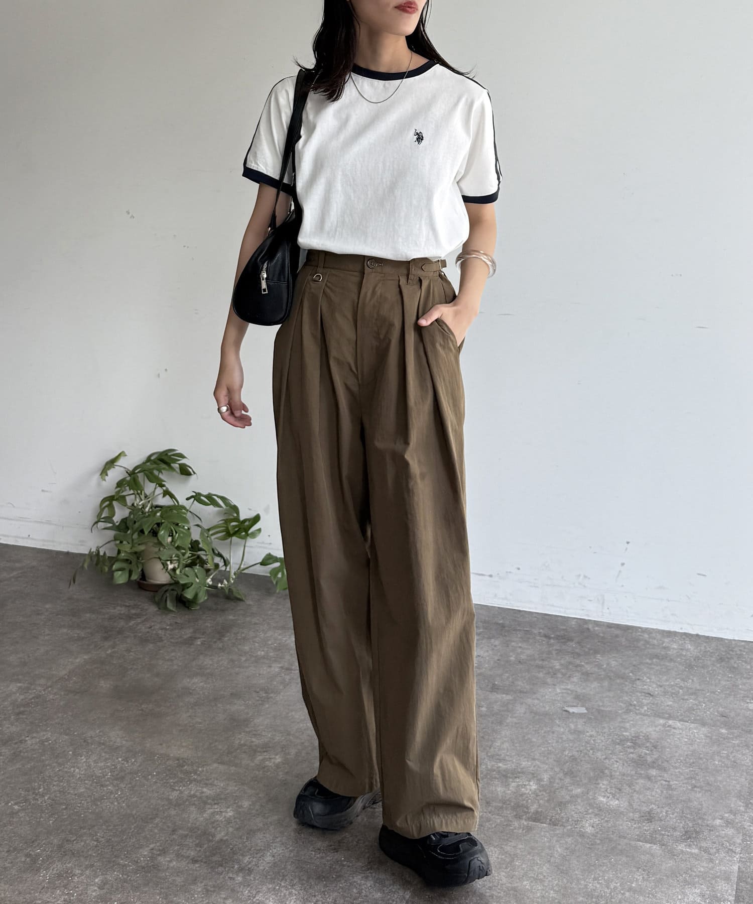 シンプルながらもトレンド感のあるデザインが目を惹く◎