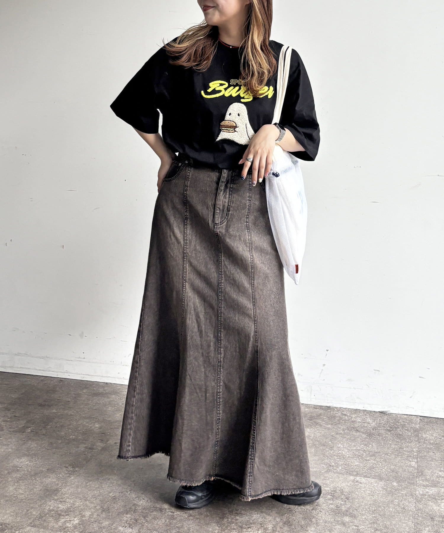 オーバーサイズのシルエットで、体型カバーもバッチリ。一枚でサマになる、この夏大活躍間違いなしの一枚です◎