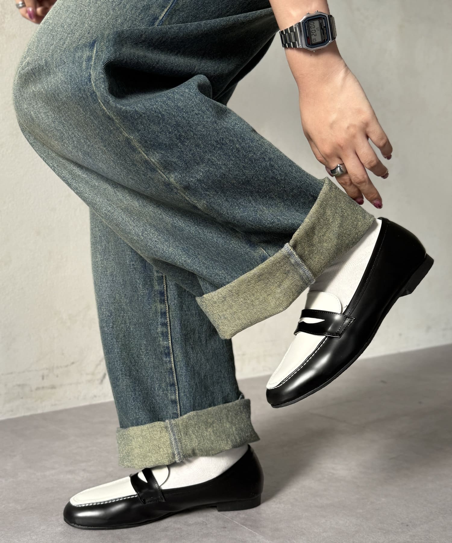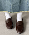 ワンピースなどのレディスアイテムに合わせれば、上品で大人可愛いスタイルが完成。足元にローファーを持ってくることで、コーデ全体を引き締めます。