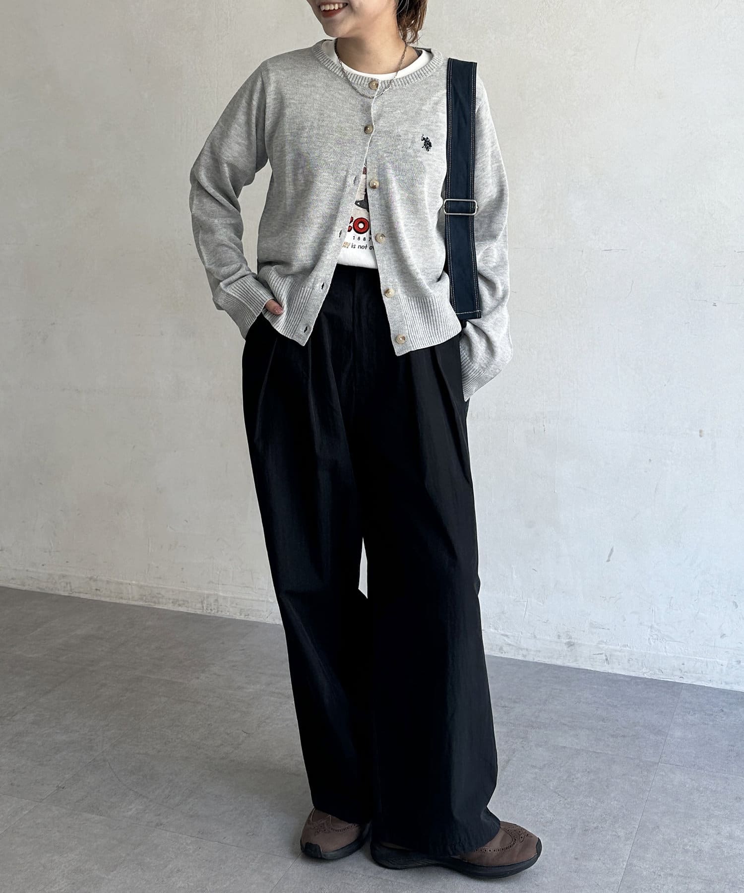 ・胸元のさりげないロゴ刺繍が、こなれ感をプラス。