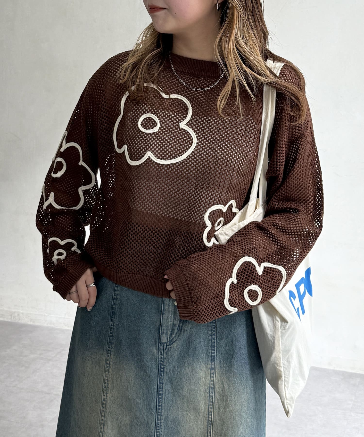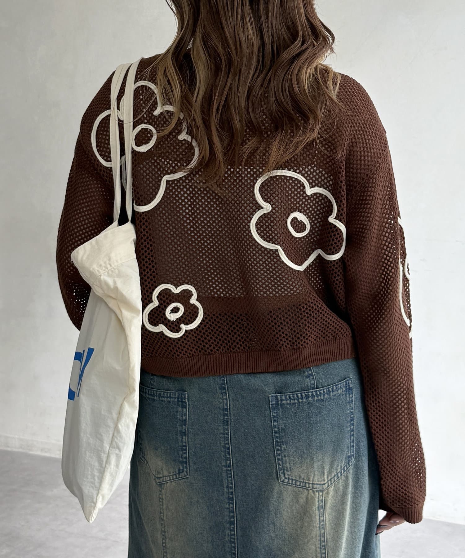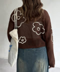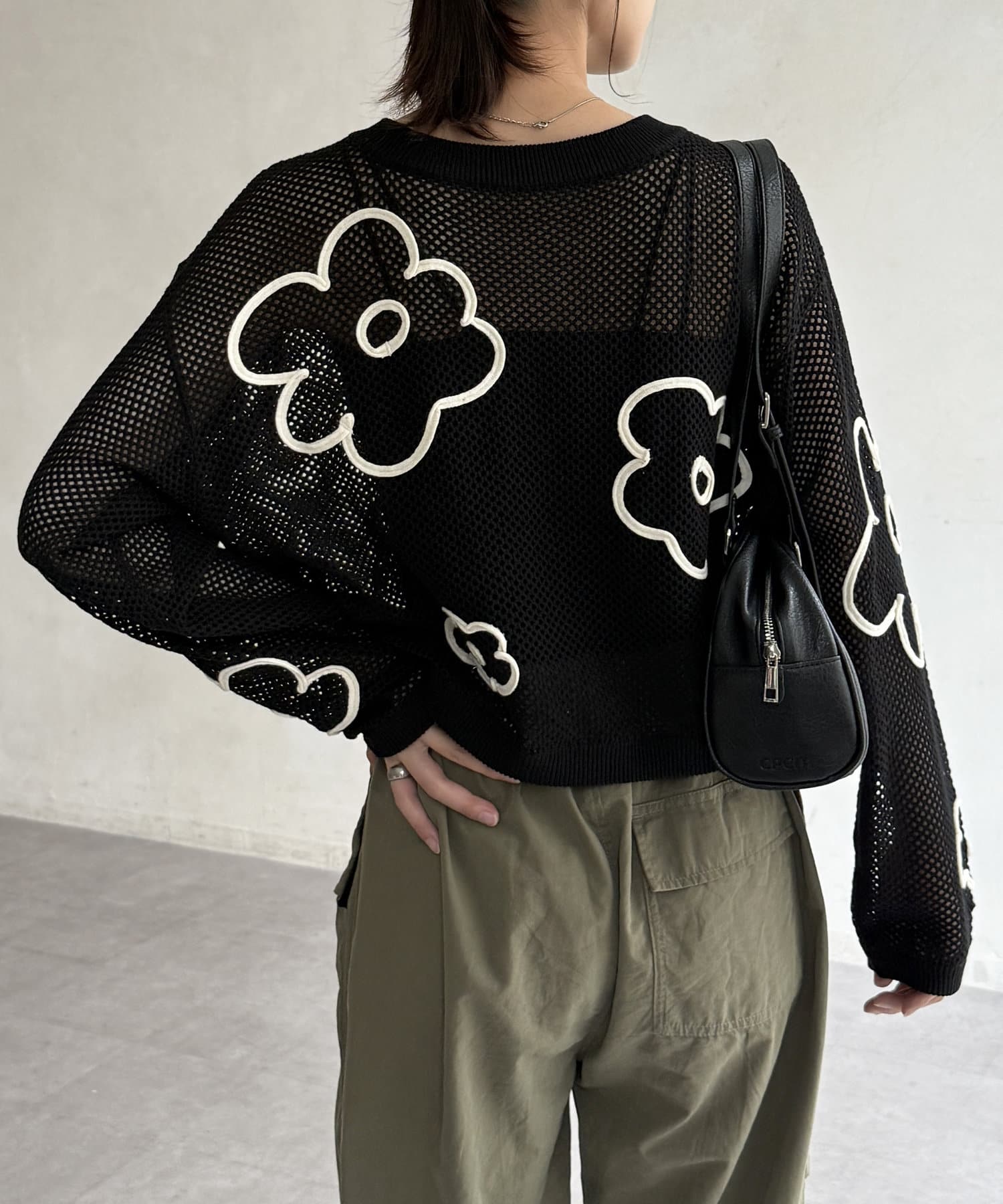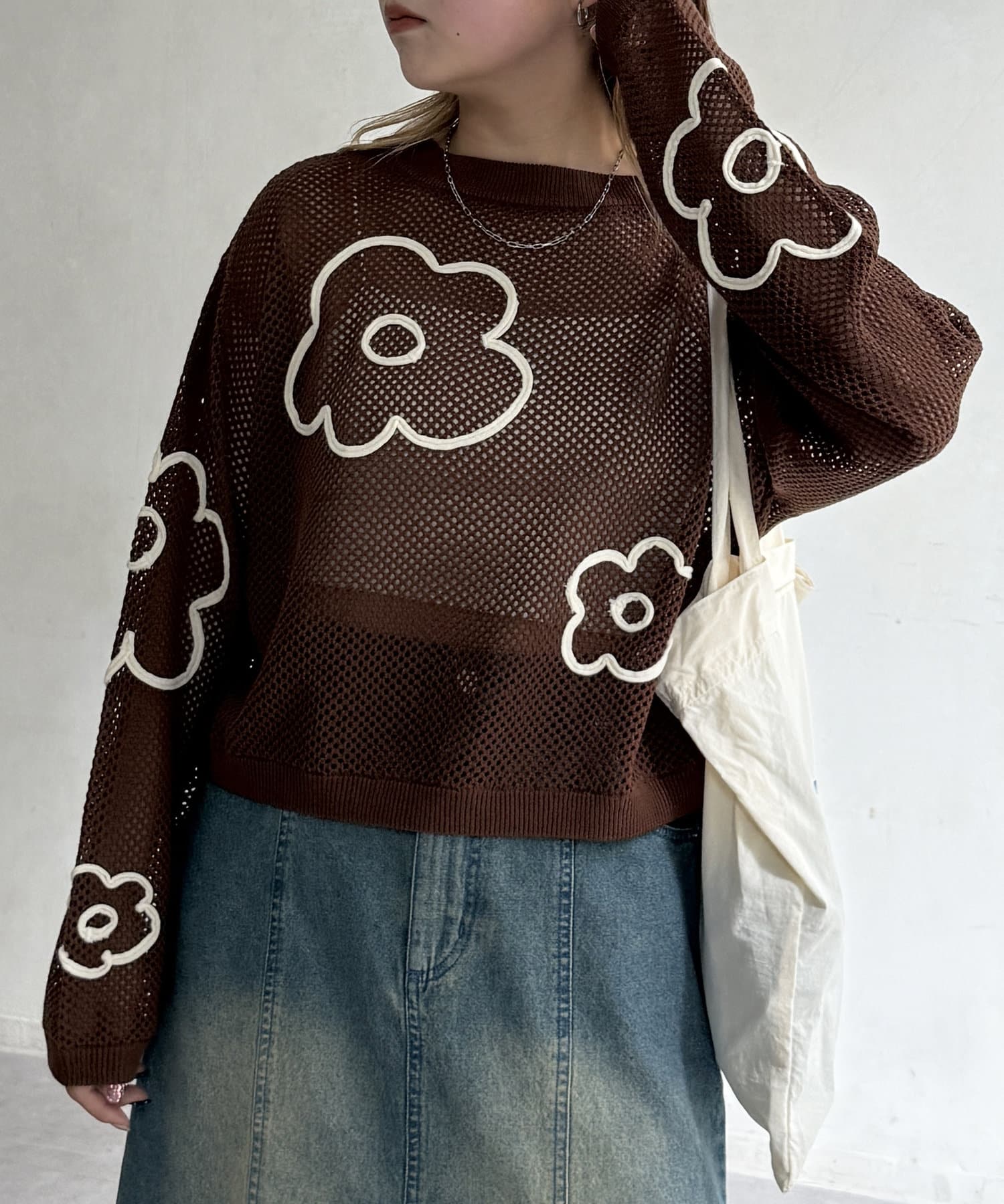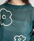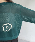 コード刺繍花柄メッシュニット