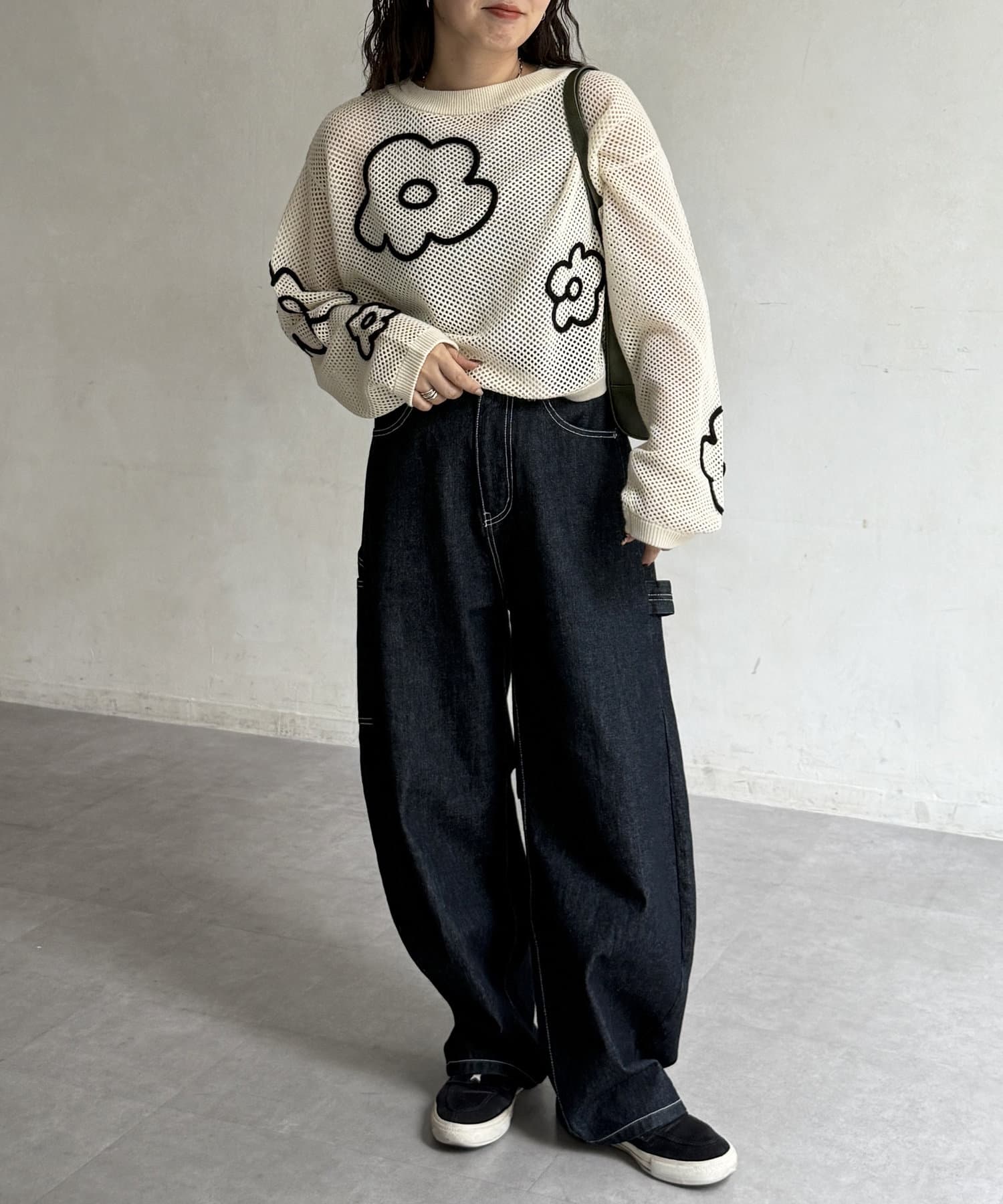 ・デニムパンツやスカートと合わせてカジュアルダウン。スニーカーやサンダルを合わせれば、デイリーユースにぴったりなリラックスコーデが完成します。