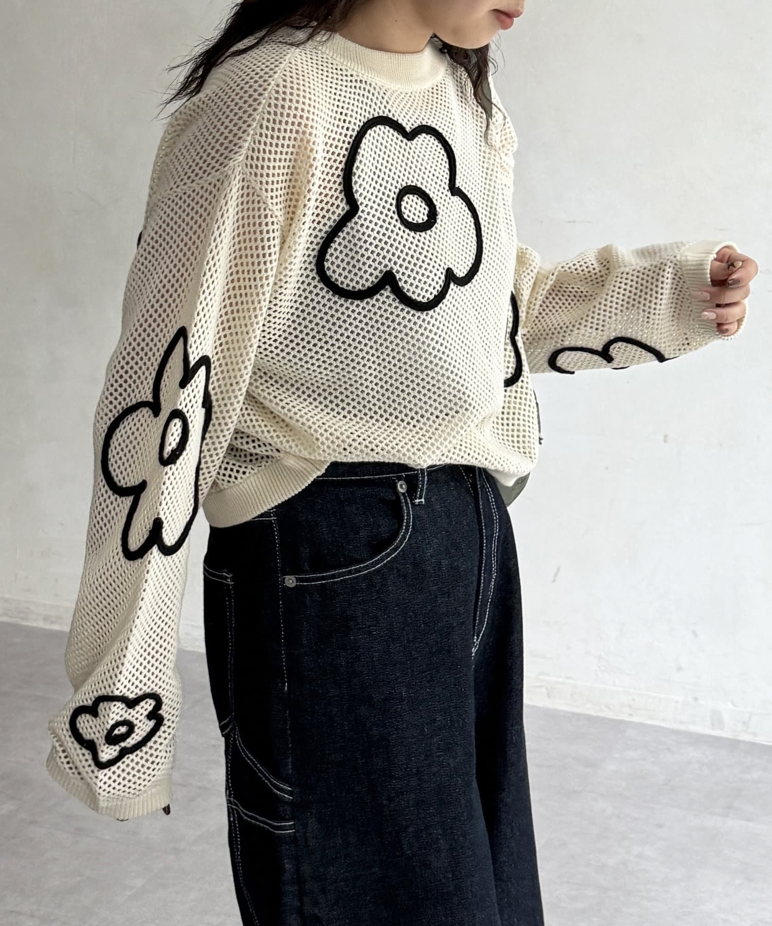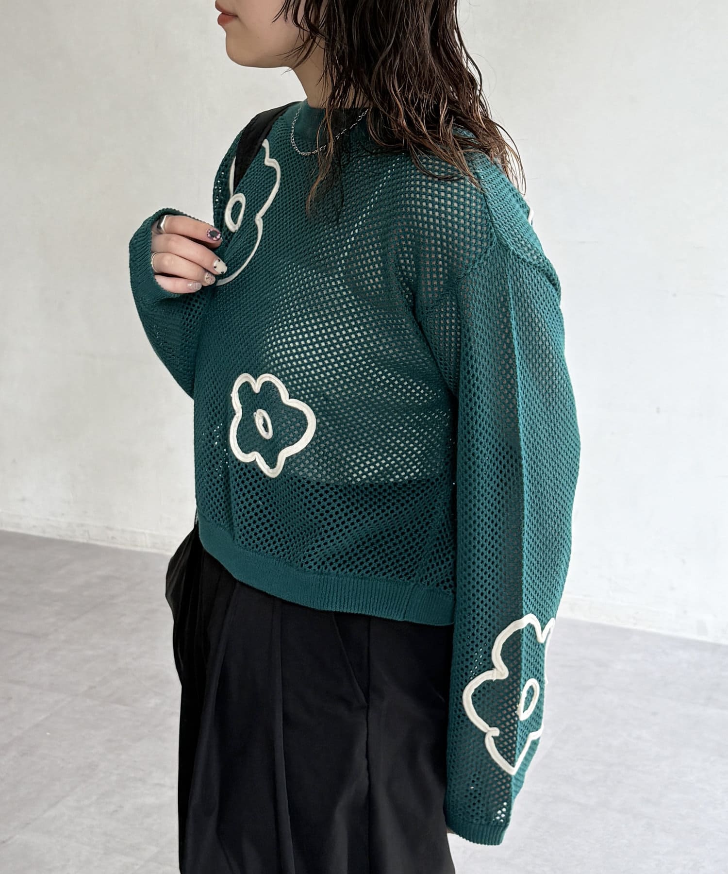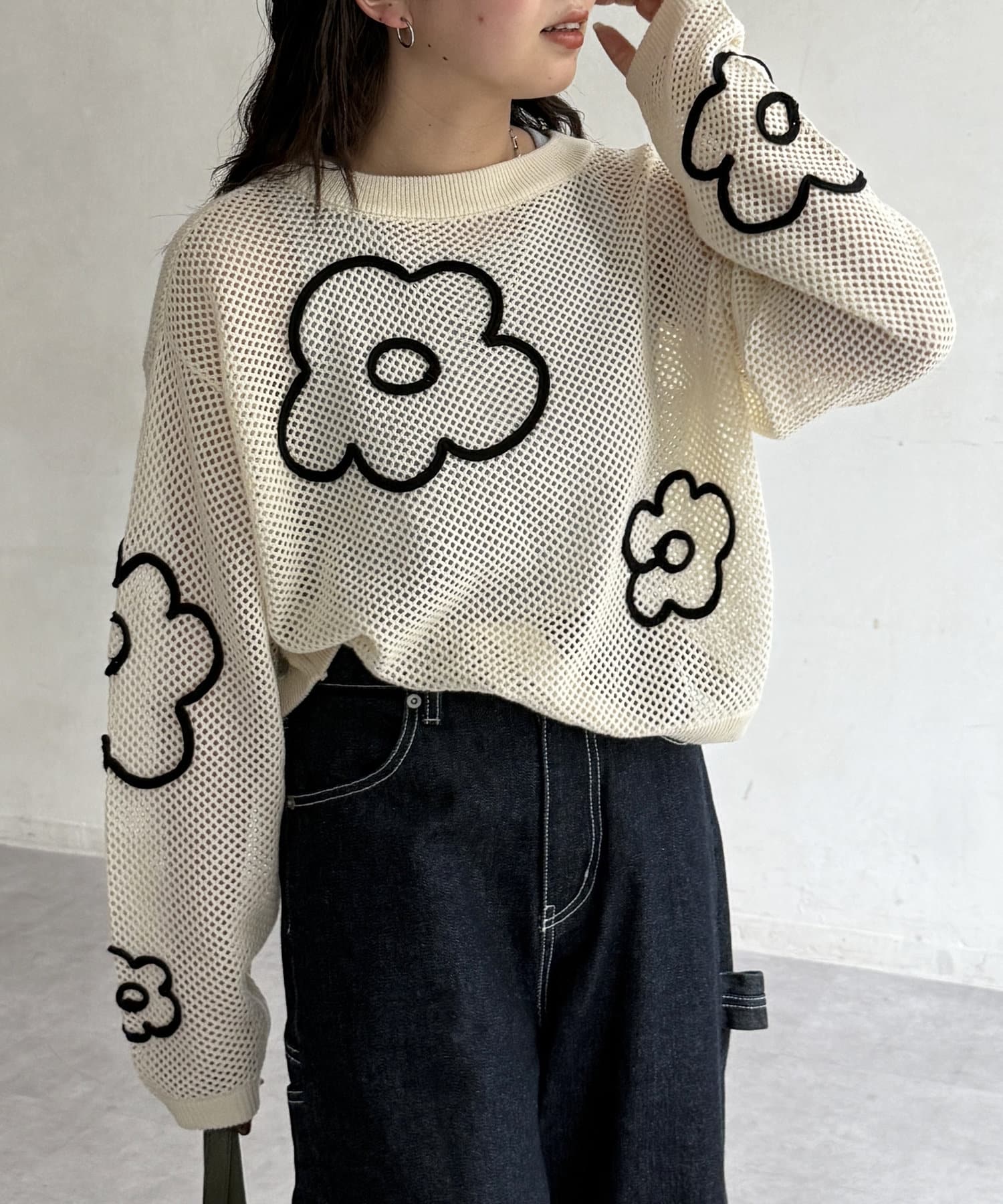 透け感とコード刺繍が絶妙なバランスで可愛いニットプルオーバーです!
