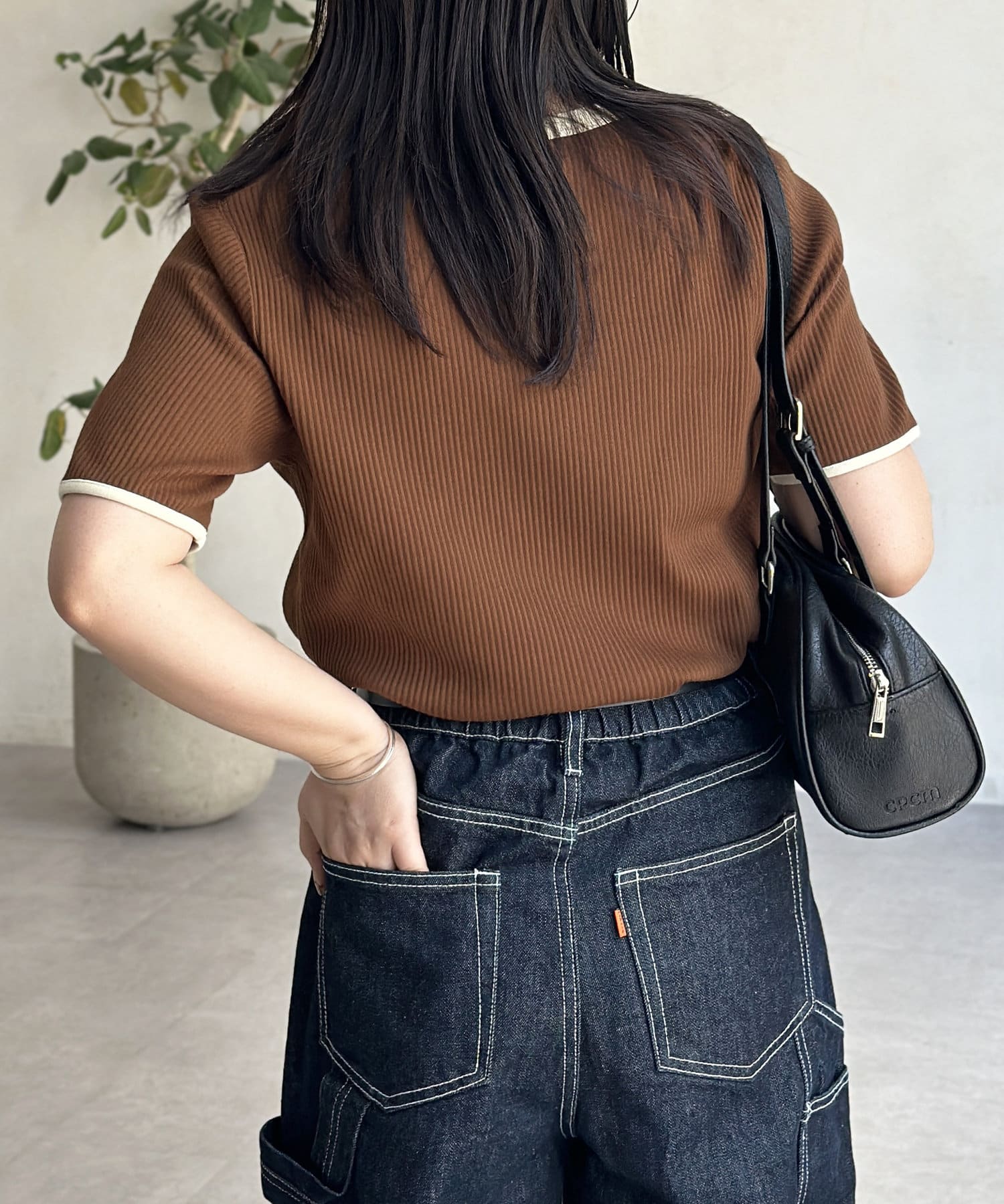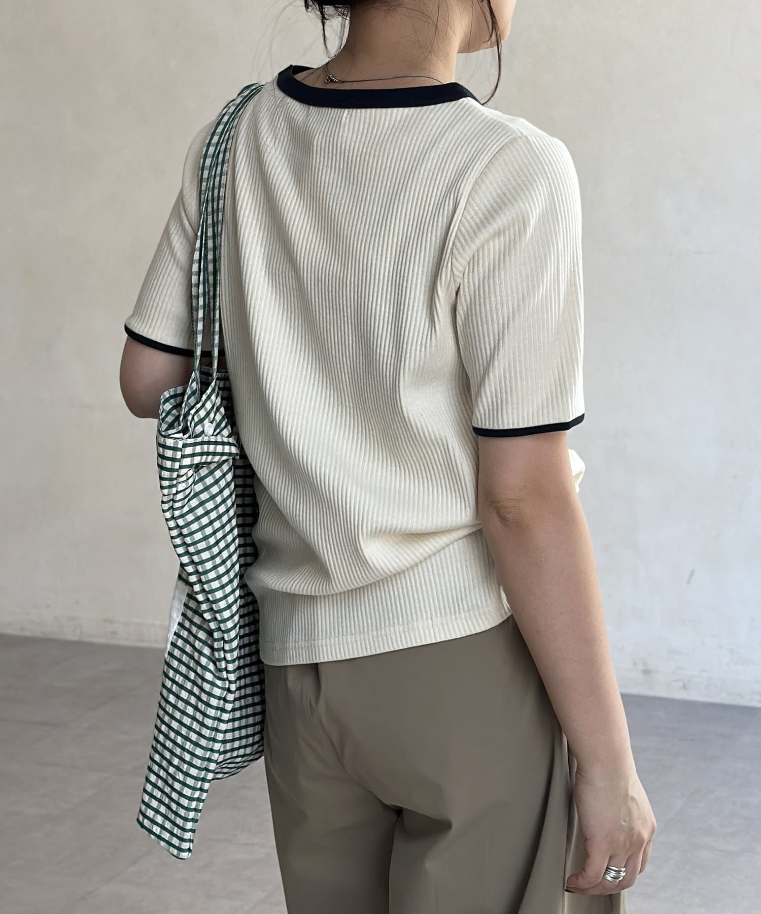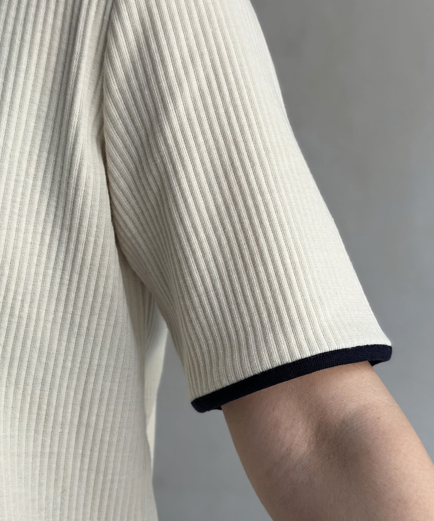 体に程よくフィットするシルエットと、上品なリブ素材が、カジュアルながらも洗練された印象を与えてくれます◎