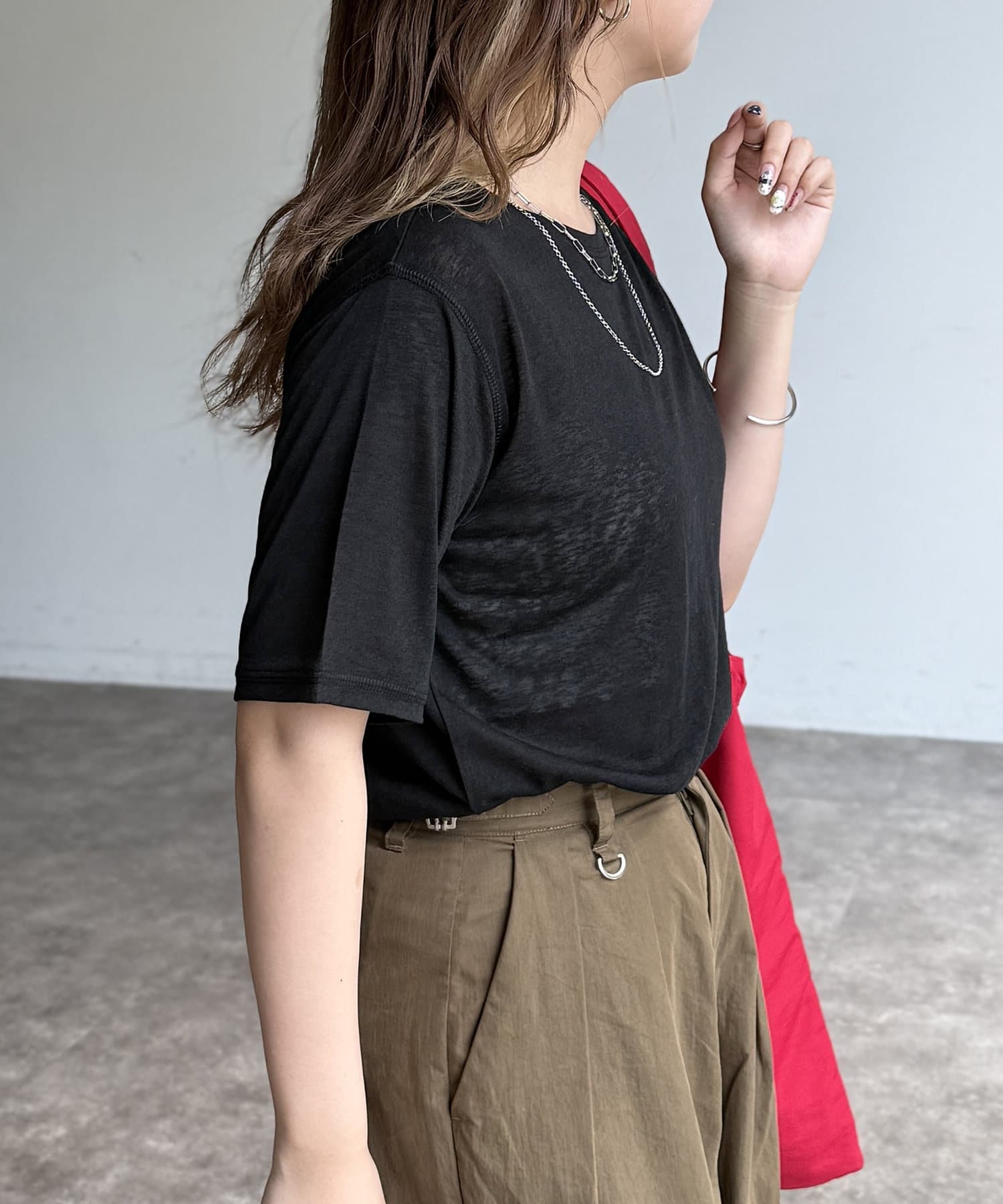 抜け感をプラス!トレンド感あふれるシアーTシャツ