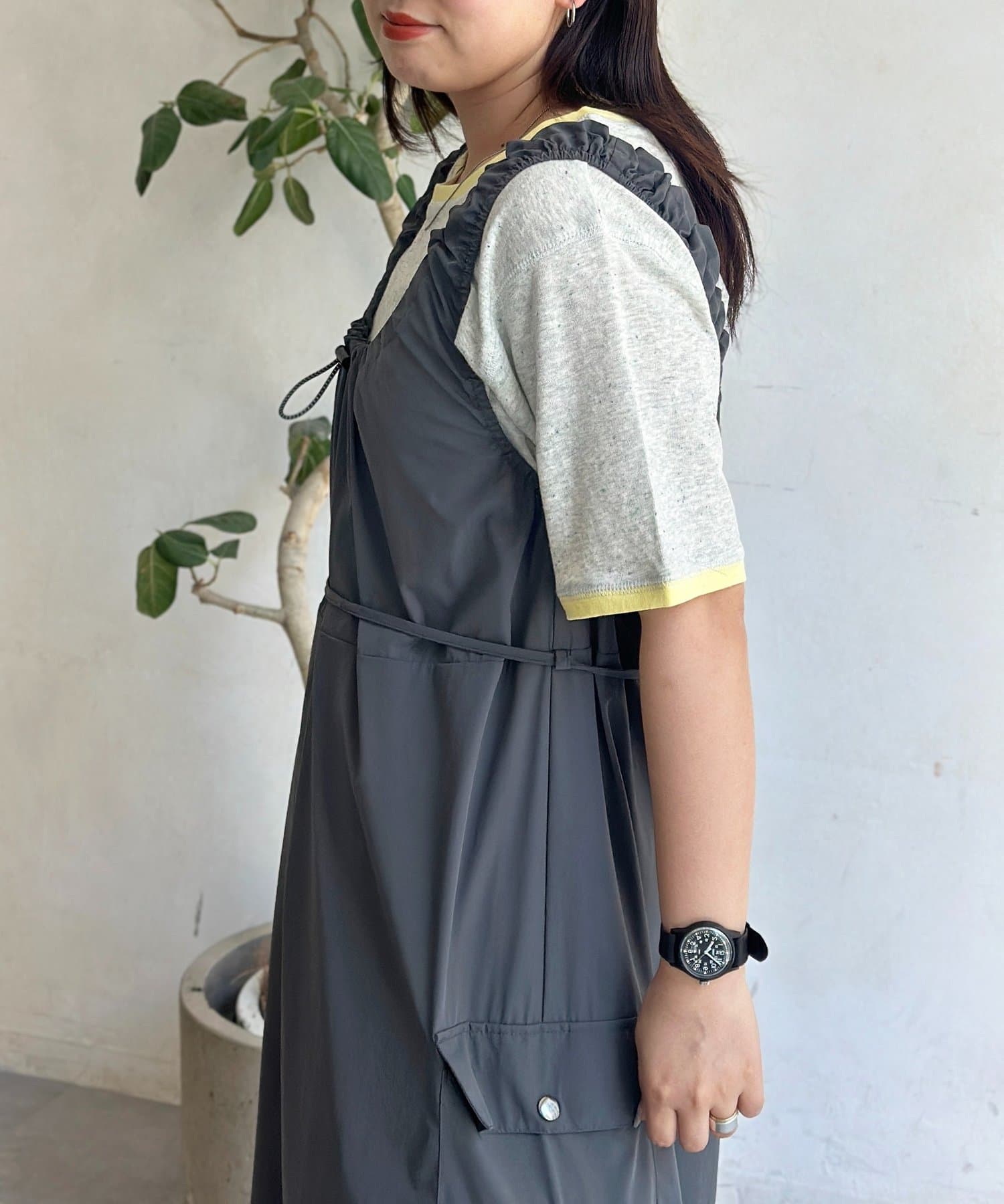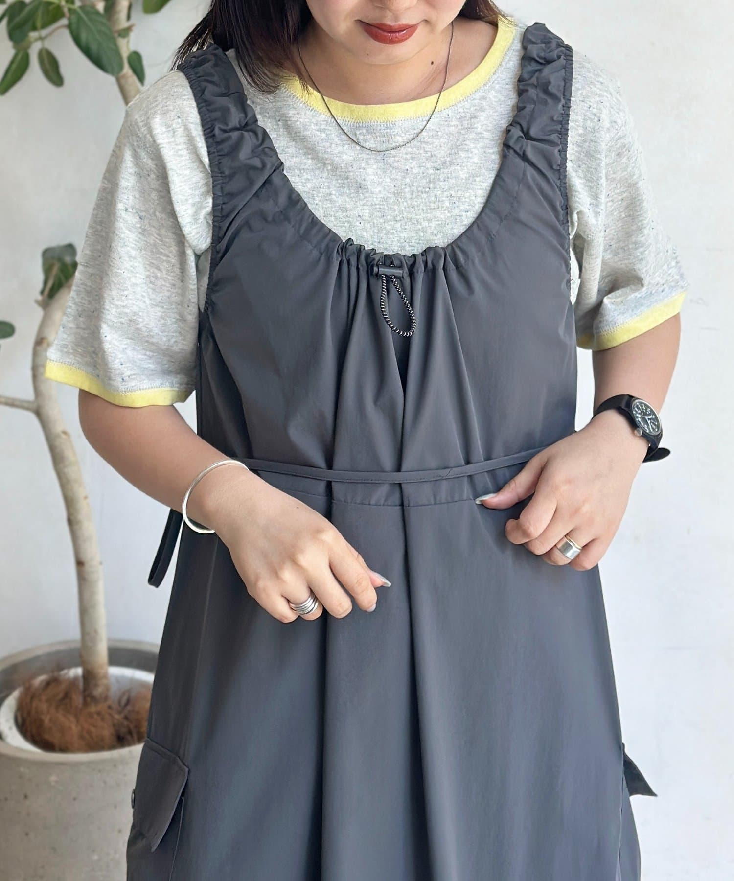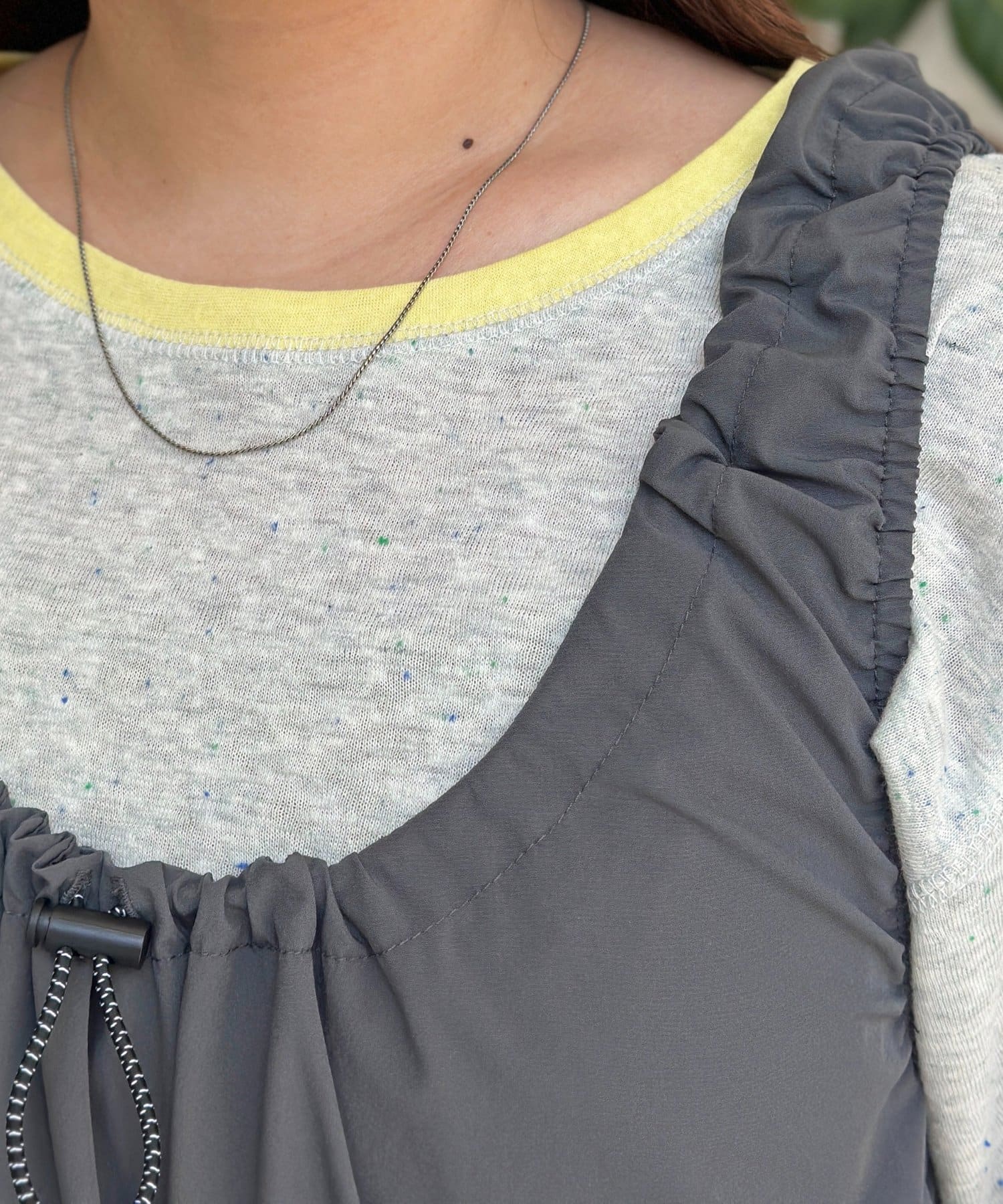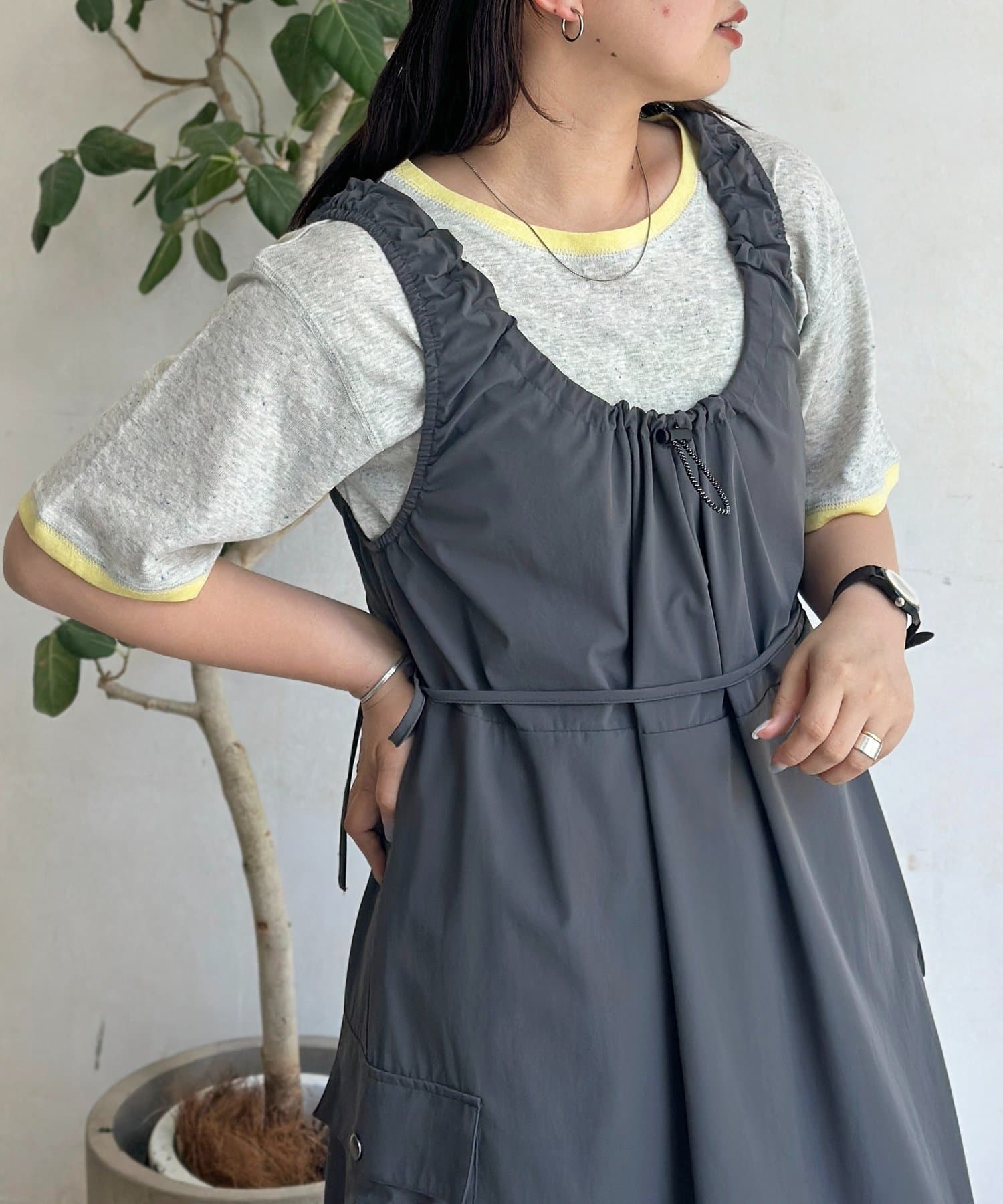・キャミソールやタンクトップの上に合わせて、ヘルシーな肌見せスタイルに