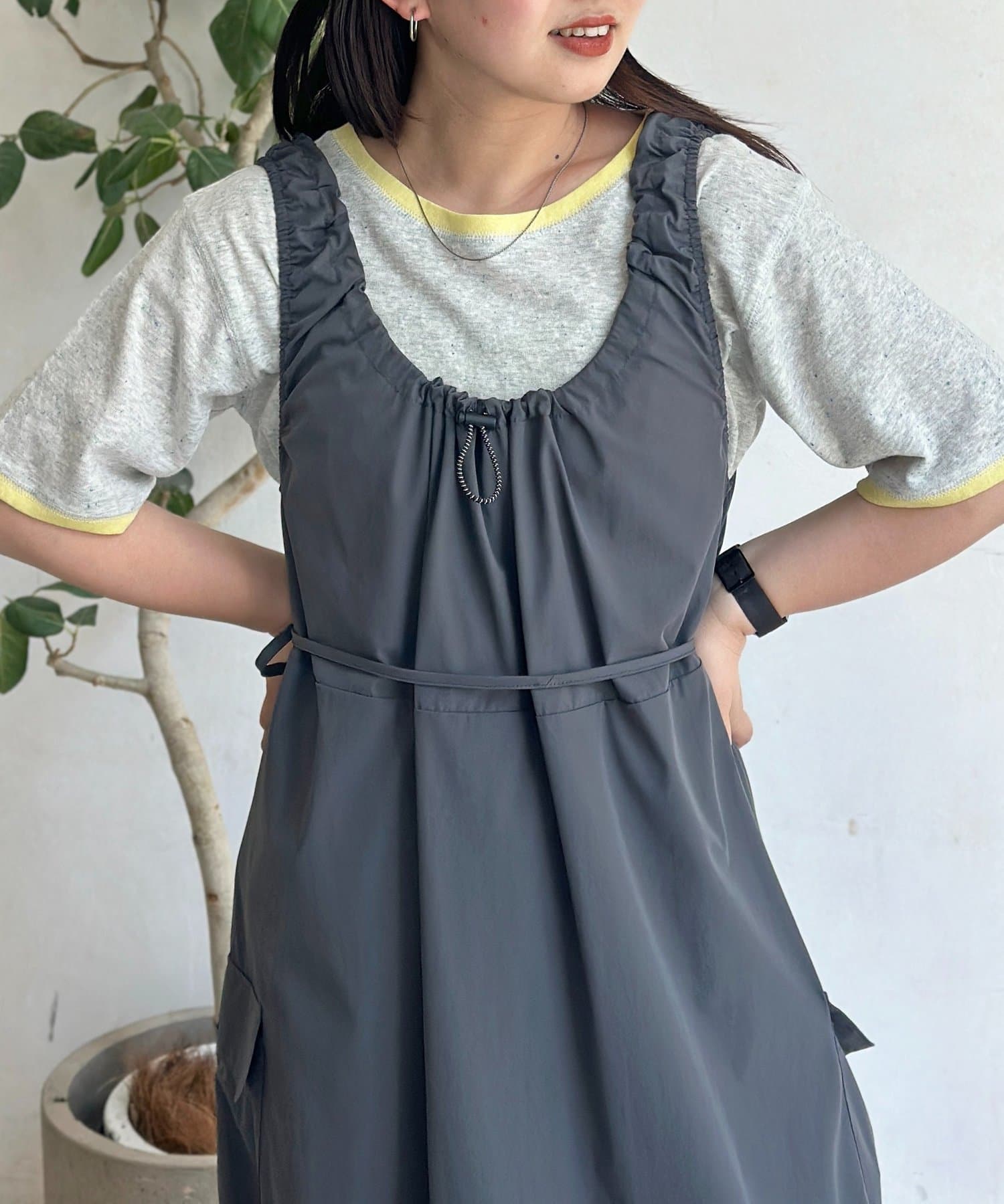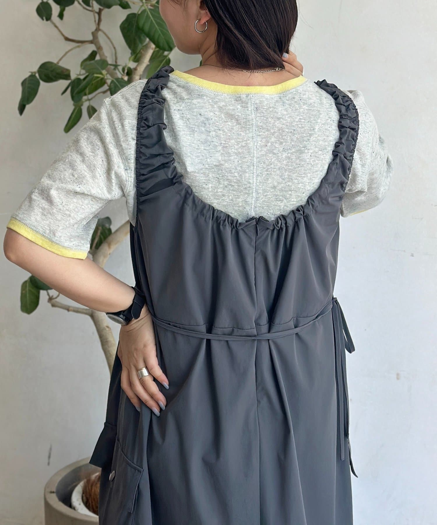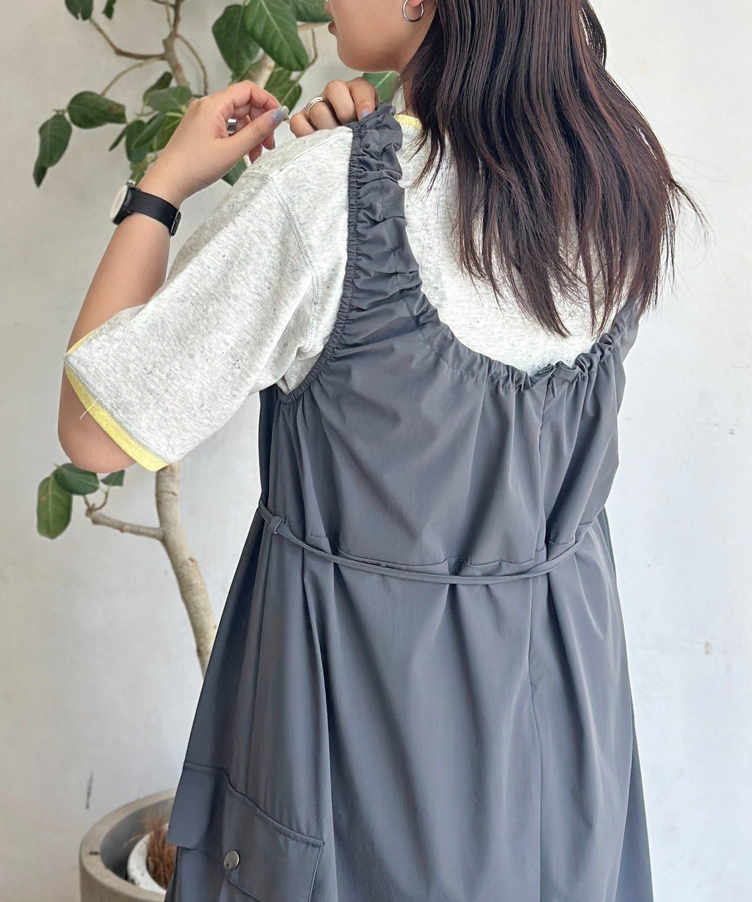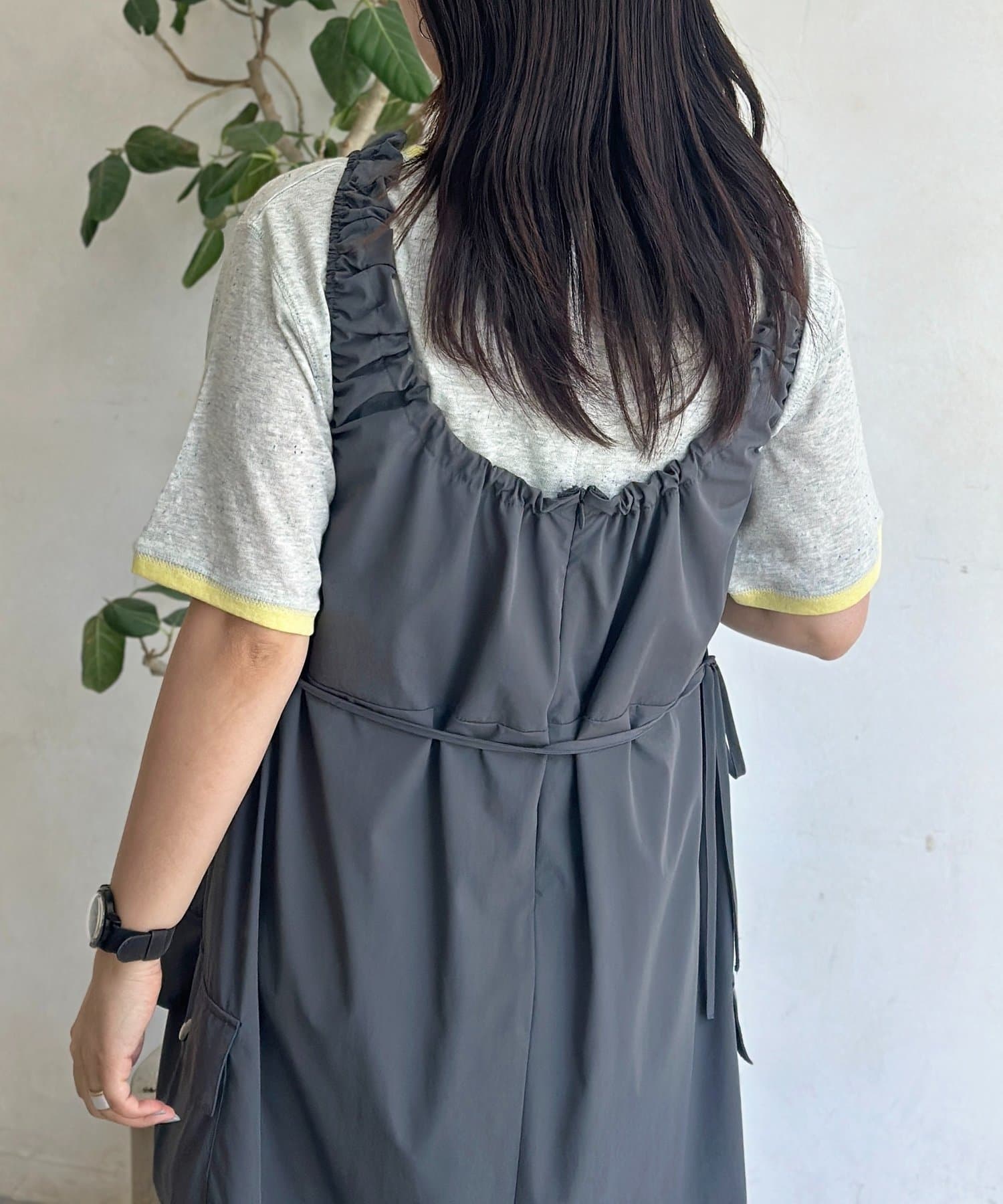 ・キャミソールやタンクトップの上に合わせて、ヘルシーな肌見せスタイルに