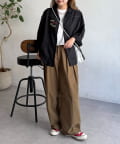 胸元のメッセージ刺繍が、シンプルなコーディネートにアクセントを加えてくれます◎