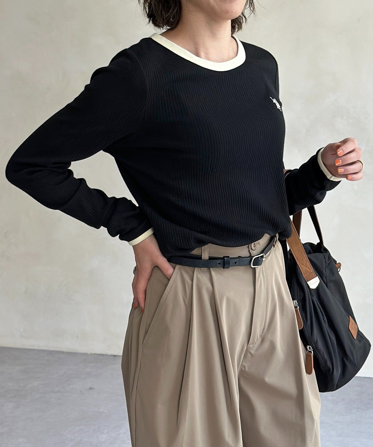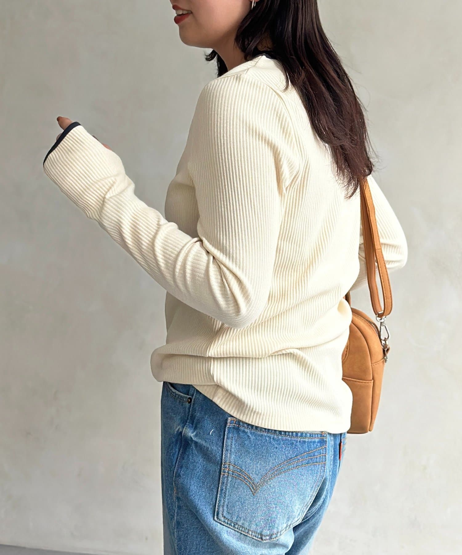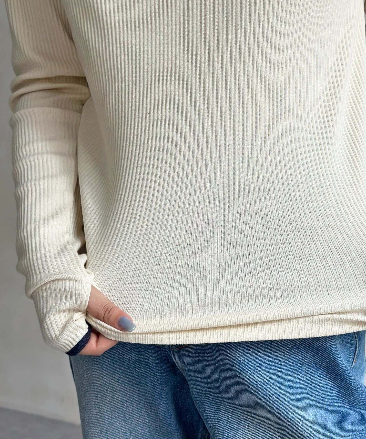 大人カジュアル着こなすことができるリブの配色ロンTが登場!