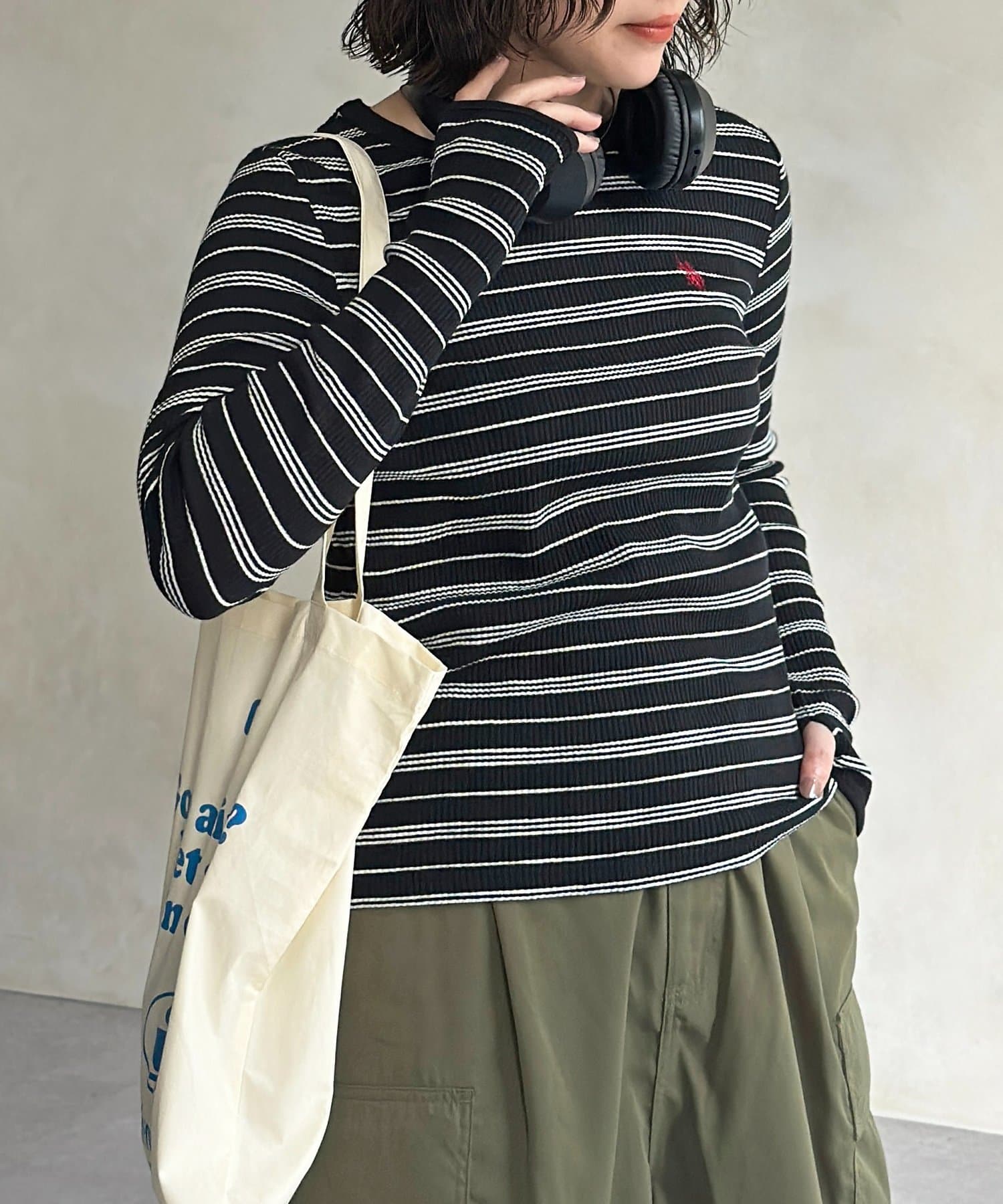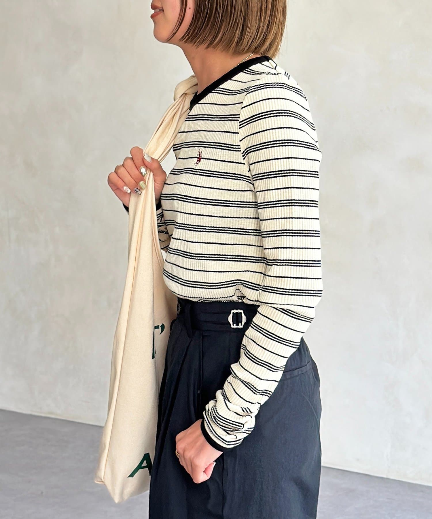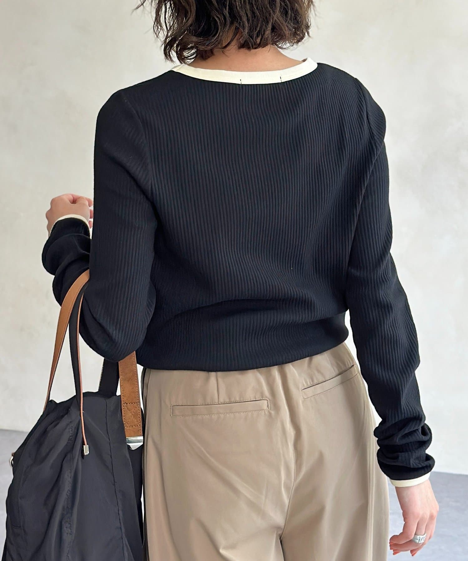 大人カジュアル着こなすことができるリブの配色ロンTが登場!